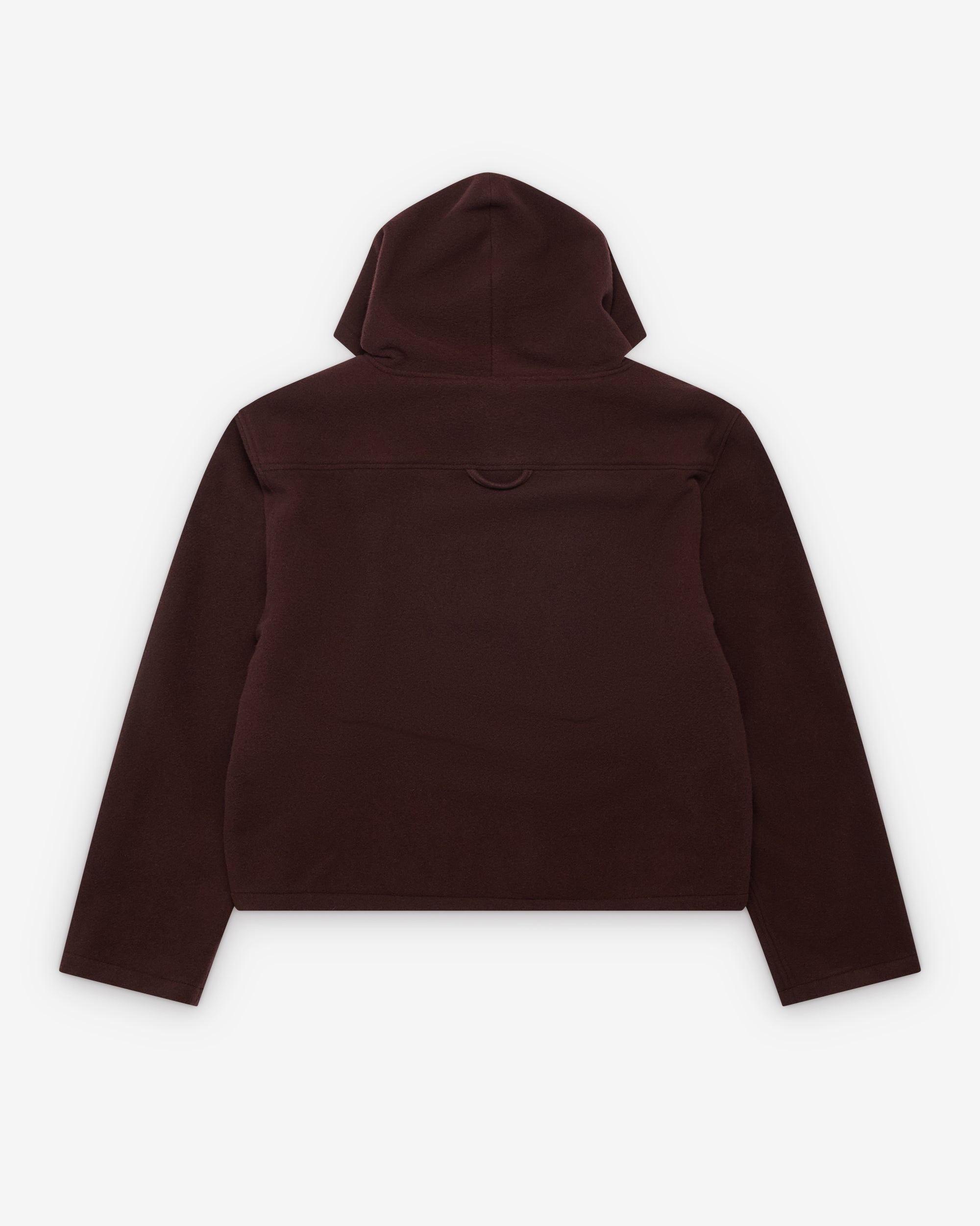 Hooded styleUtility loop at backBoxy fitLong sleevesUnlined