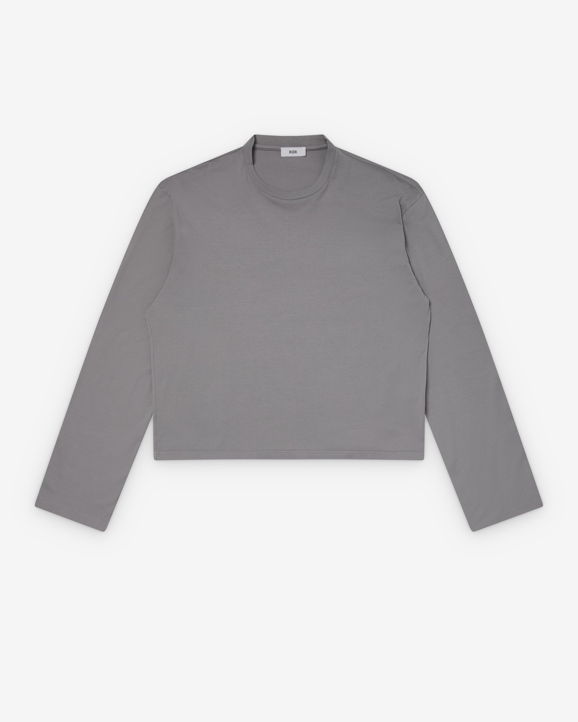 Rier Men's T-Shirt Round Neck Long Sleeve Light Grey