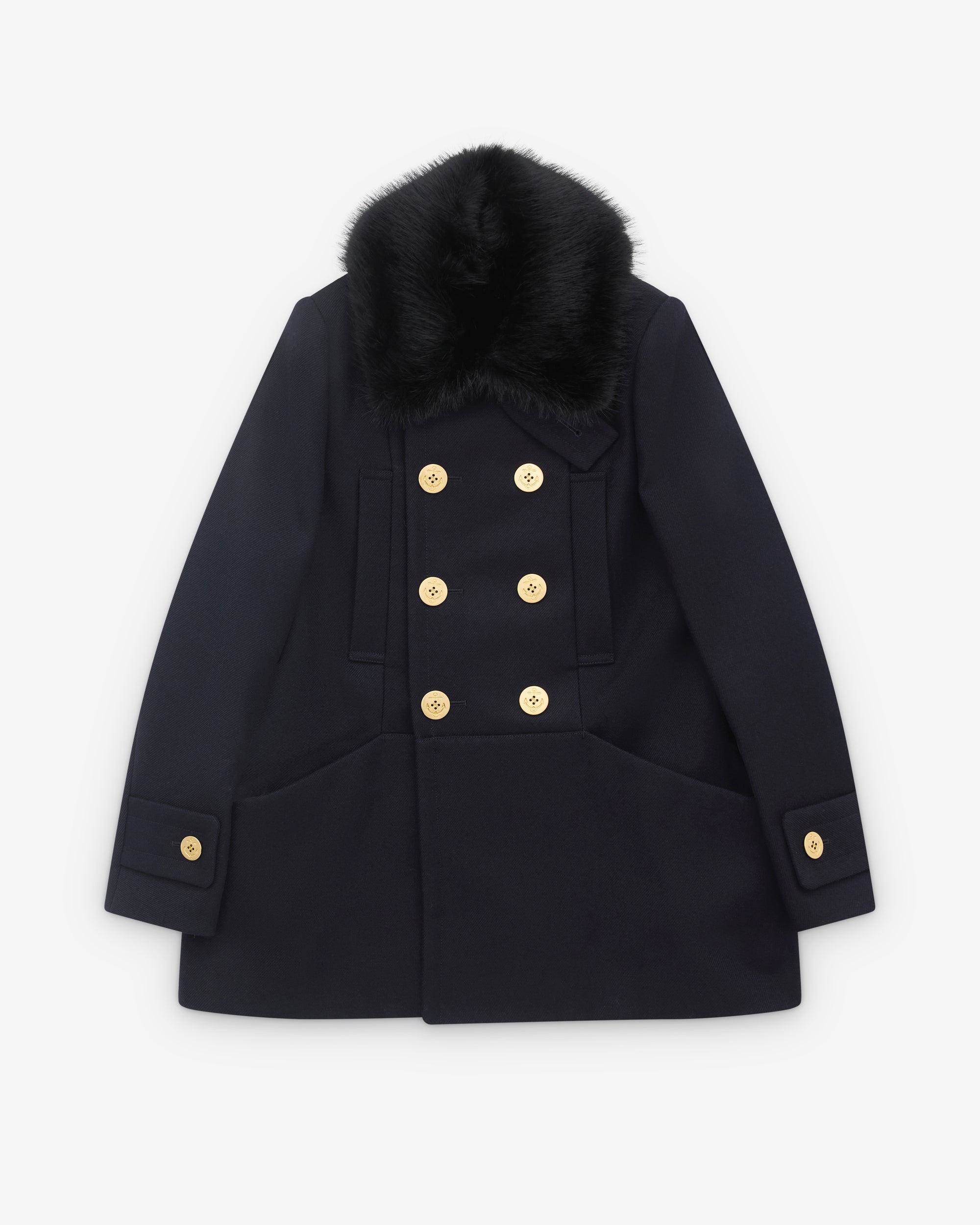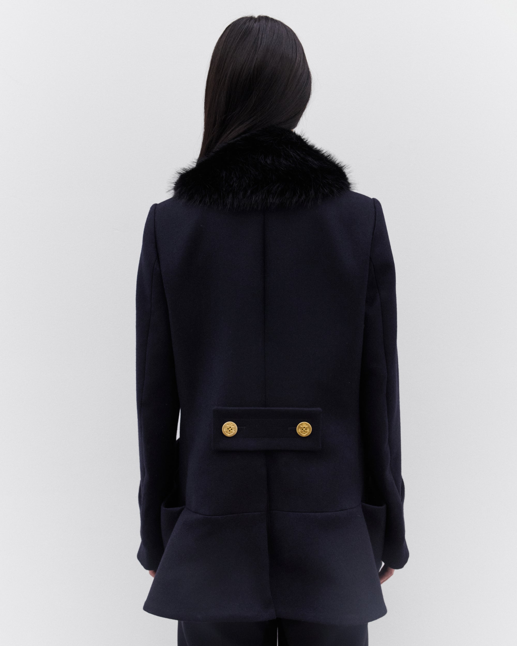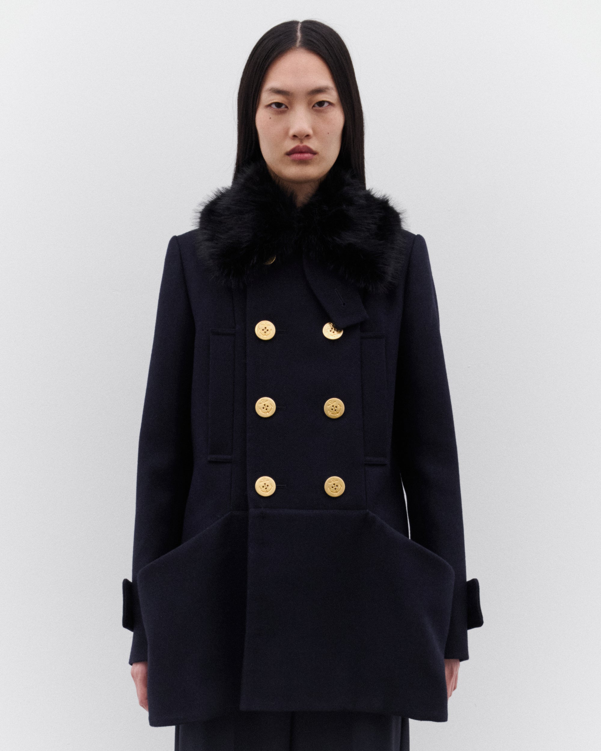 sacai Women’s Double-Faced Wool Melton Coat Navy