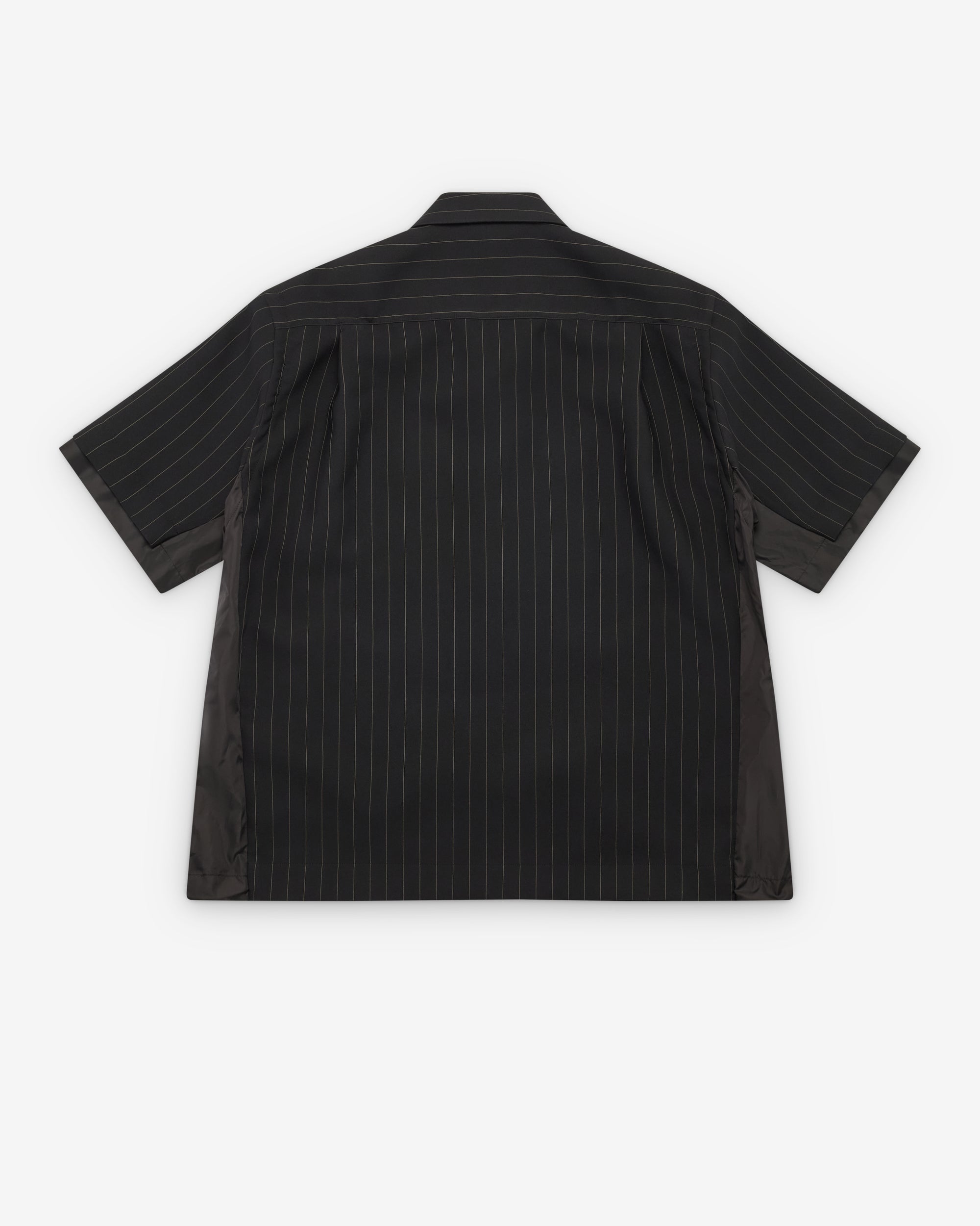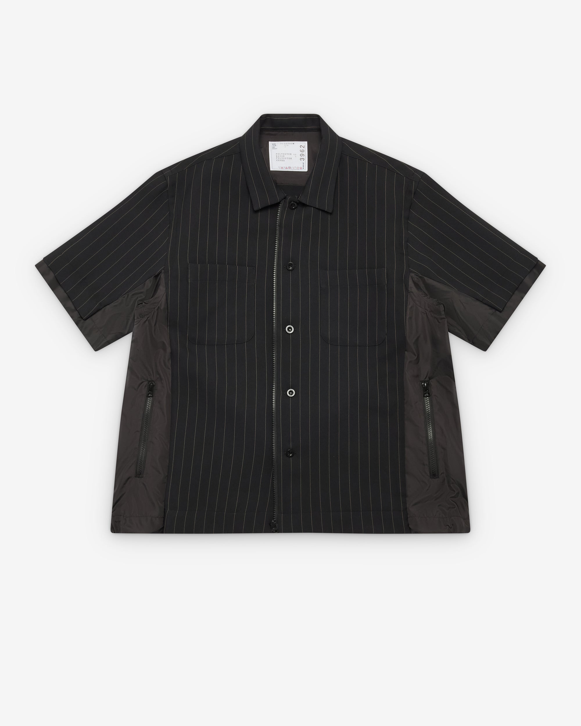 Classic collarZip and button closureShort sleevesContrast panelsTwo zip pockets