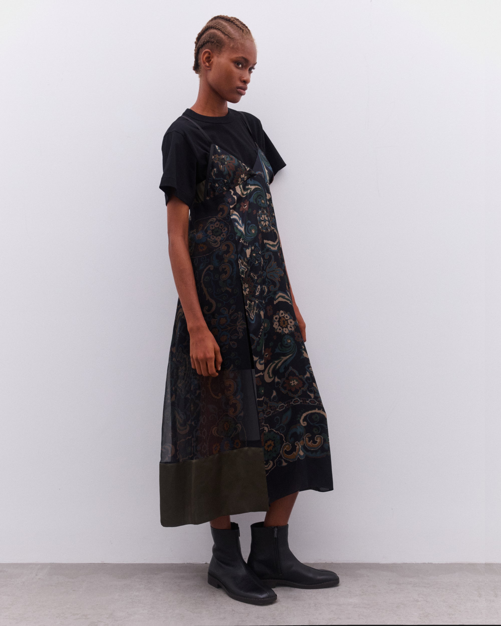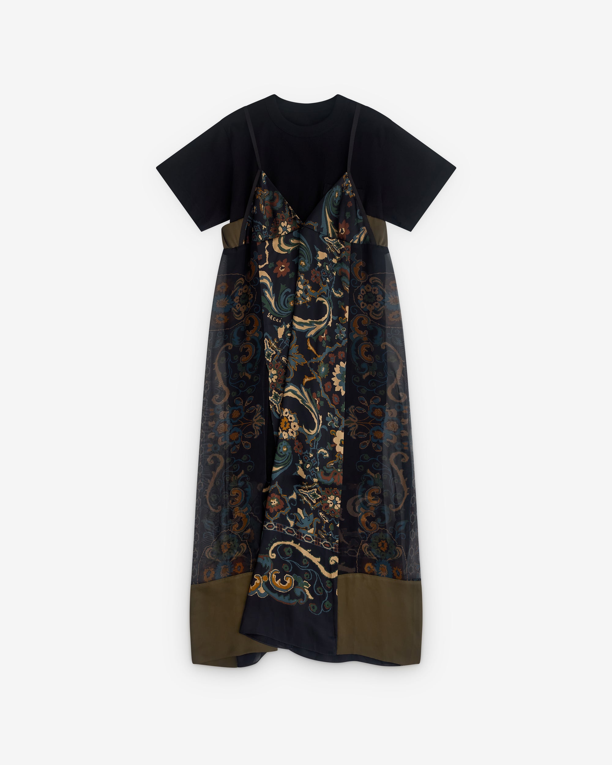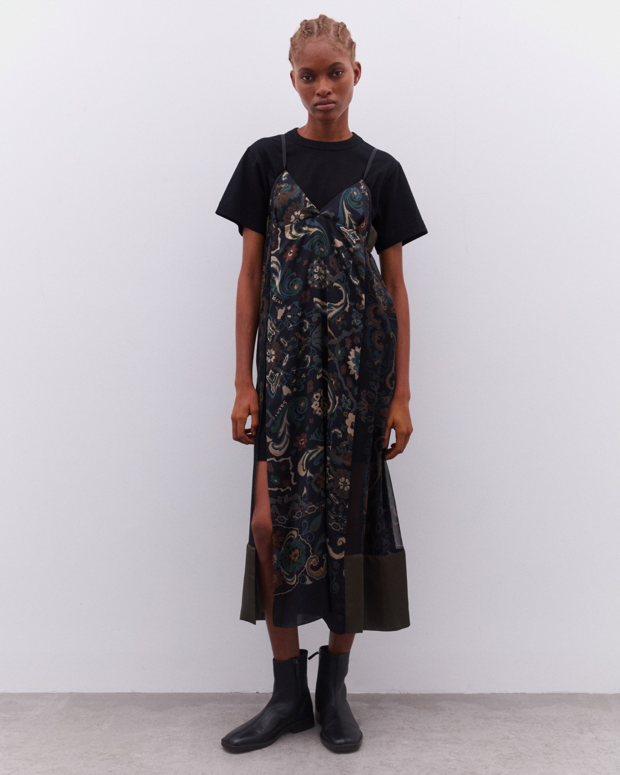 Overlay slip dressRound neckShort sleeveFull-lengthAdjustable straps