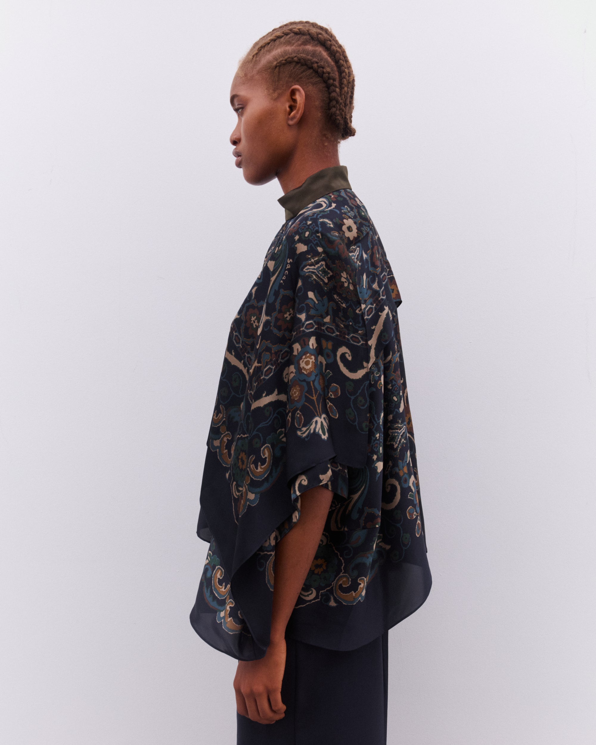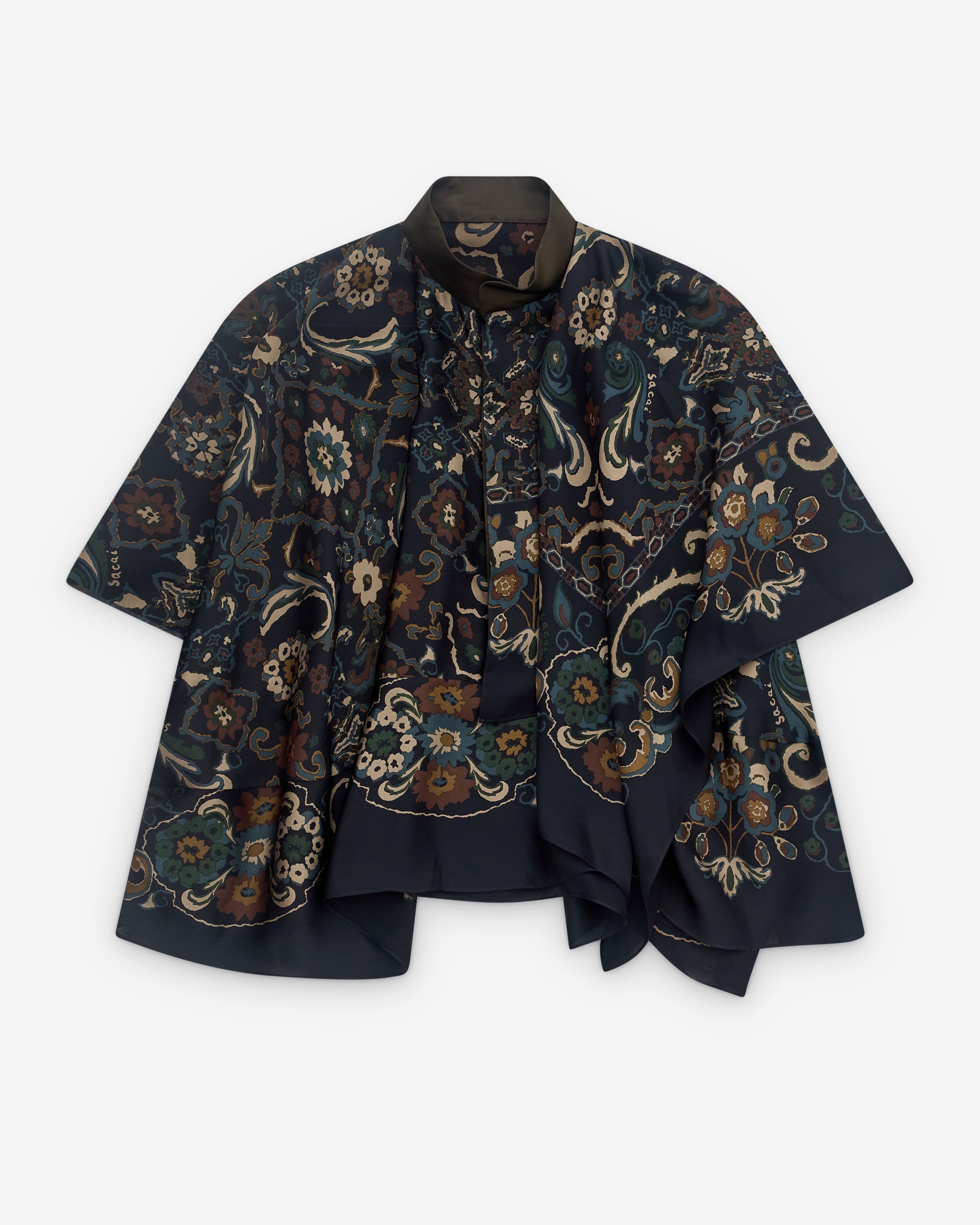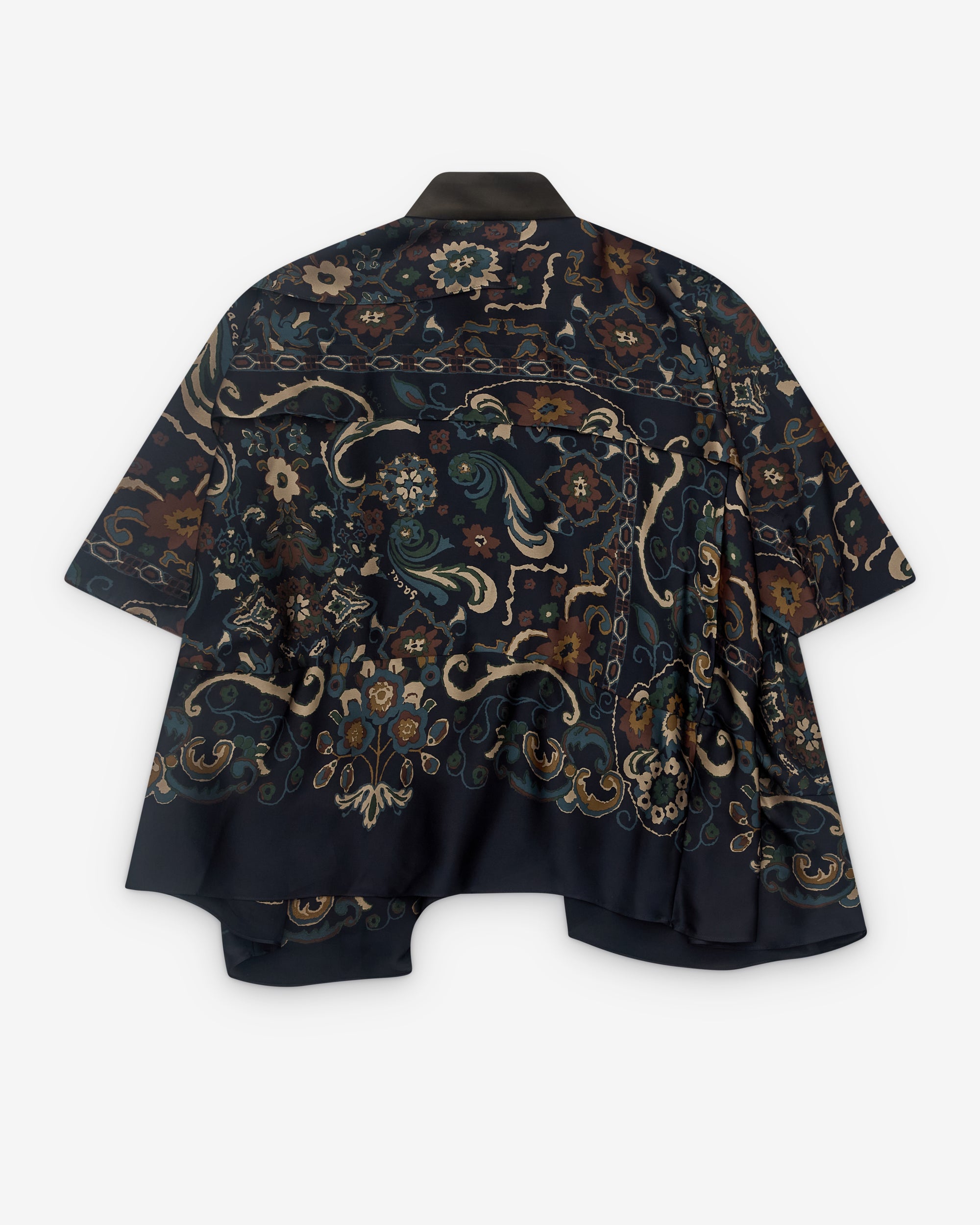 Stand collarShort sleevesHandkerchief hemAll over pattern
