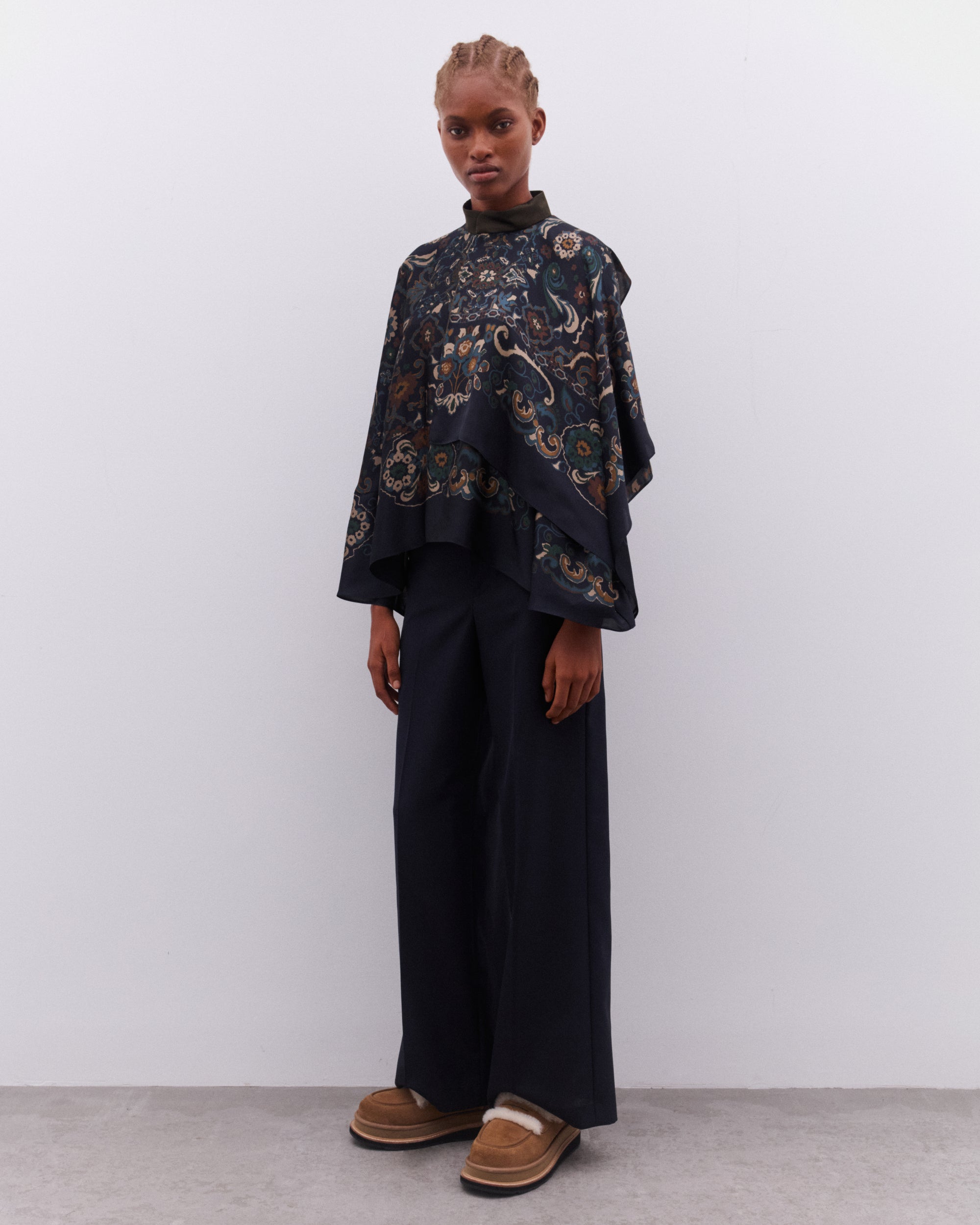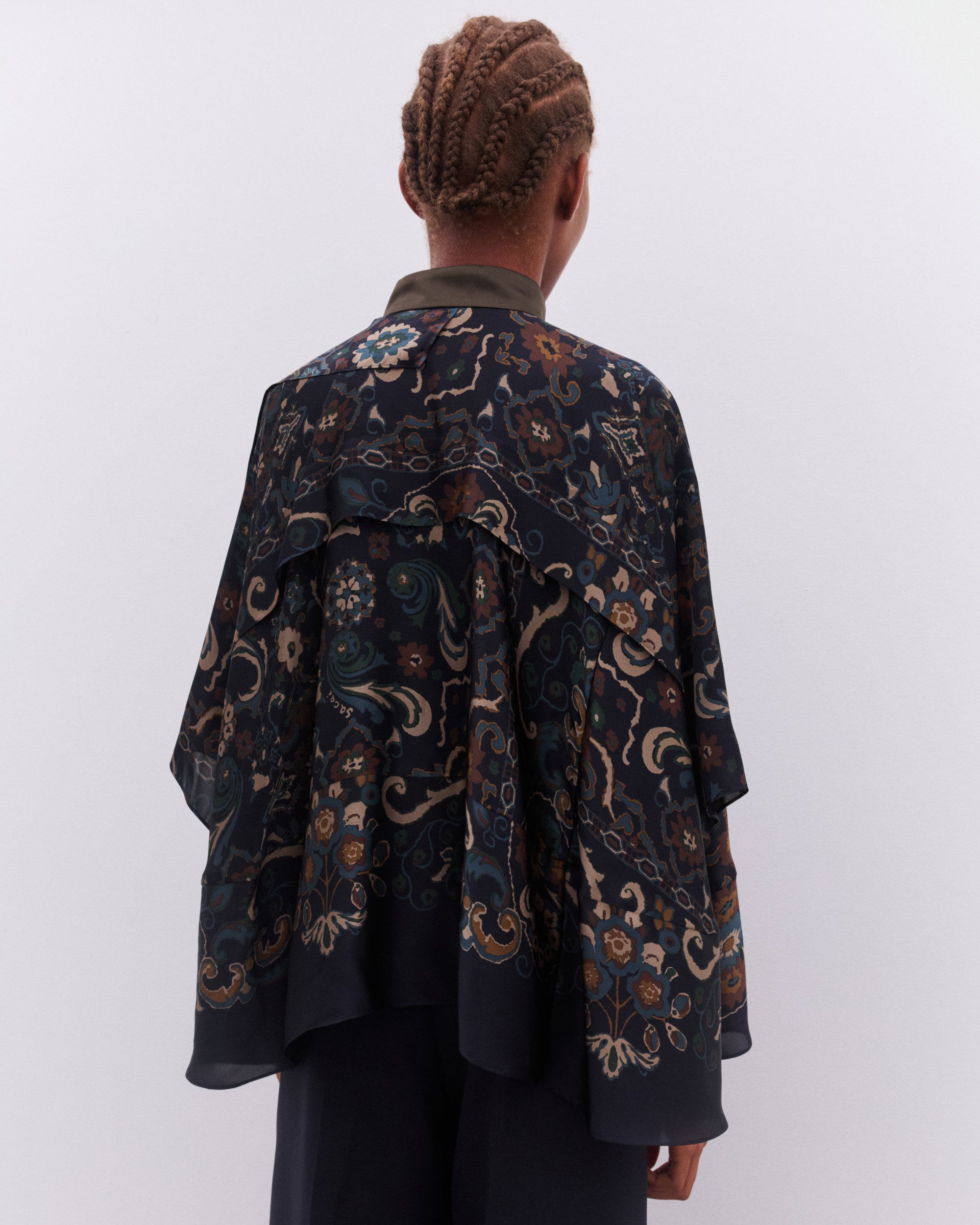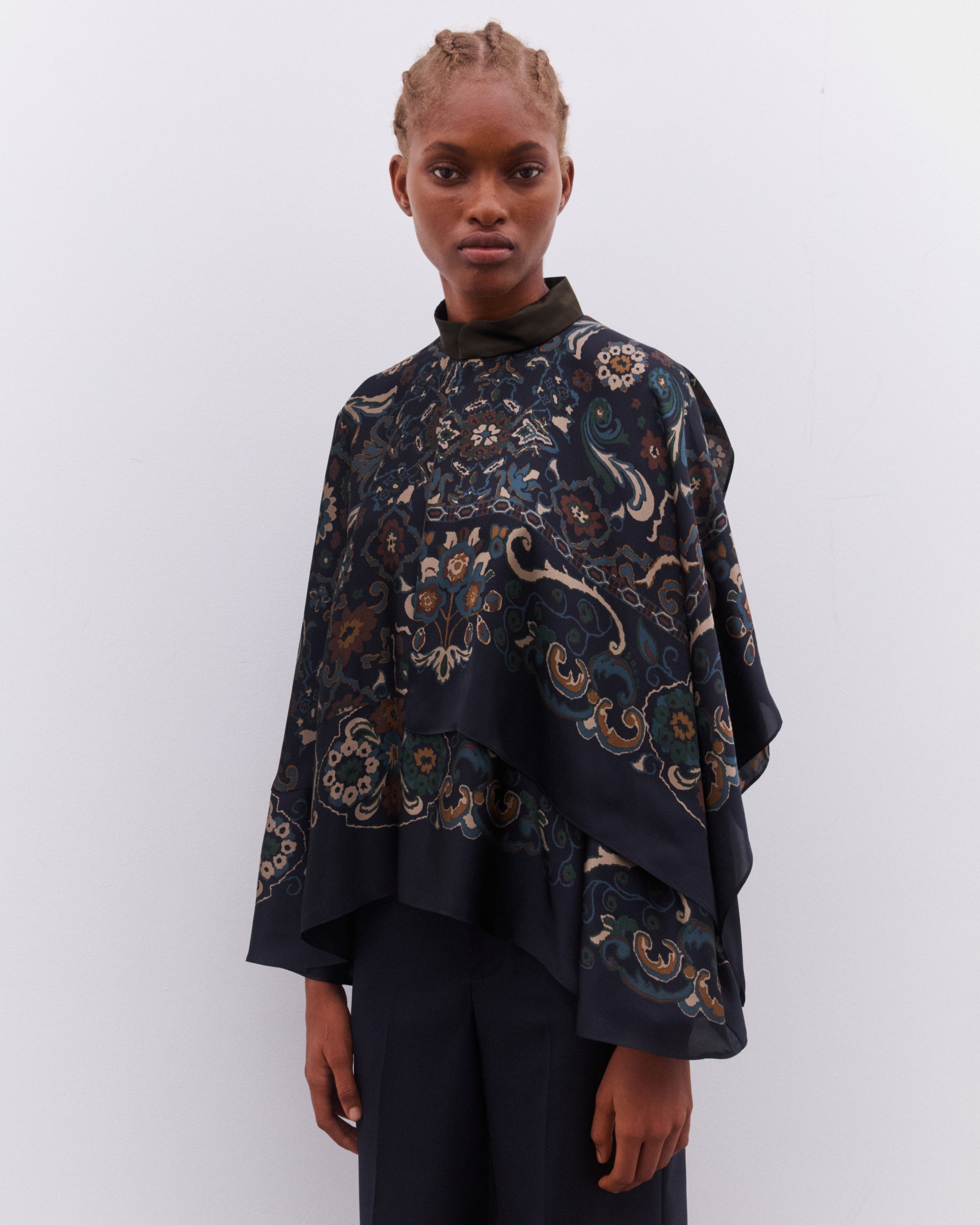 Stand collarShort sleevesHandkerchief hemAll over pattern