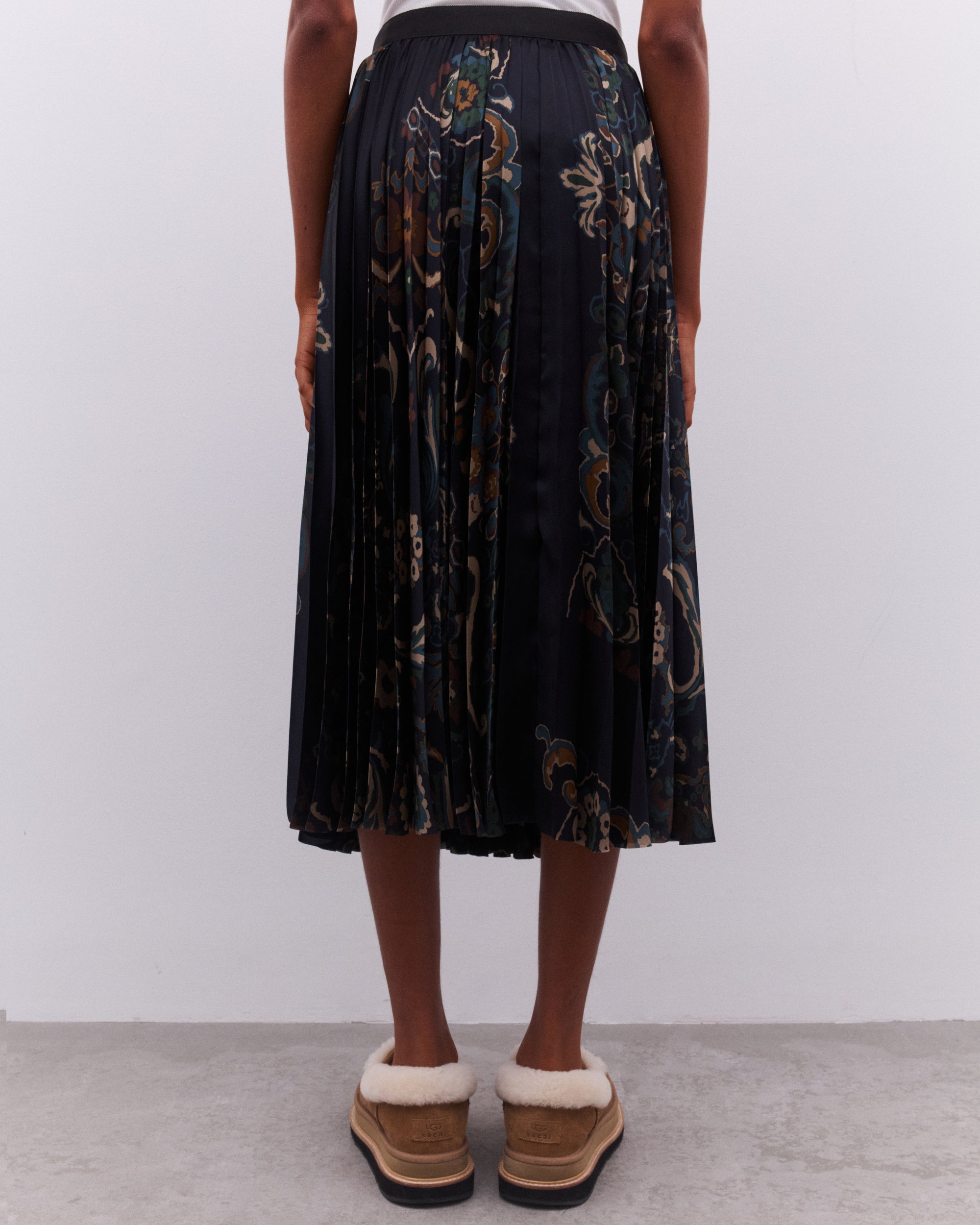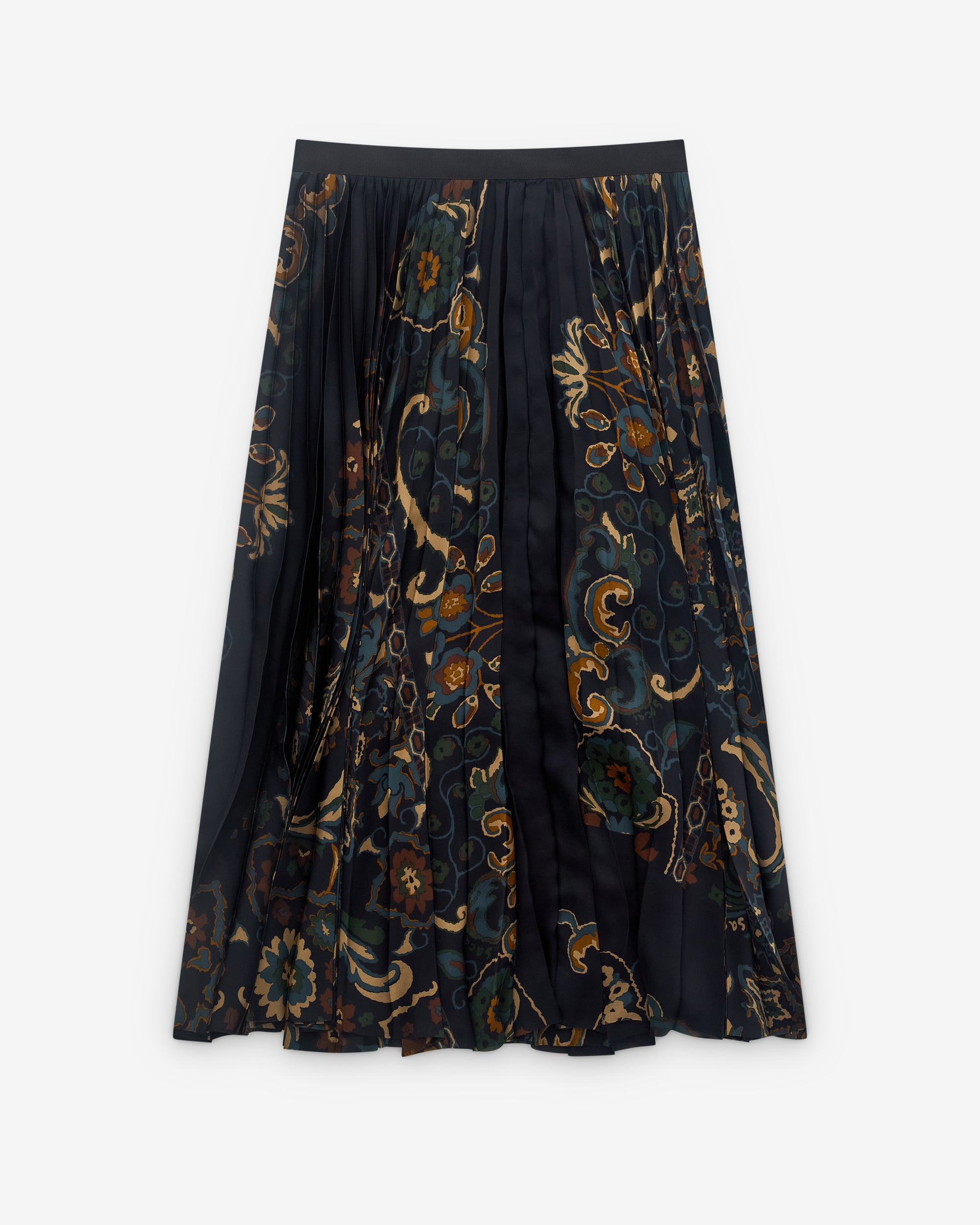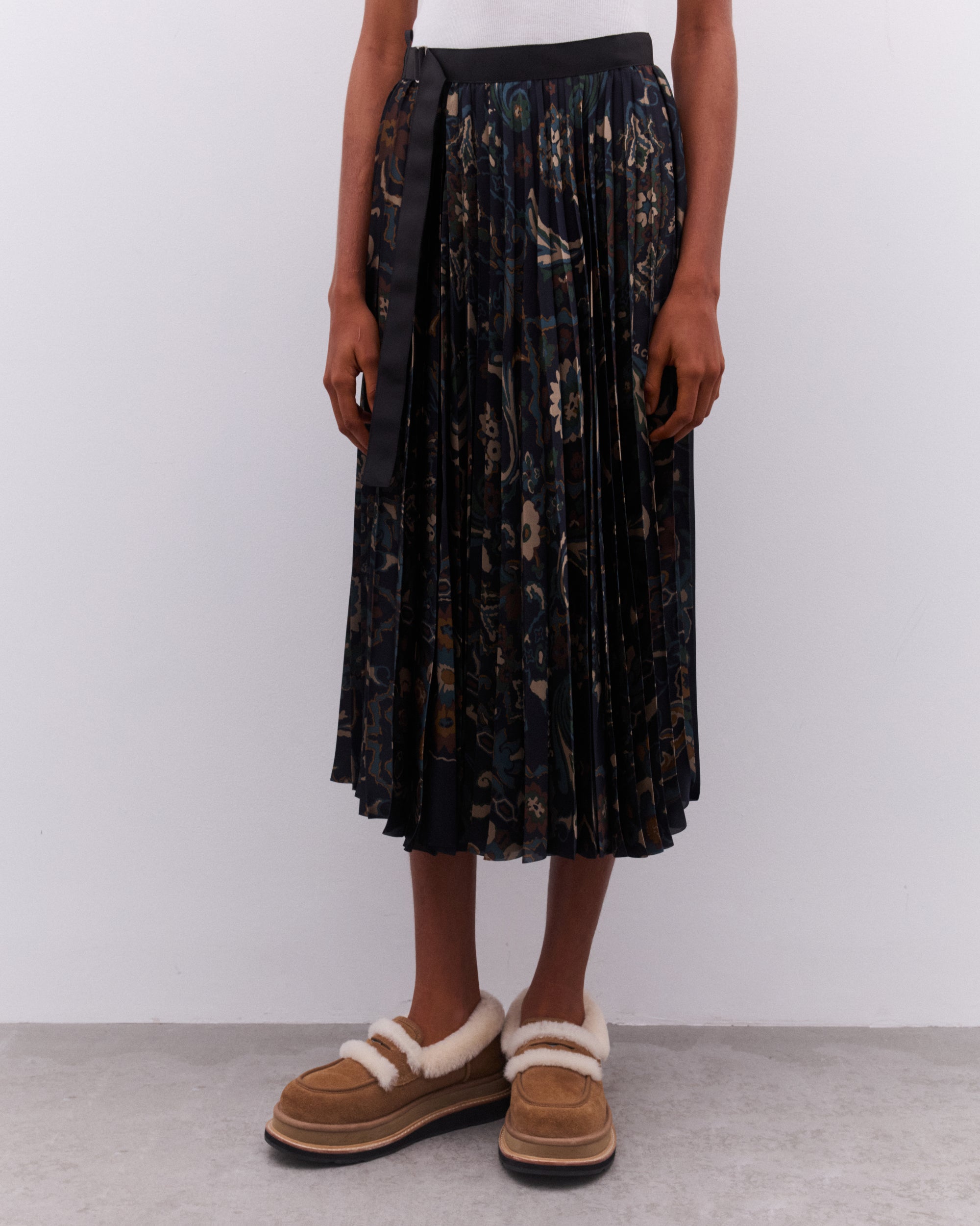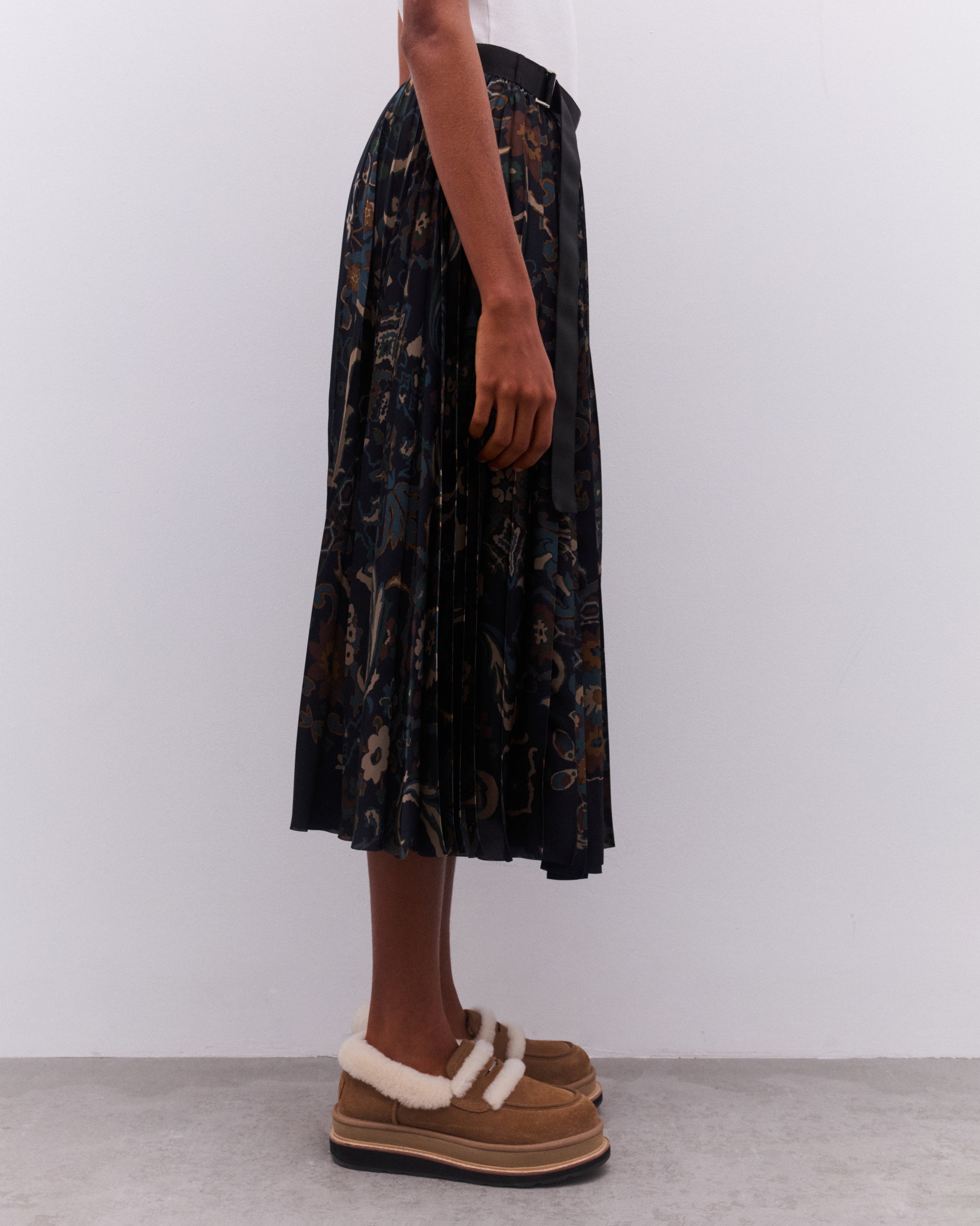 Mid-lengthPleatedAdjustable belt at waistbandA-line silhouette
