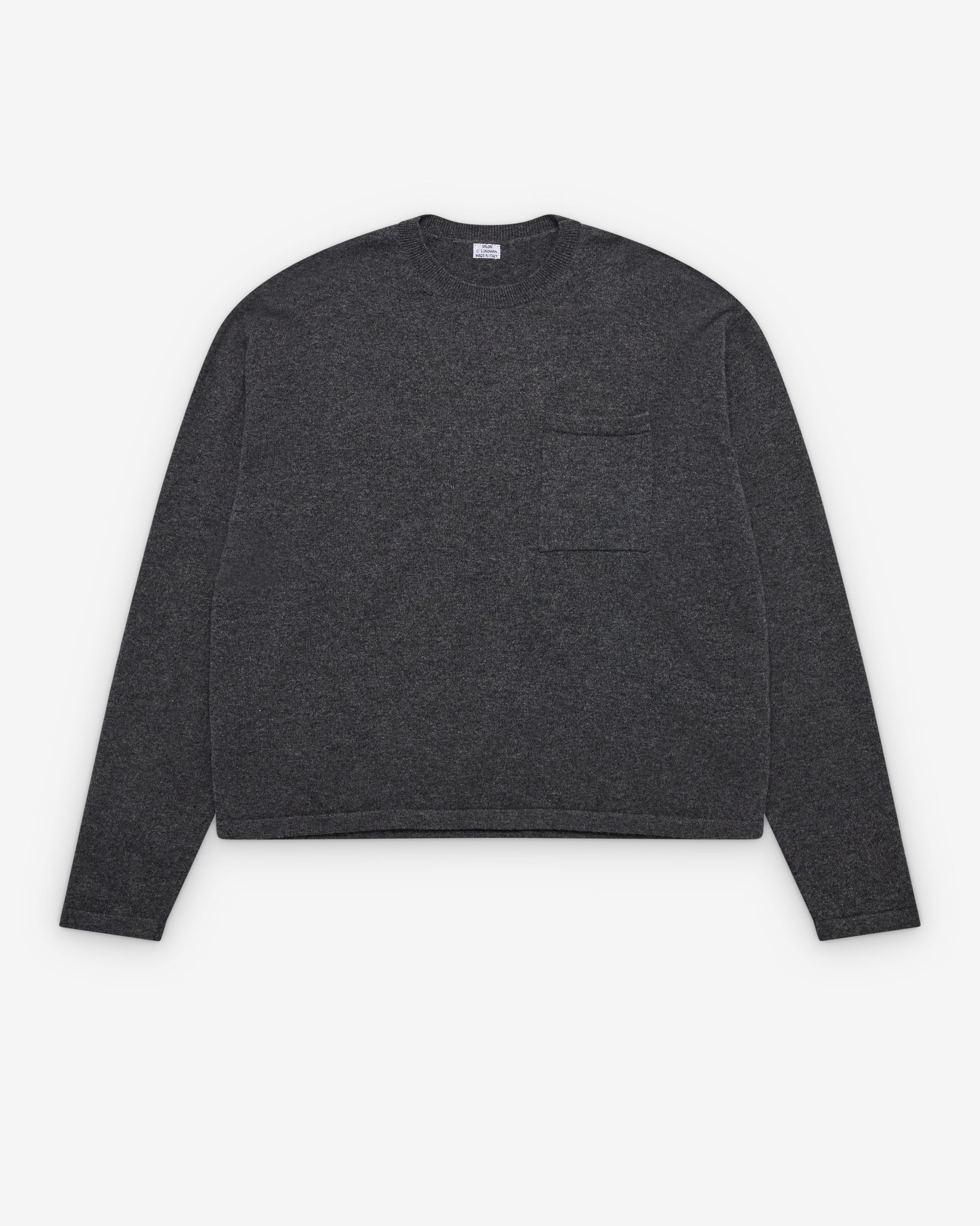 Ribbed crew necklineLong sleevesSingle chest pocketCropped fit through body
