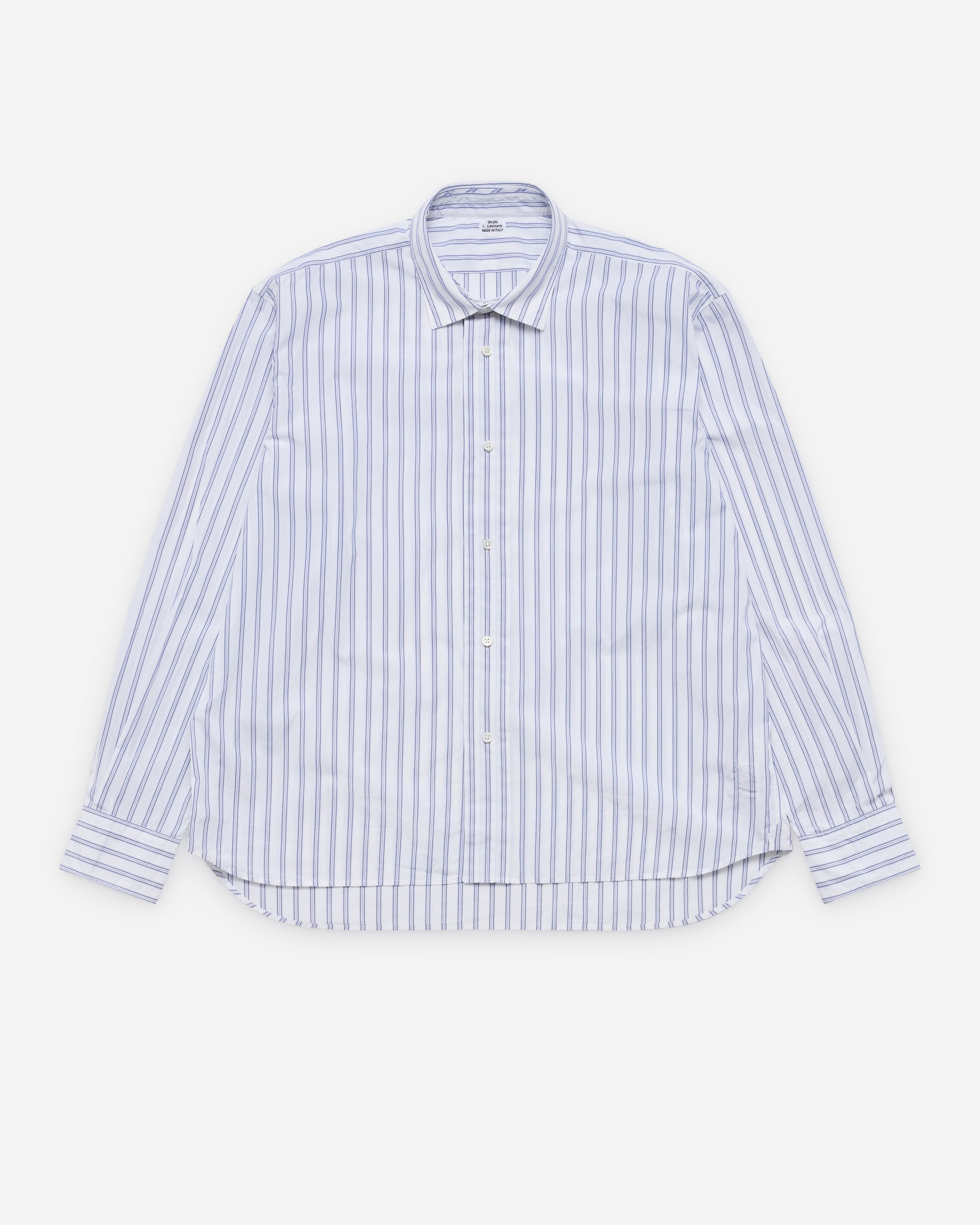 Point collarLong sleevesBoxy fitCurved shirttail hemButton close cuffs