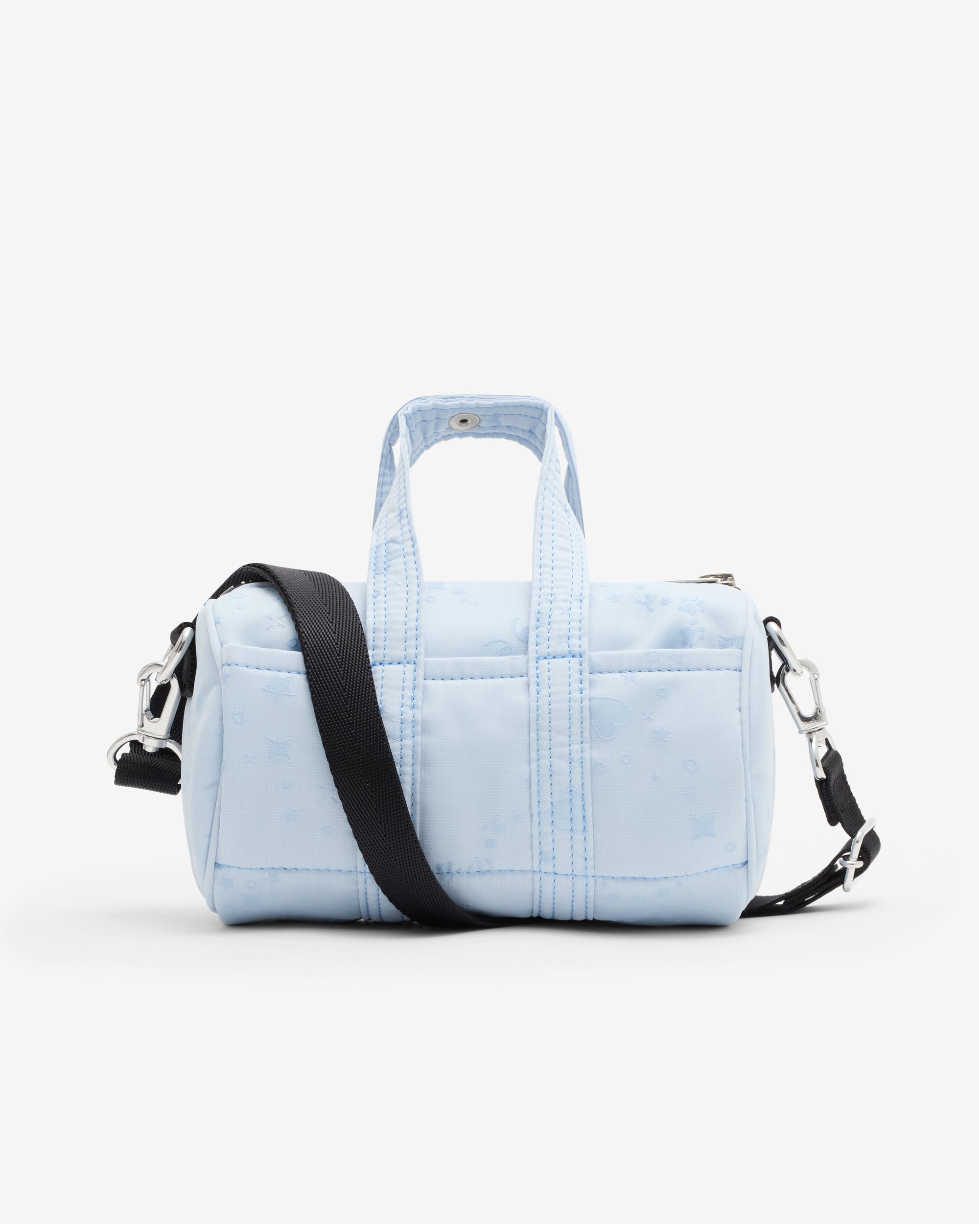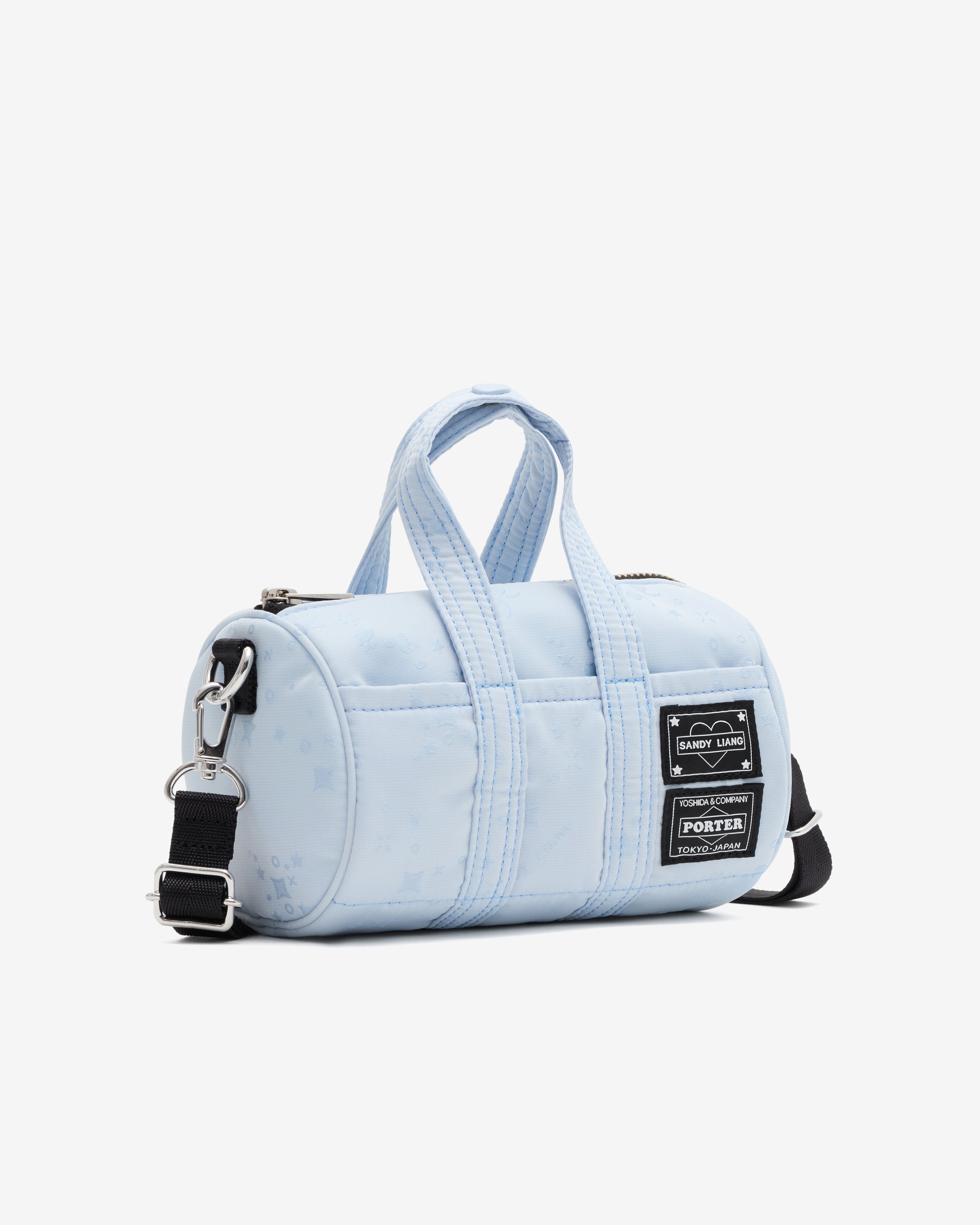 Top carry handleAdjustable shoulder strapDual branded patch logosMetal hardareZip top openingSingle interior pocketW:170mm/H:105mm/D:105mm