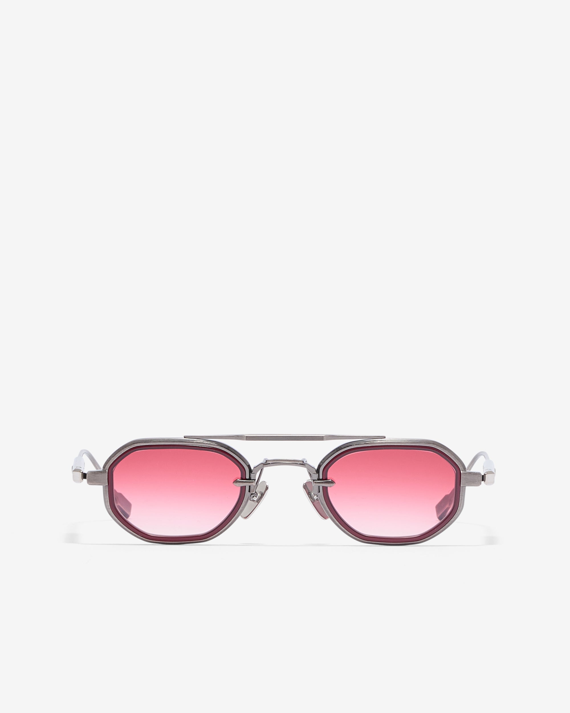 Titanium frame, antique silver & platinum coatingBurgundy takiron rim insertGradient red lens27 x 145 x 43 mmLimited edition of 350 pieces