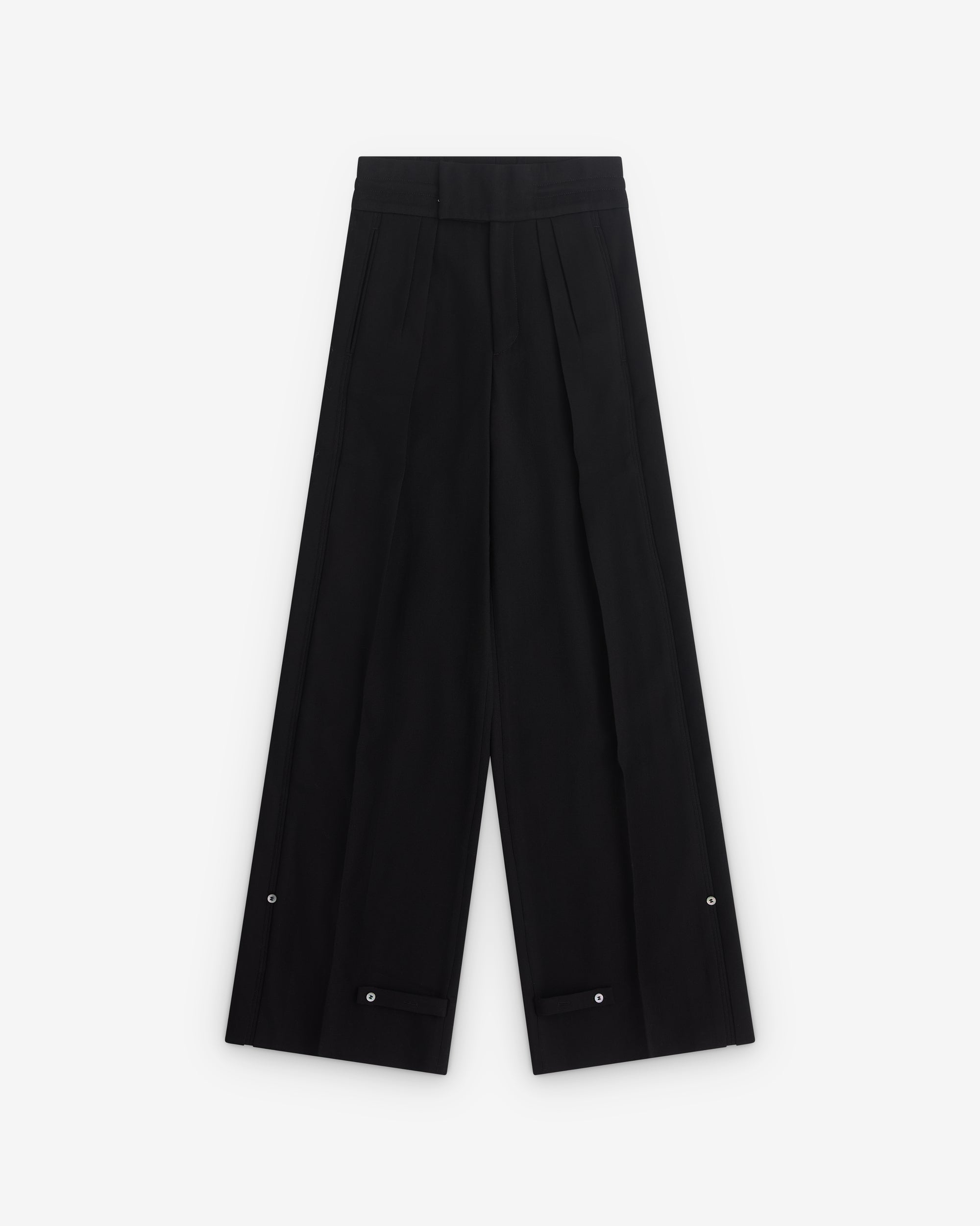 Two side pocketsTwo back pocketsAdjustable buttoned cuffsExaggerated bar hook fastening