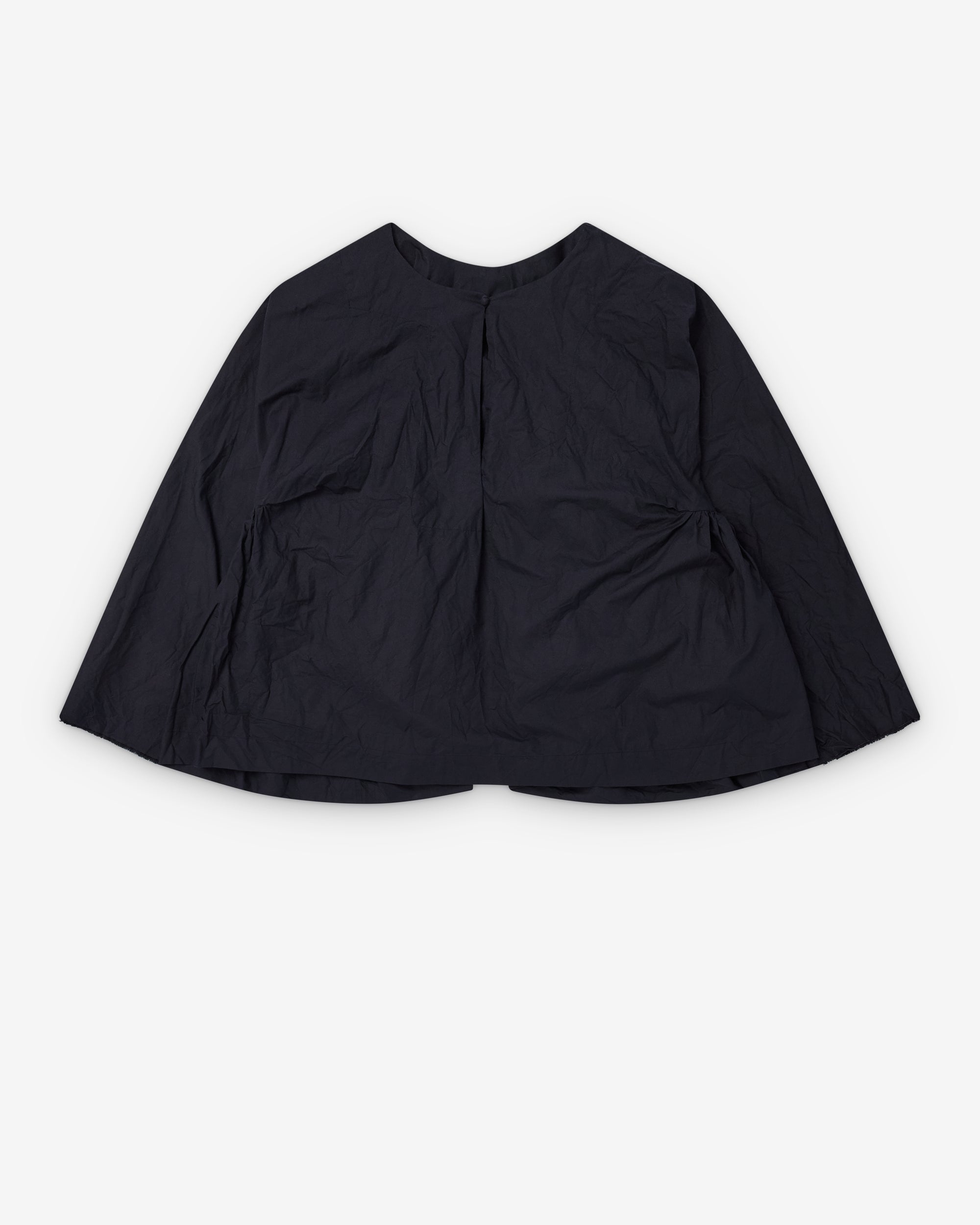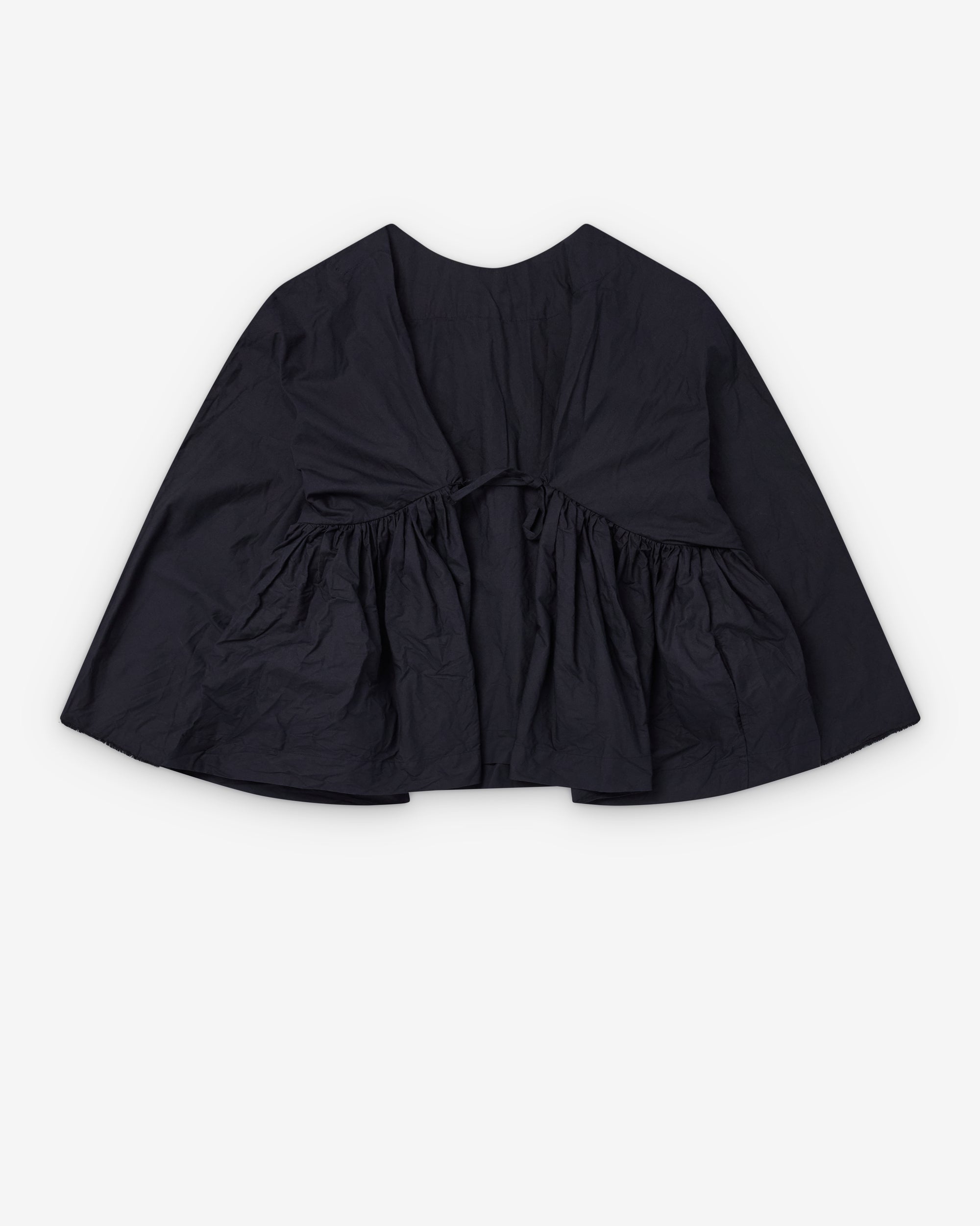 CollarlessCropped fit through bodyLong sleevesWashed gingham cotton fabricTie at back