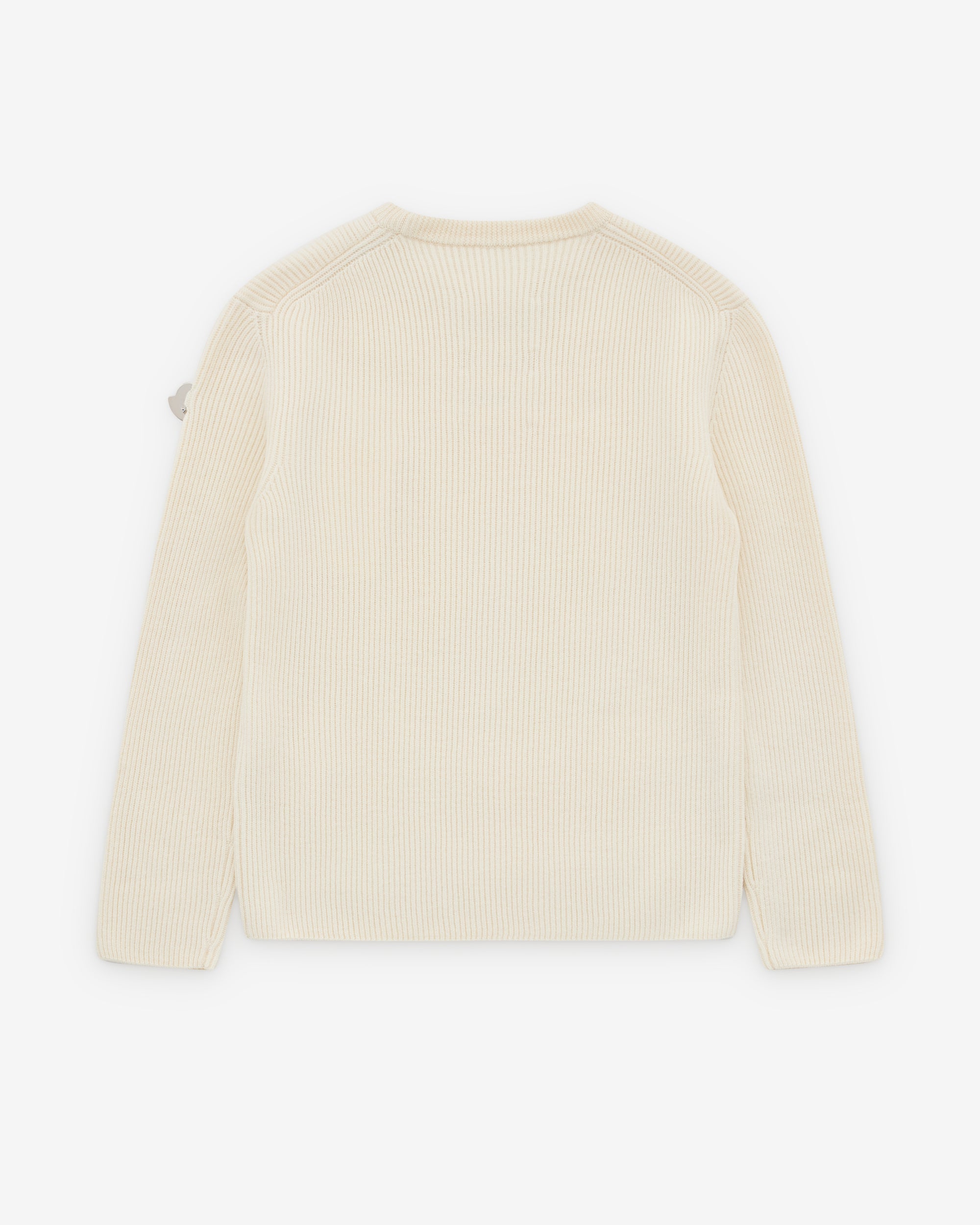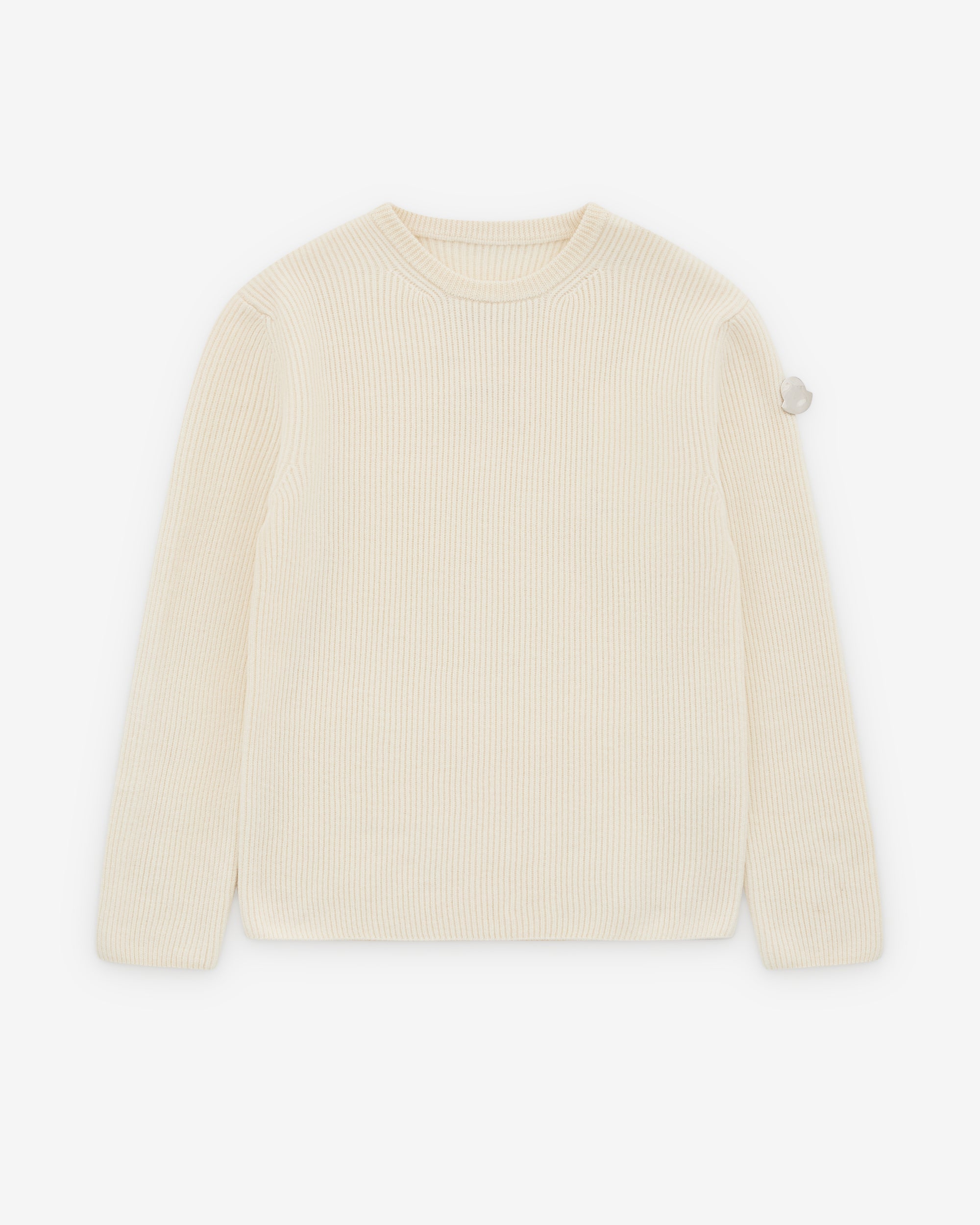 Crafted from felted woolEnglish rib knitGauge 5Crew neckDetachable metal logo pin100% WoolMade in Italy