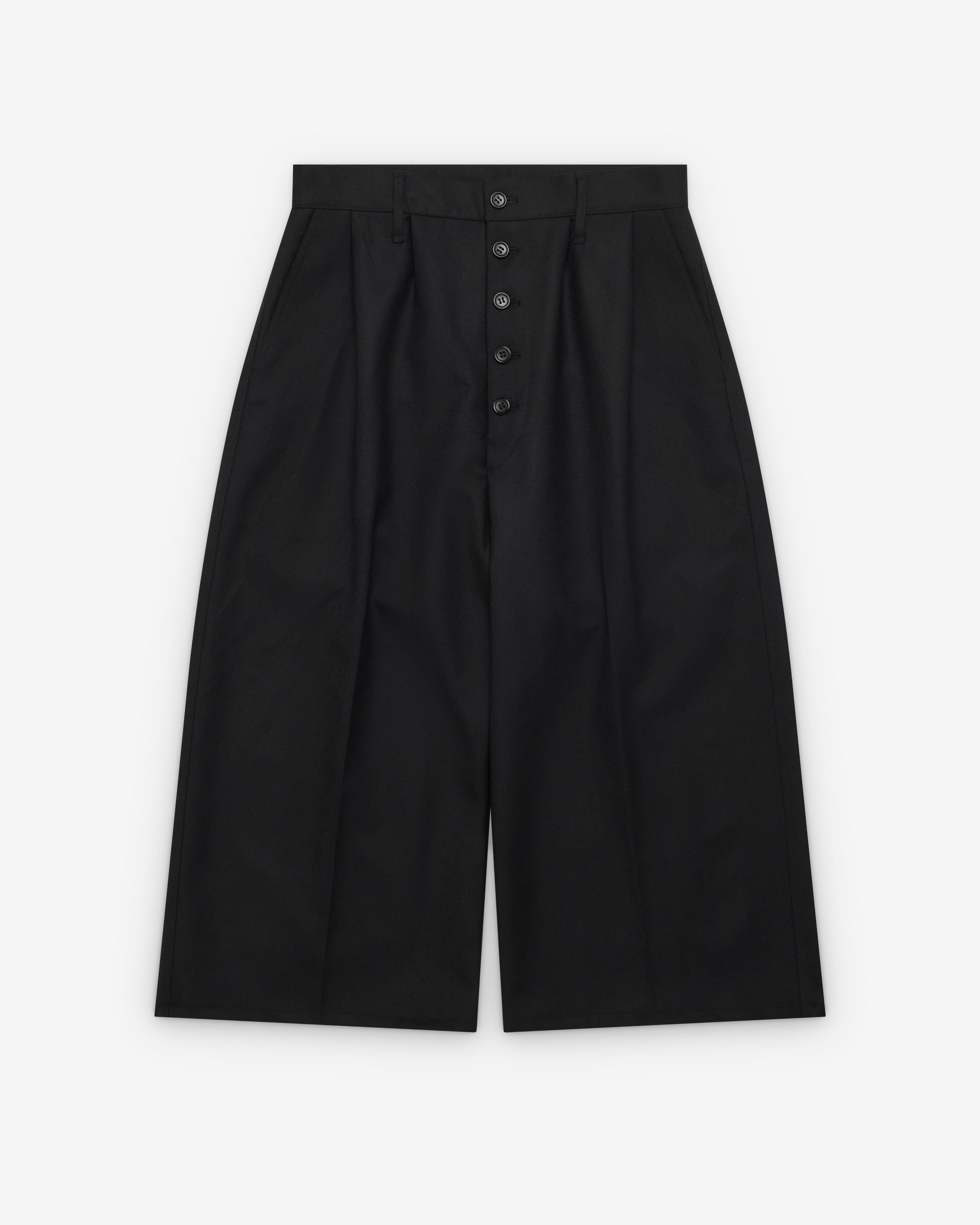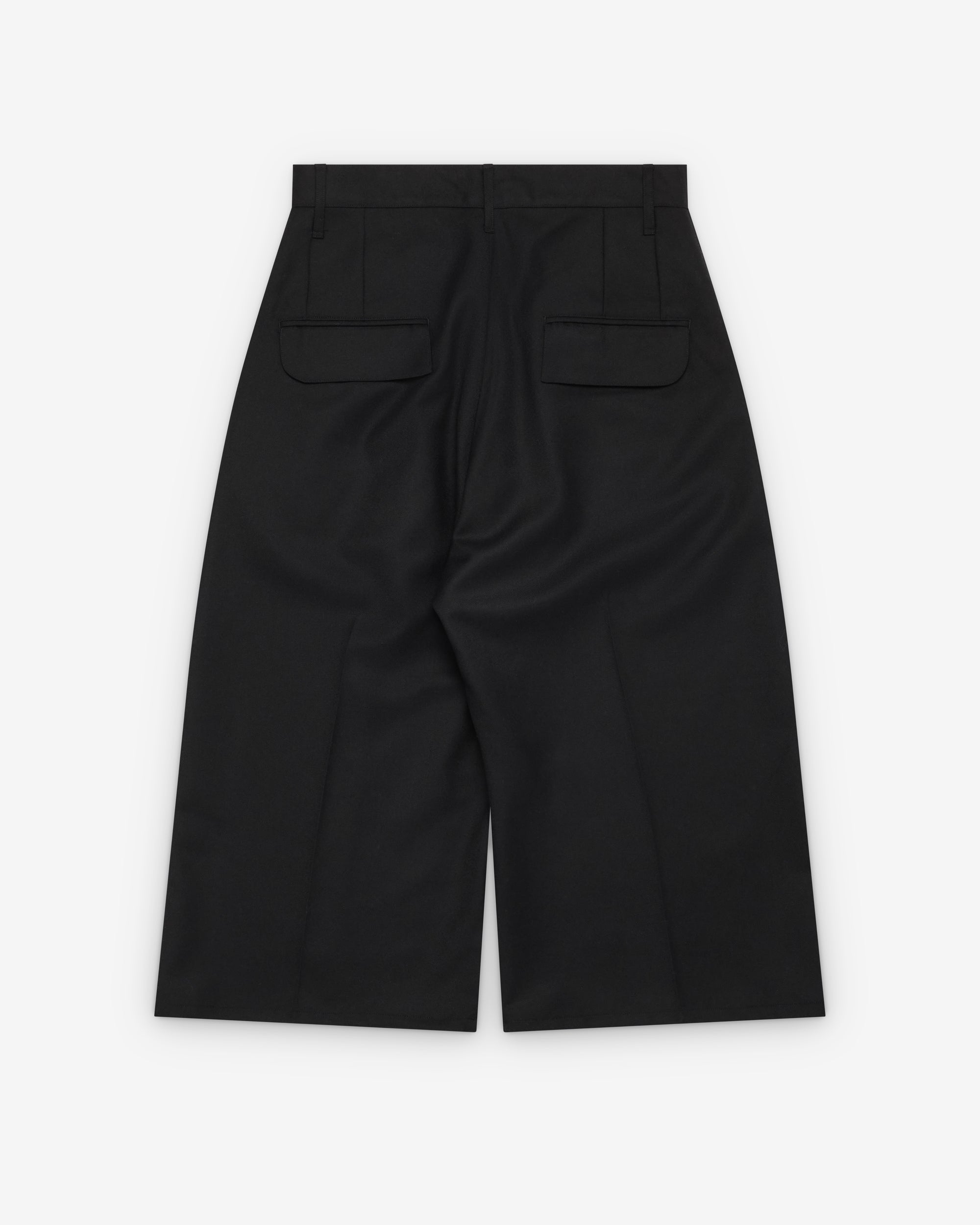 Wide leg fitTwo front pocketsTwo back pocketsThree quarter length100% WoolMade in Japan