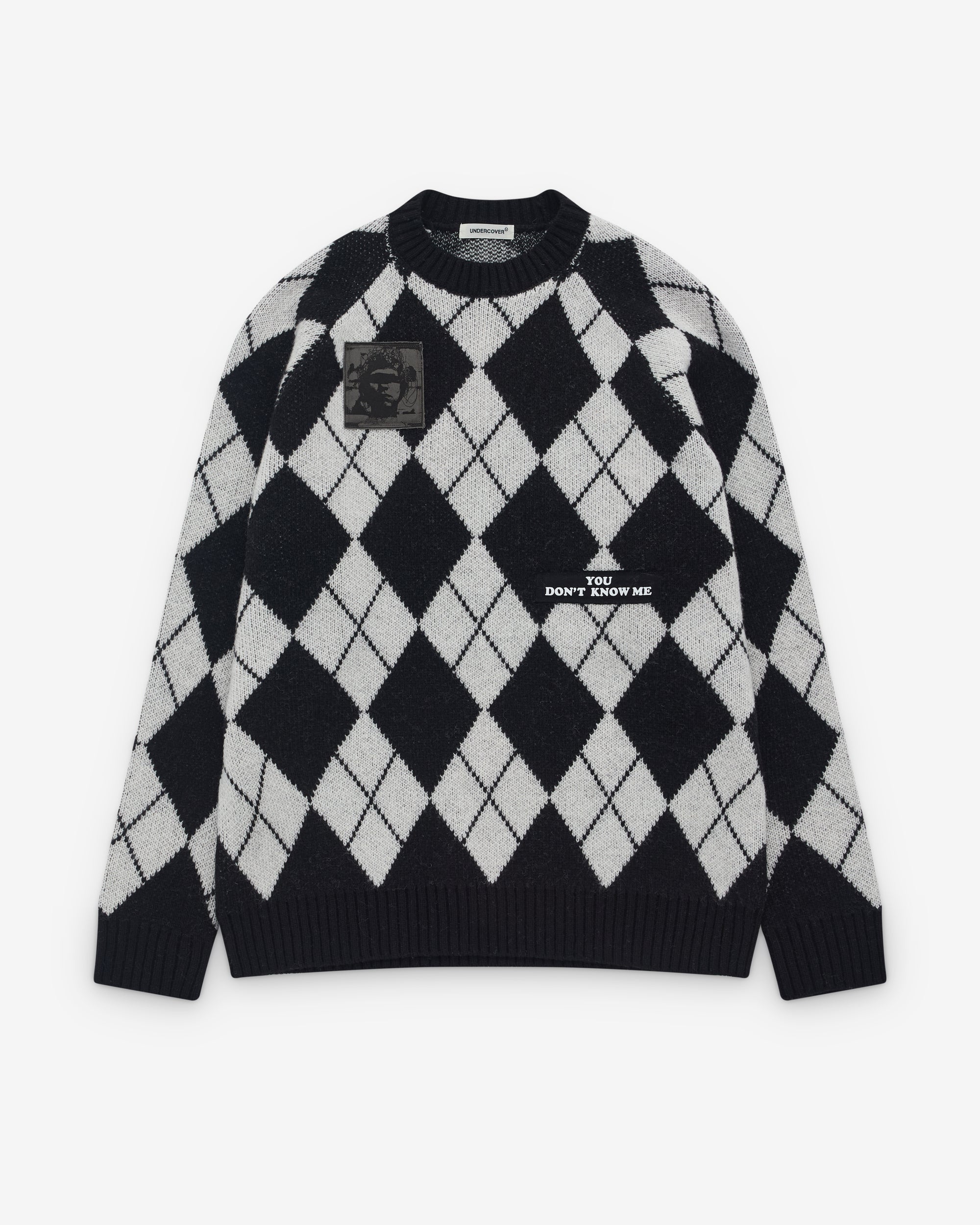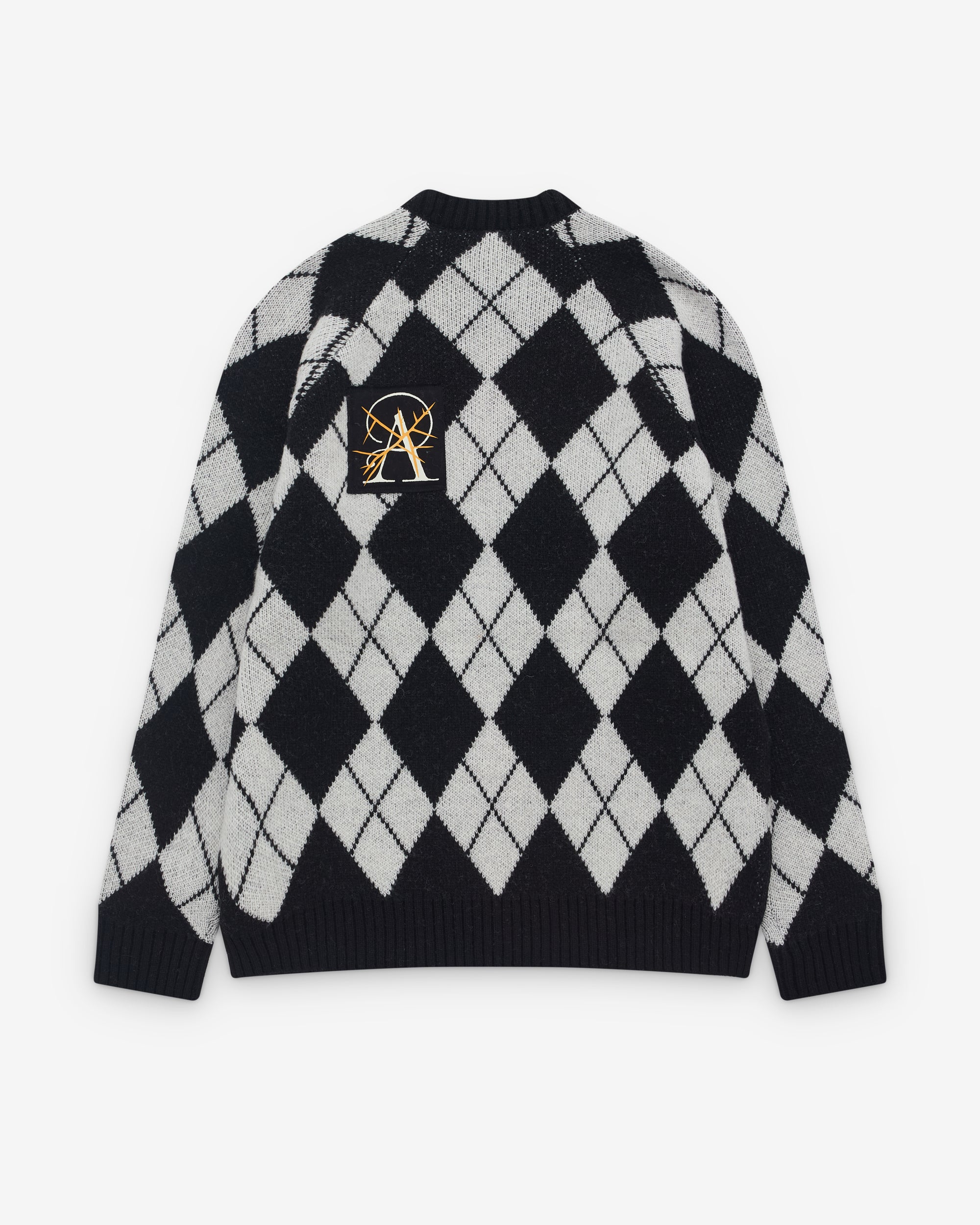 Round neckChunky rib knit trimsAll over argyle printSewn on patches throughout