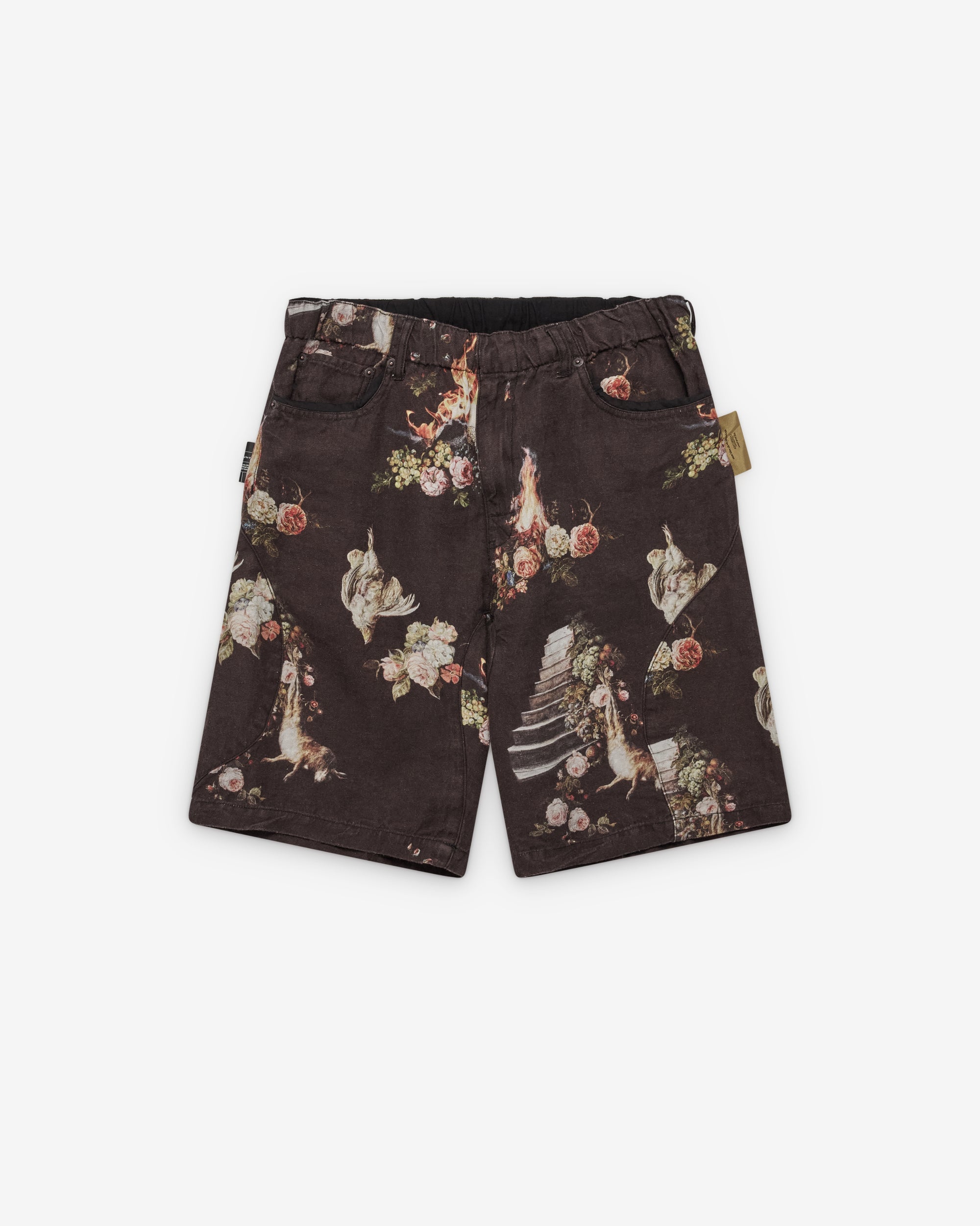 Elasticated waist bandFive pocket constructionPrinted fabricGraphic tab labels