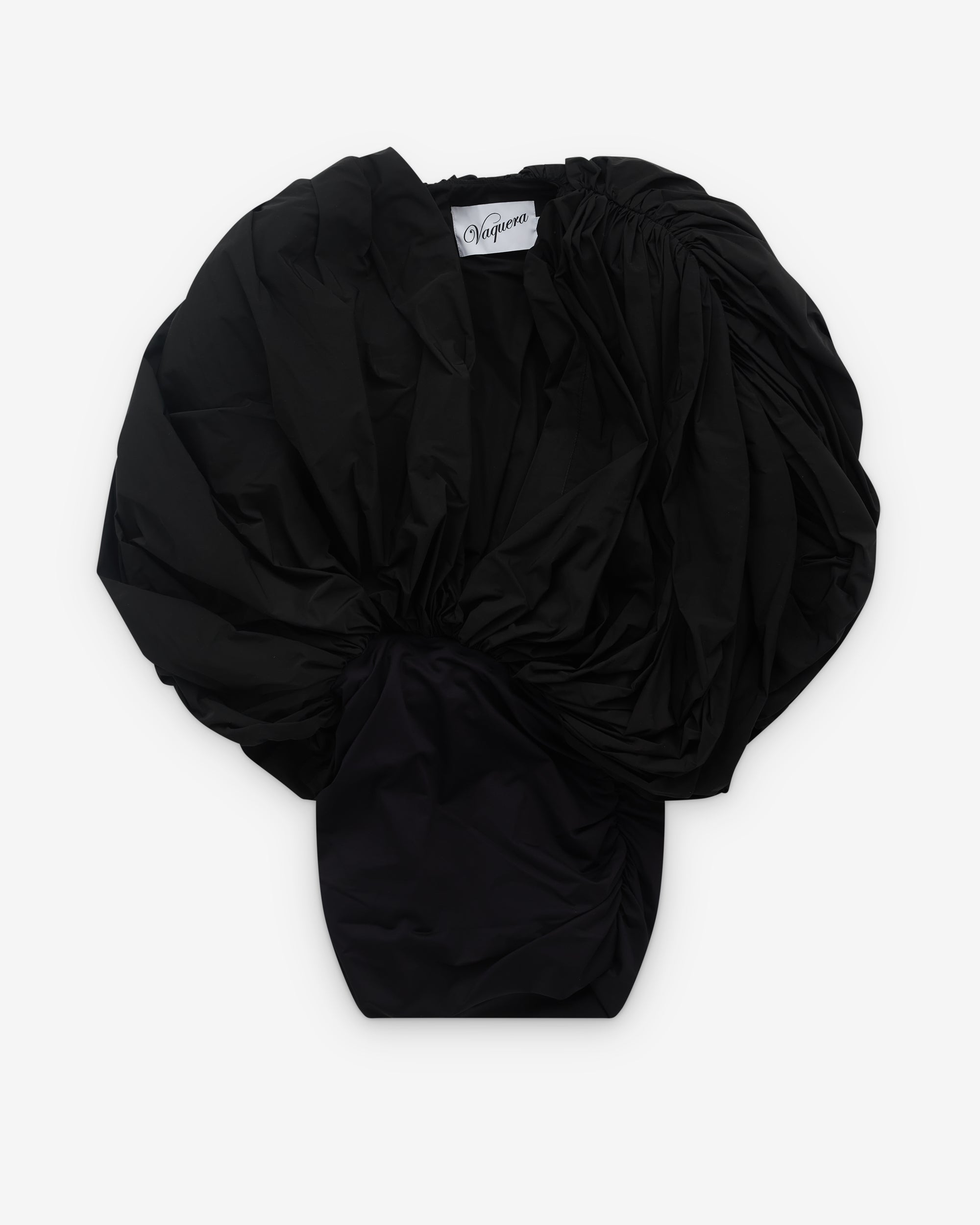 Draped, voluminous overlay constructionSlim fit skirtMin-lengthSleeveless