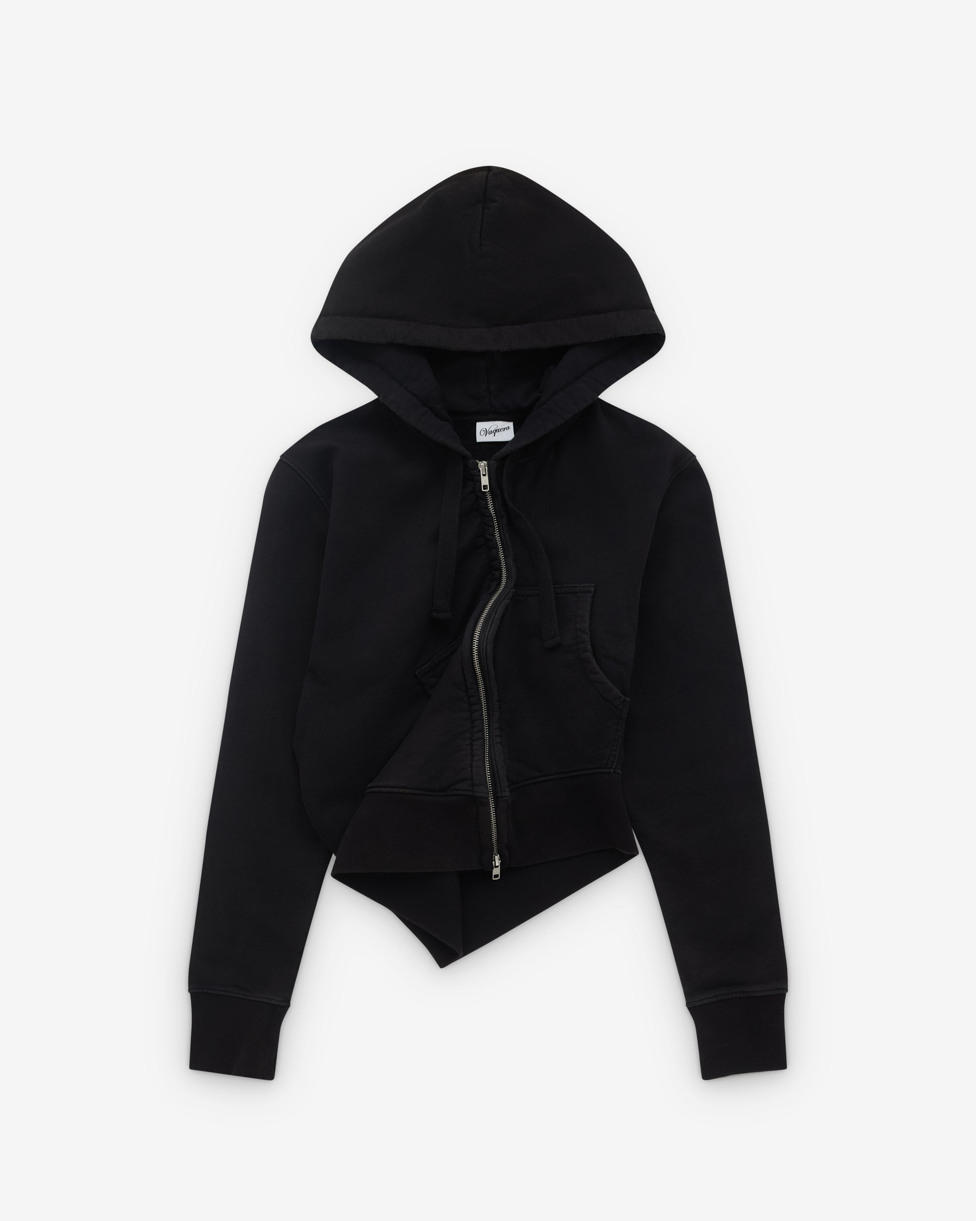 Hooded with drawcordZip fasteningAsymmetric hemRibbed knit trimsPatch pocketsRear printed graphics