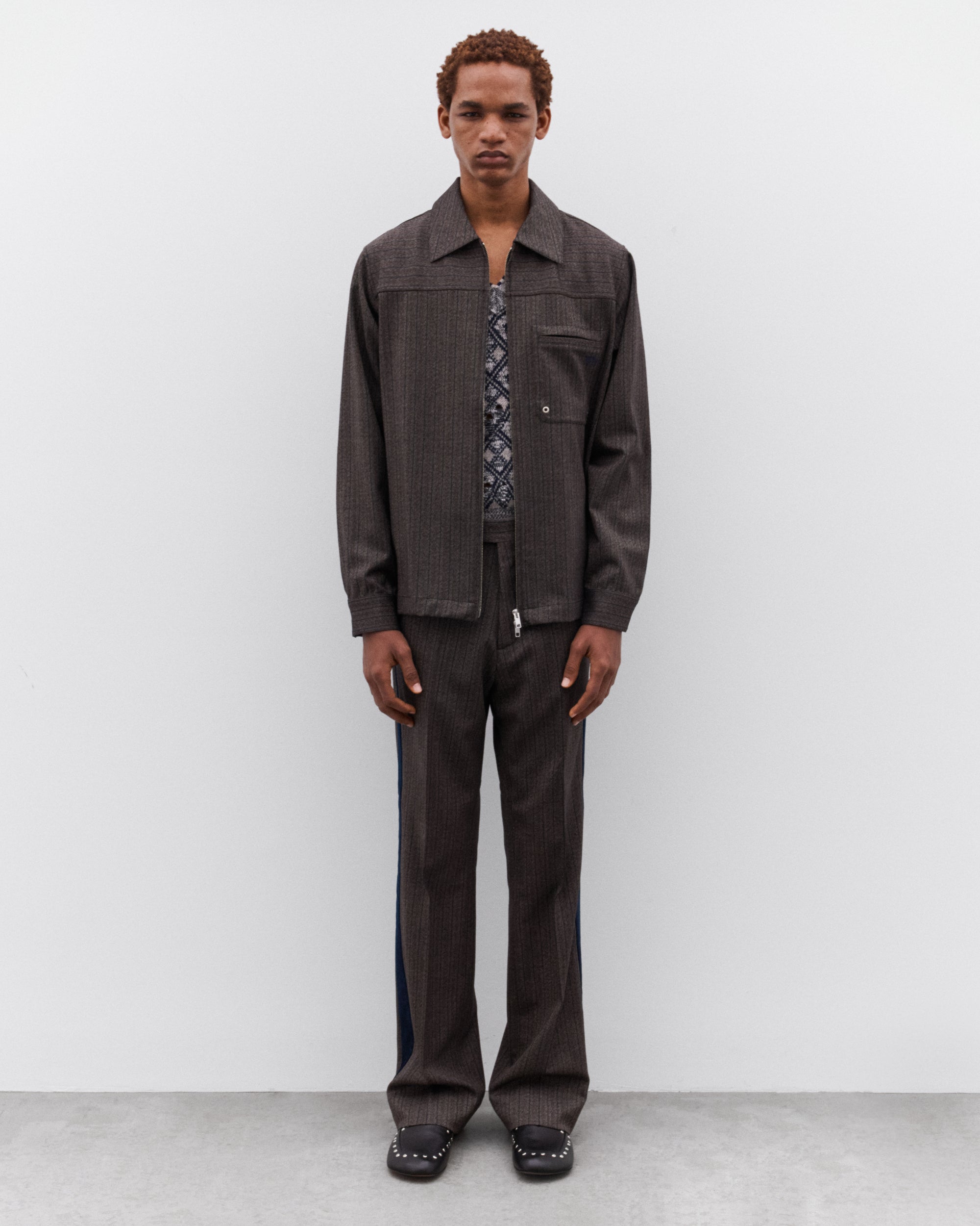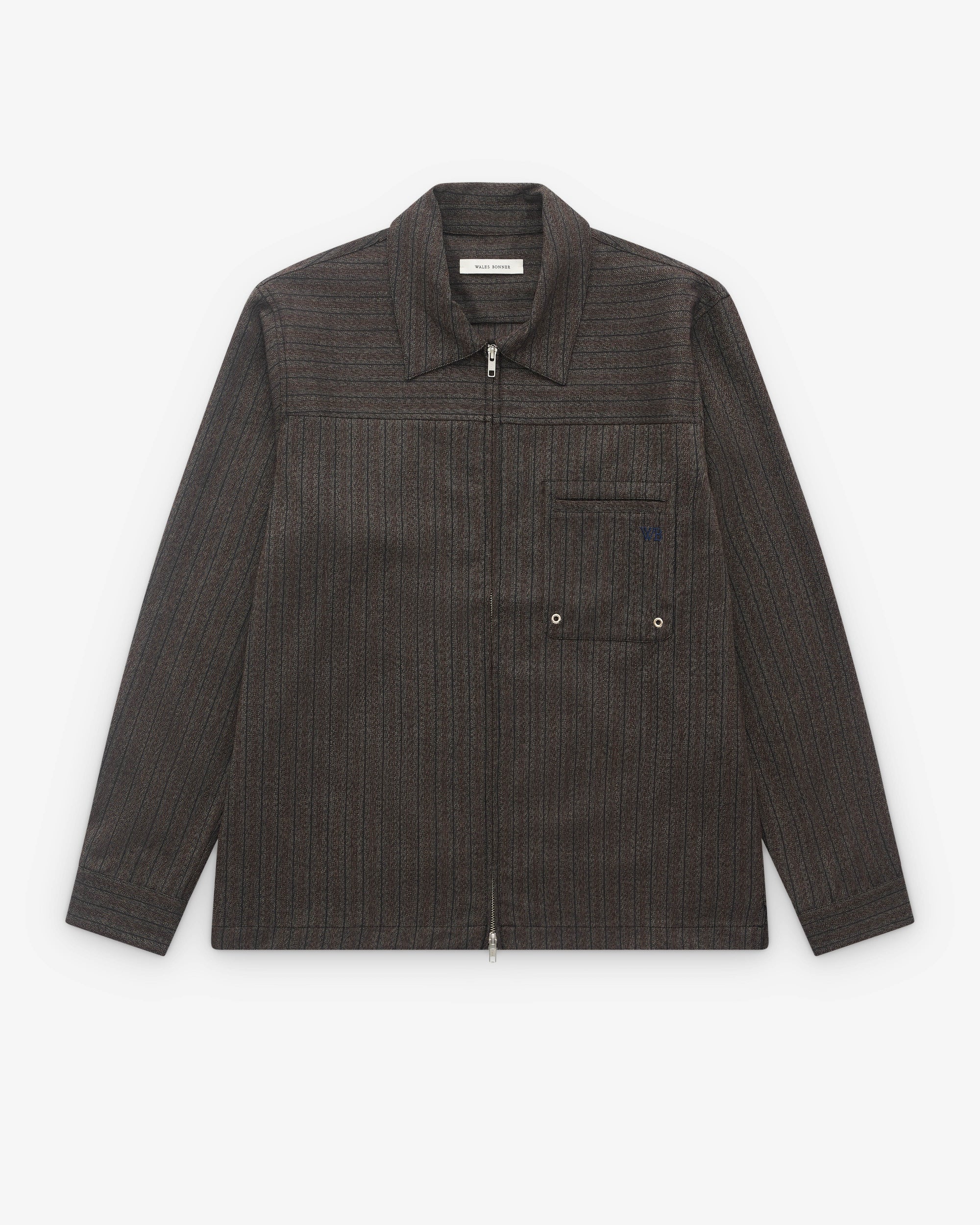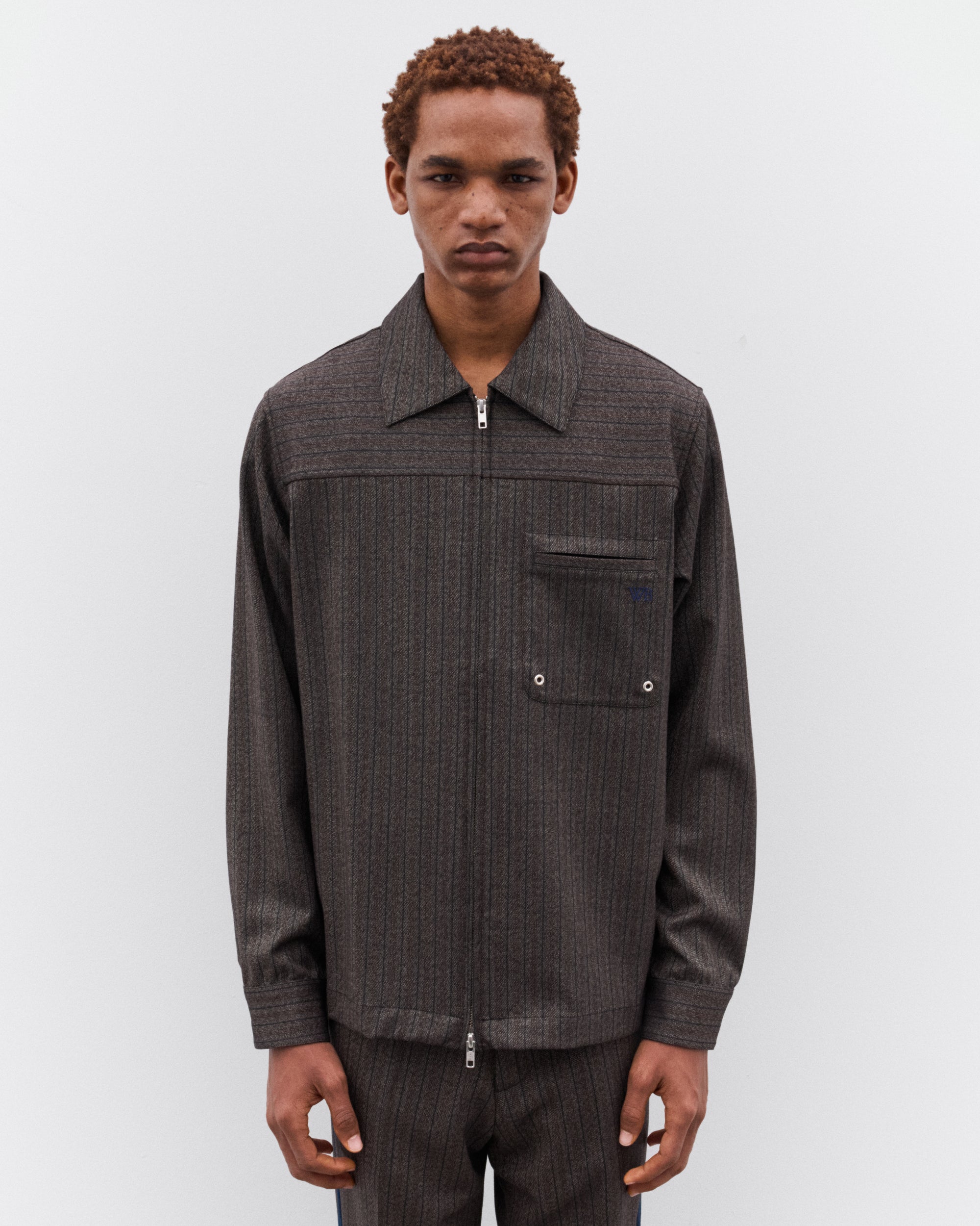 Point collarTwo way, zip fasteningStraight hemPatch pocket at chestPress stud button cuffs