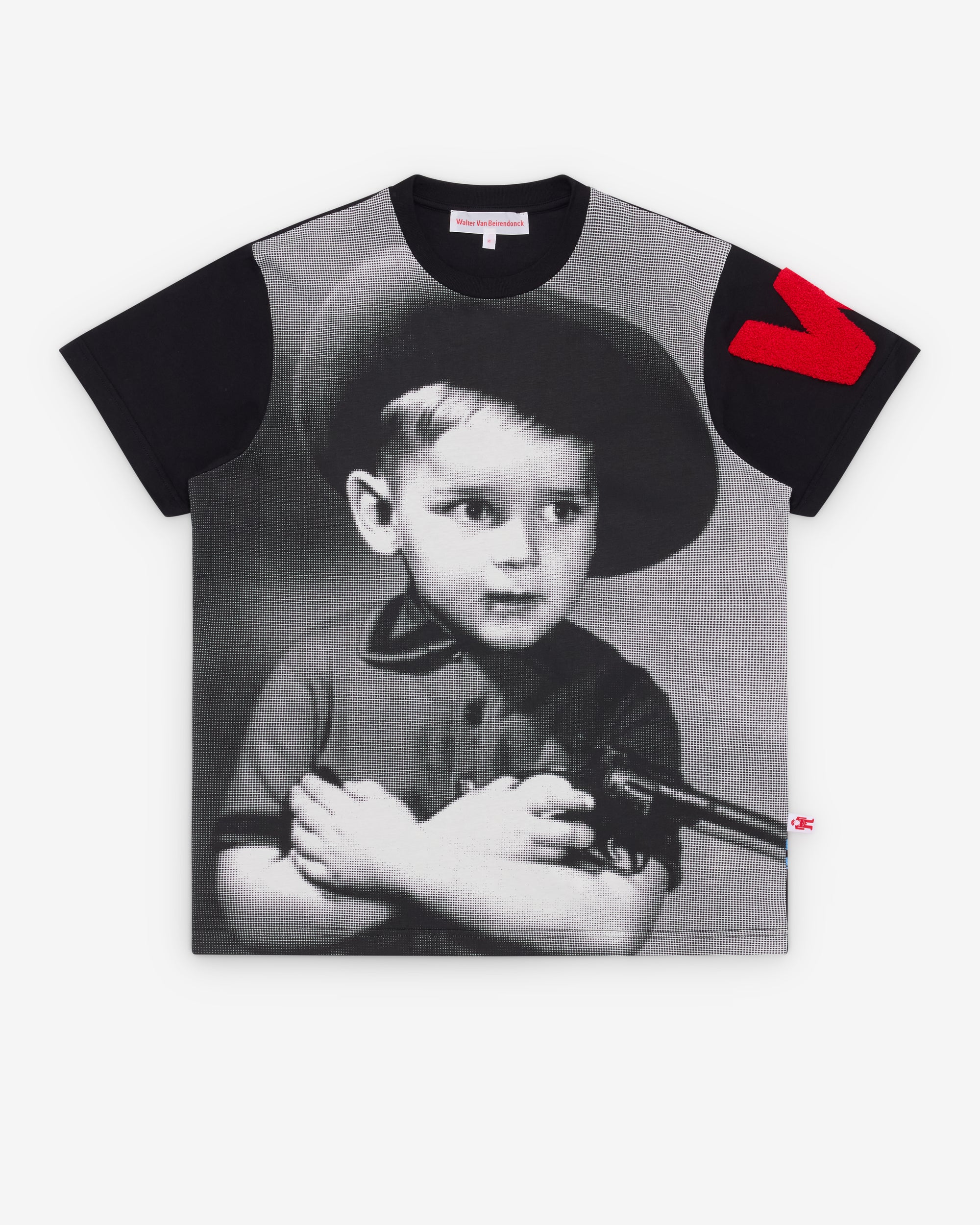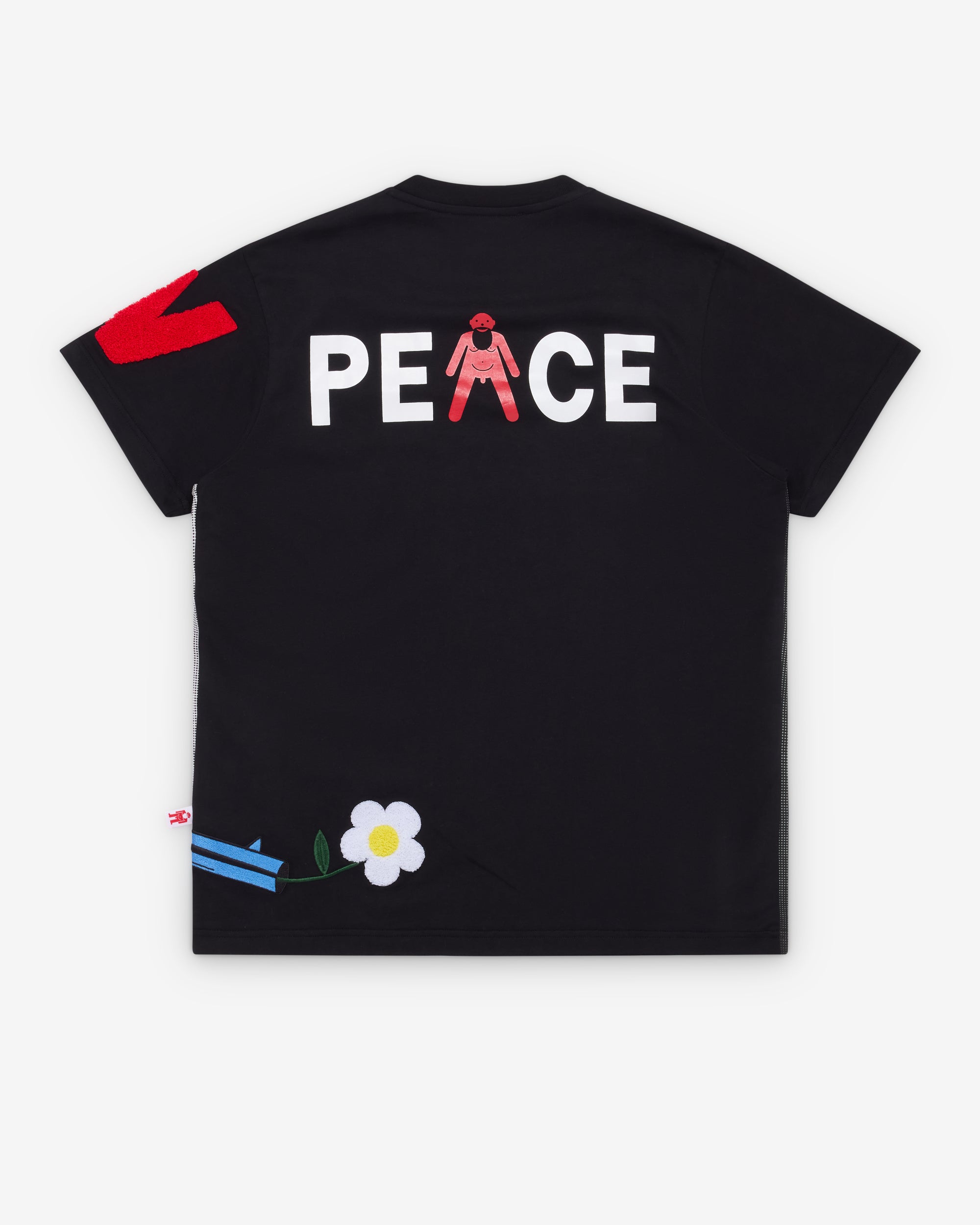Ribbed crewneckShort sleevesAll over print on frontScreen printed graphicsEmbroidered graphicsTab label at side