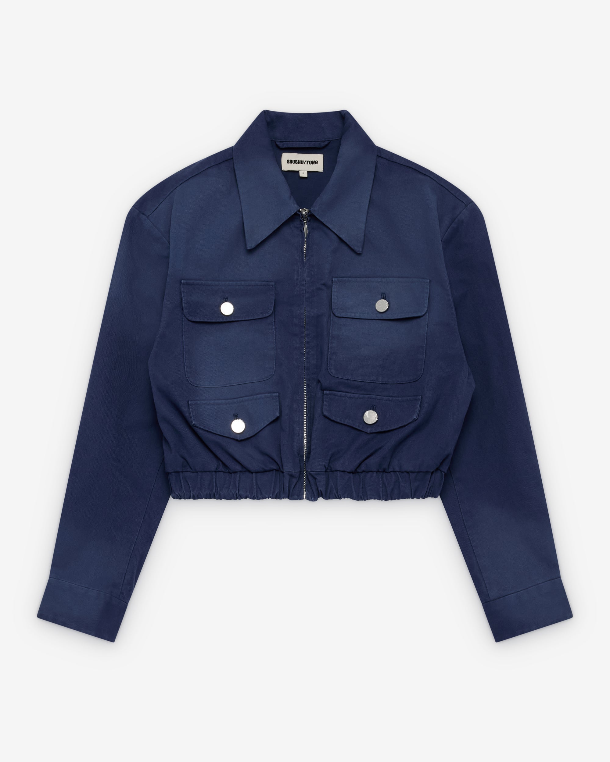 Multi-pocket utility designClassic collarLong sleeves with button cuffsFront button closureCropped lengthRelaxed fit
