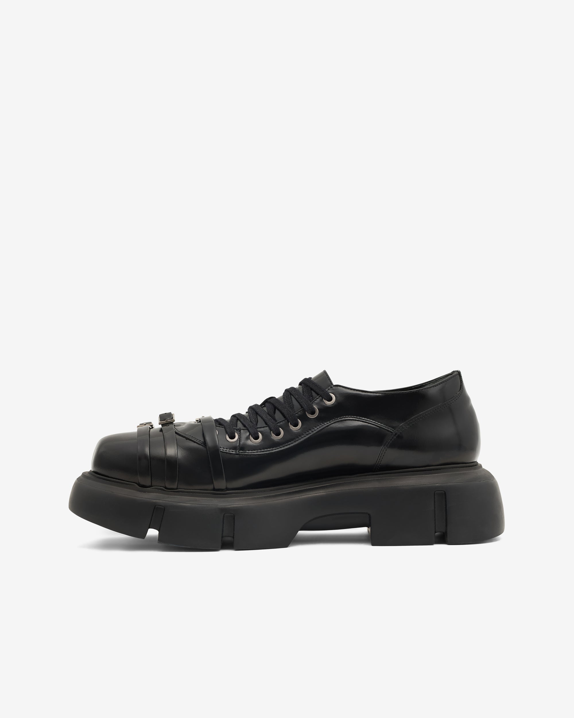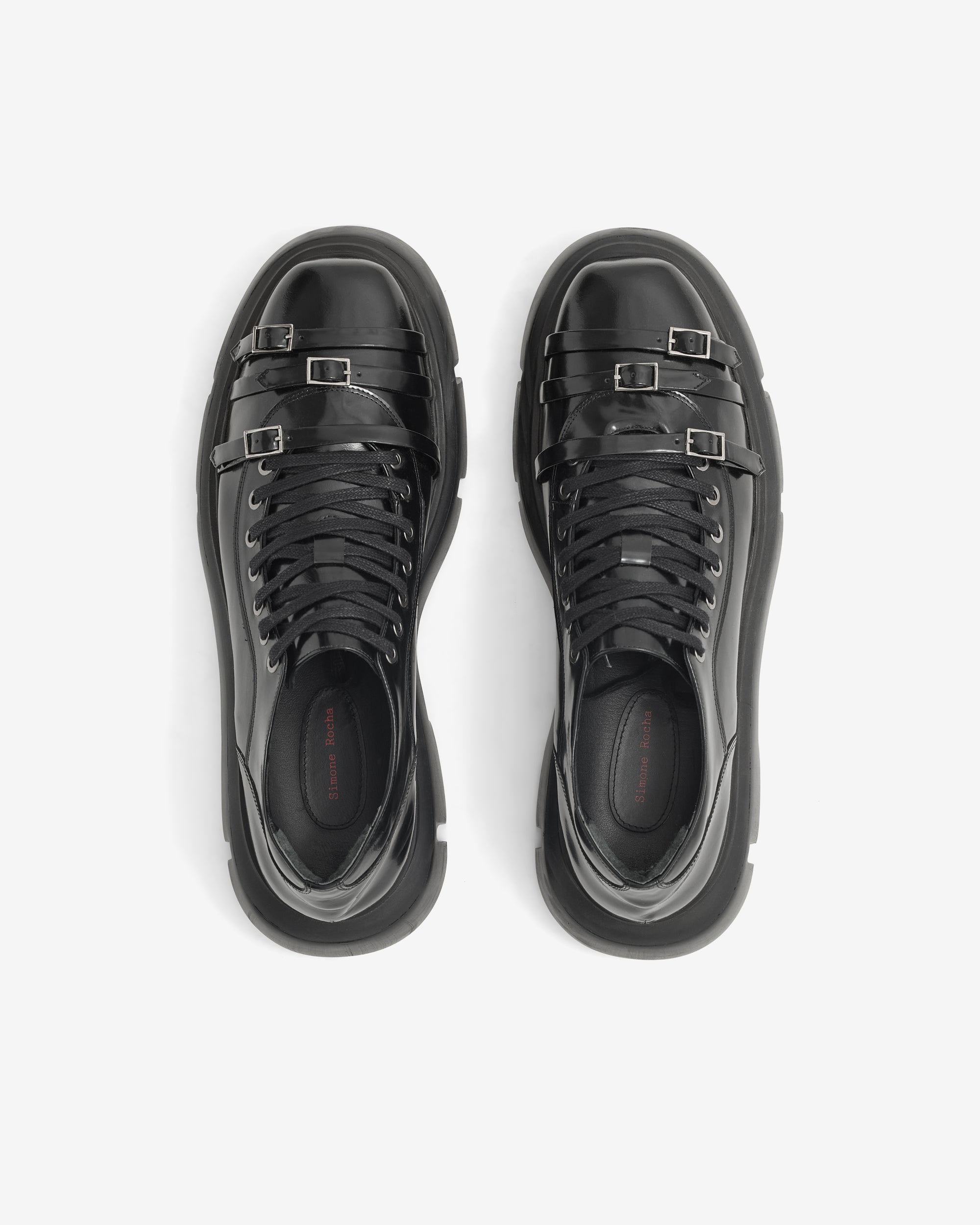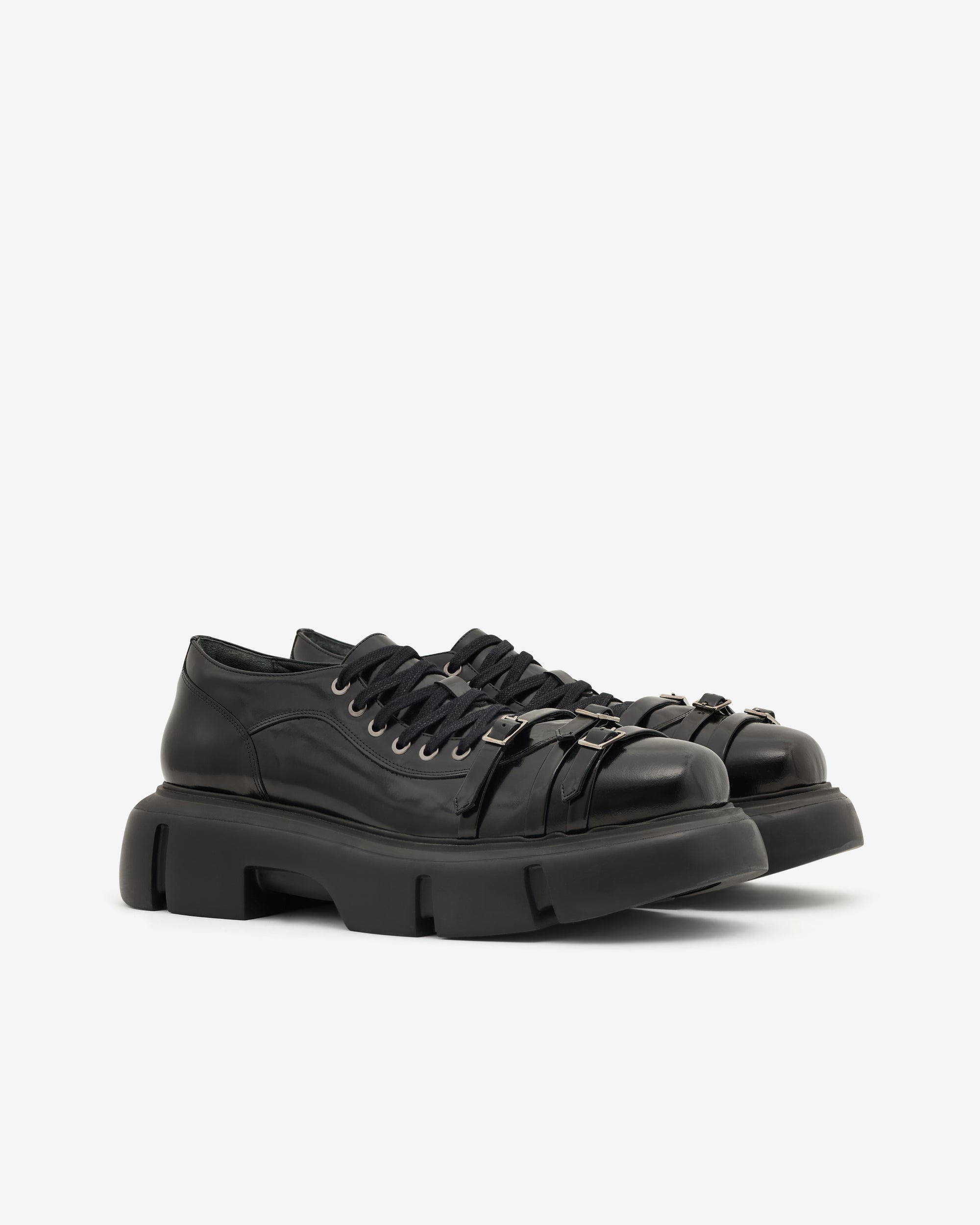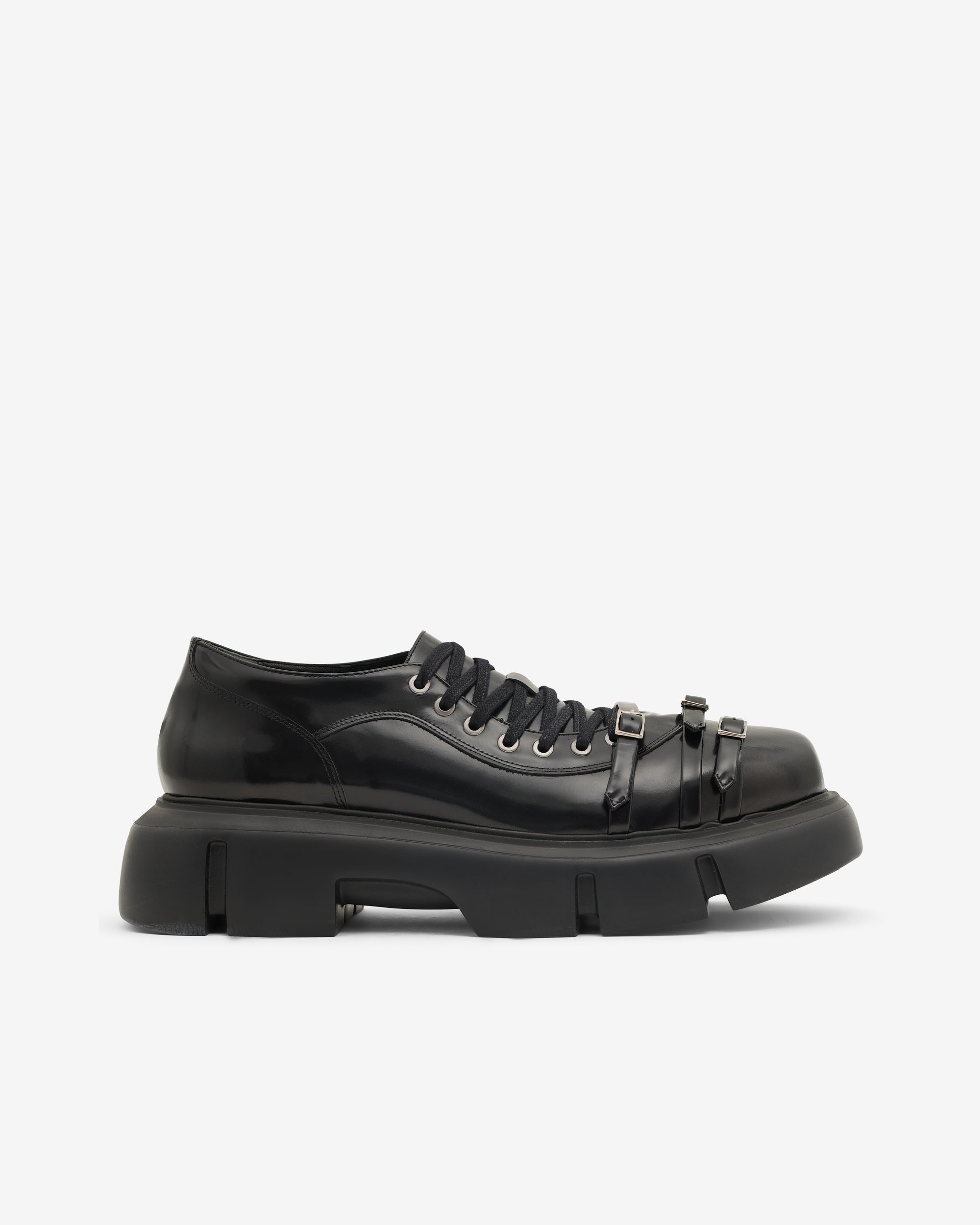 Low-top leather platform bootsBuckle detail throughoutLace up closureHeel height 6cm