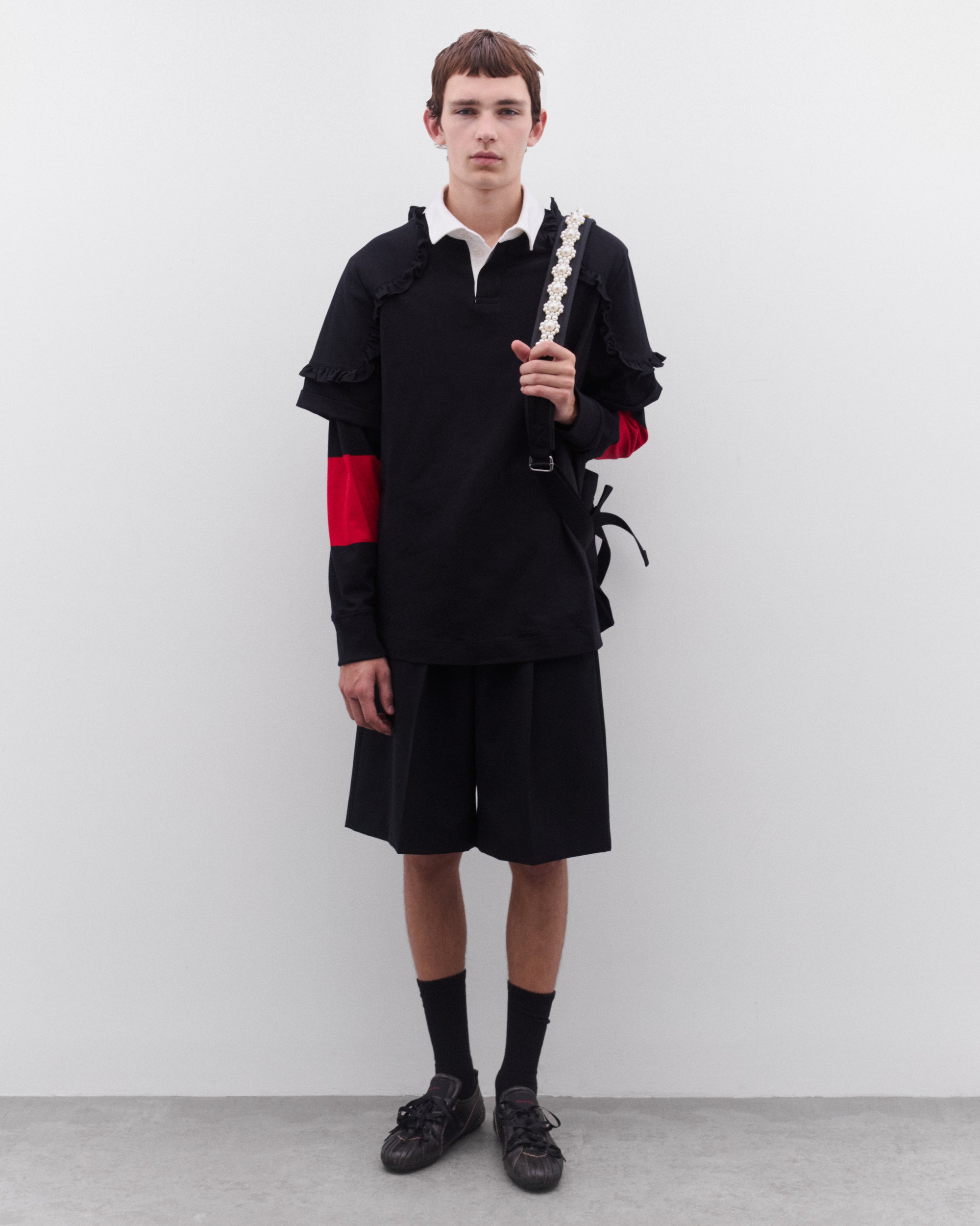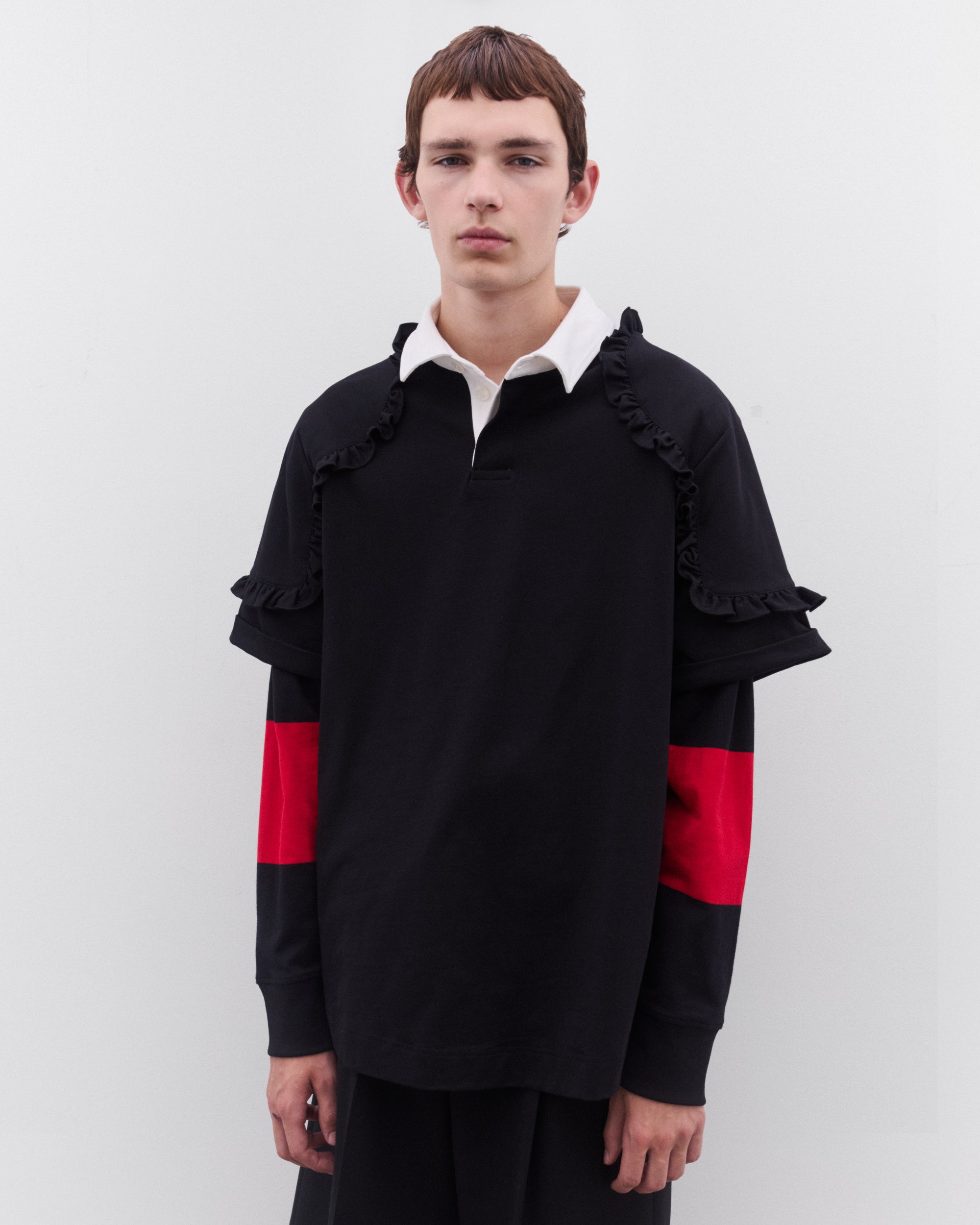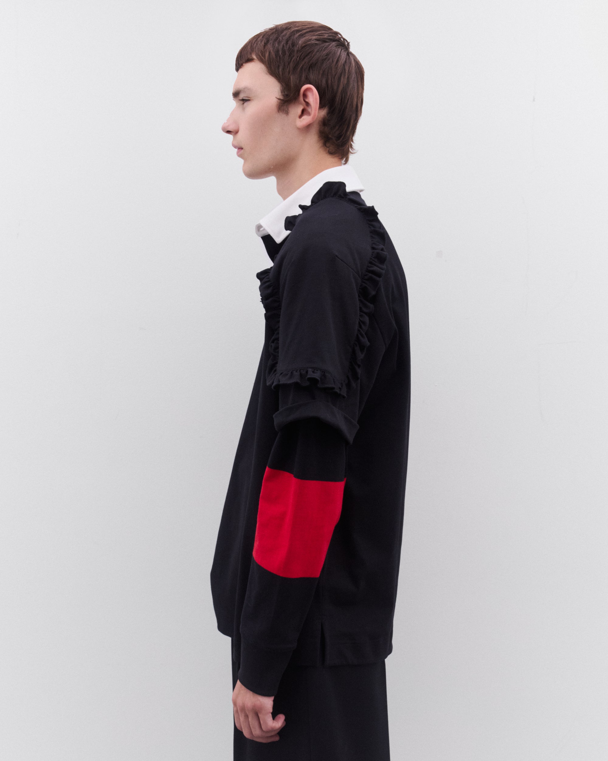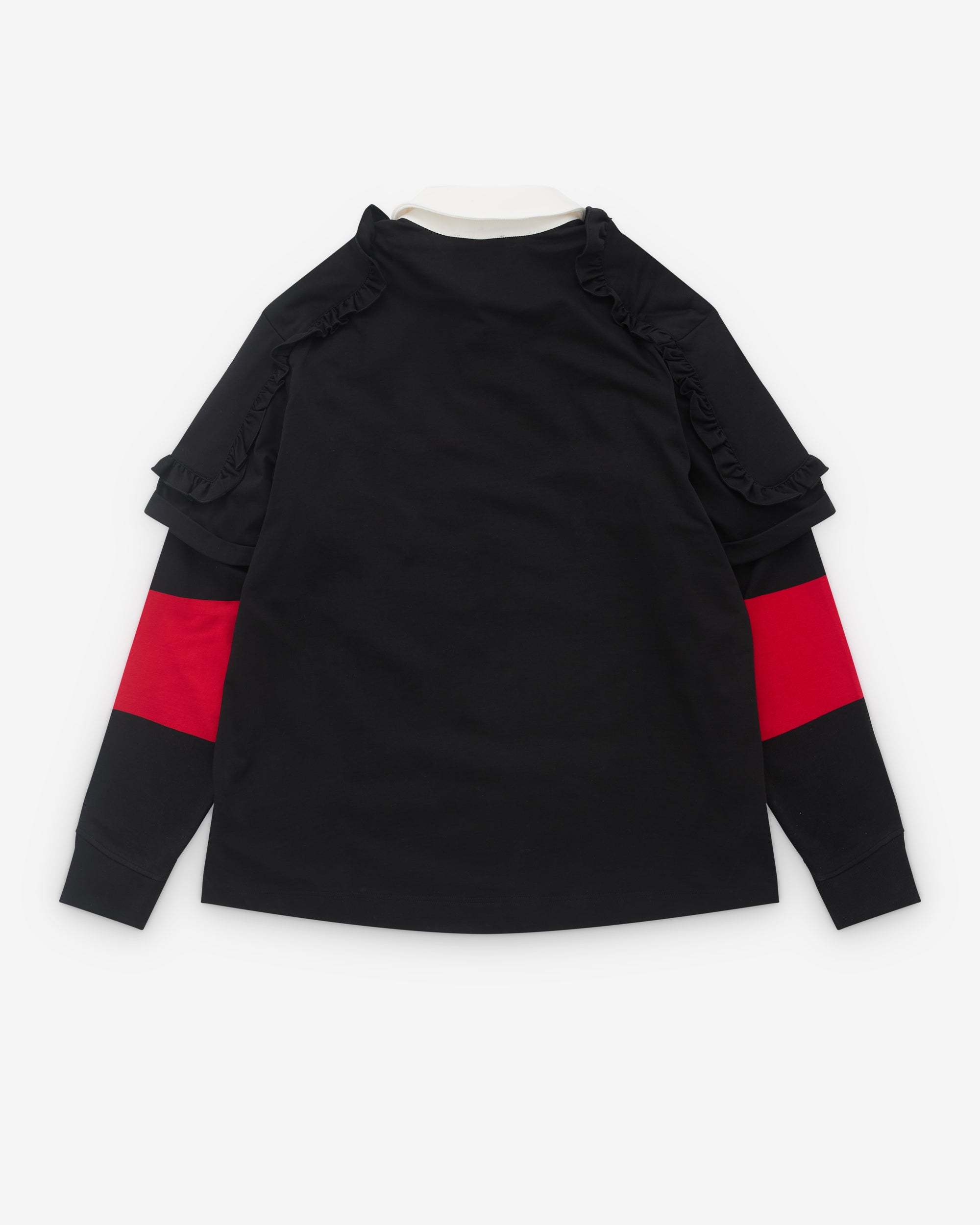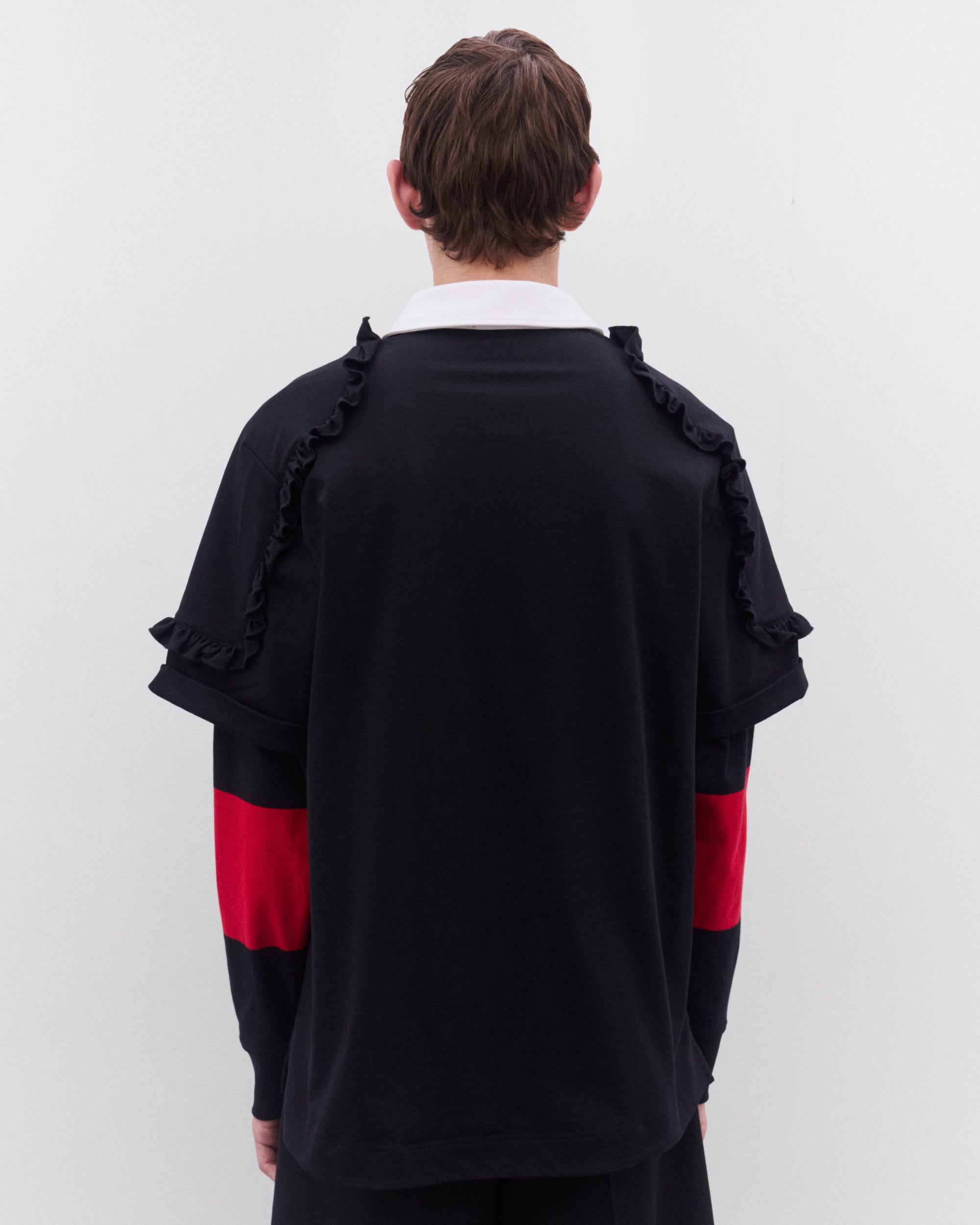 Layered constructionRuffle detail at shoulderContrasting collarOversized fit