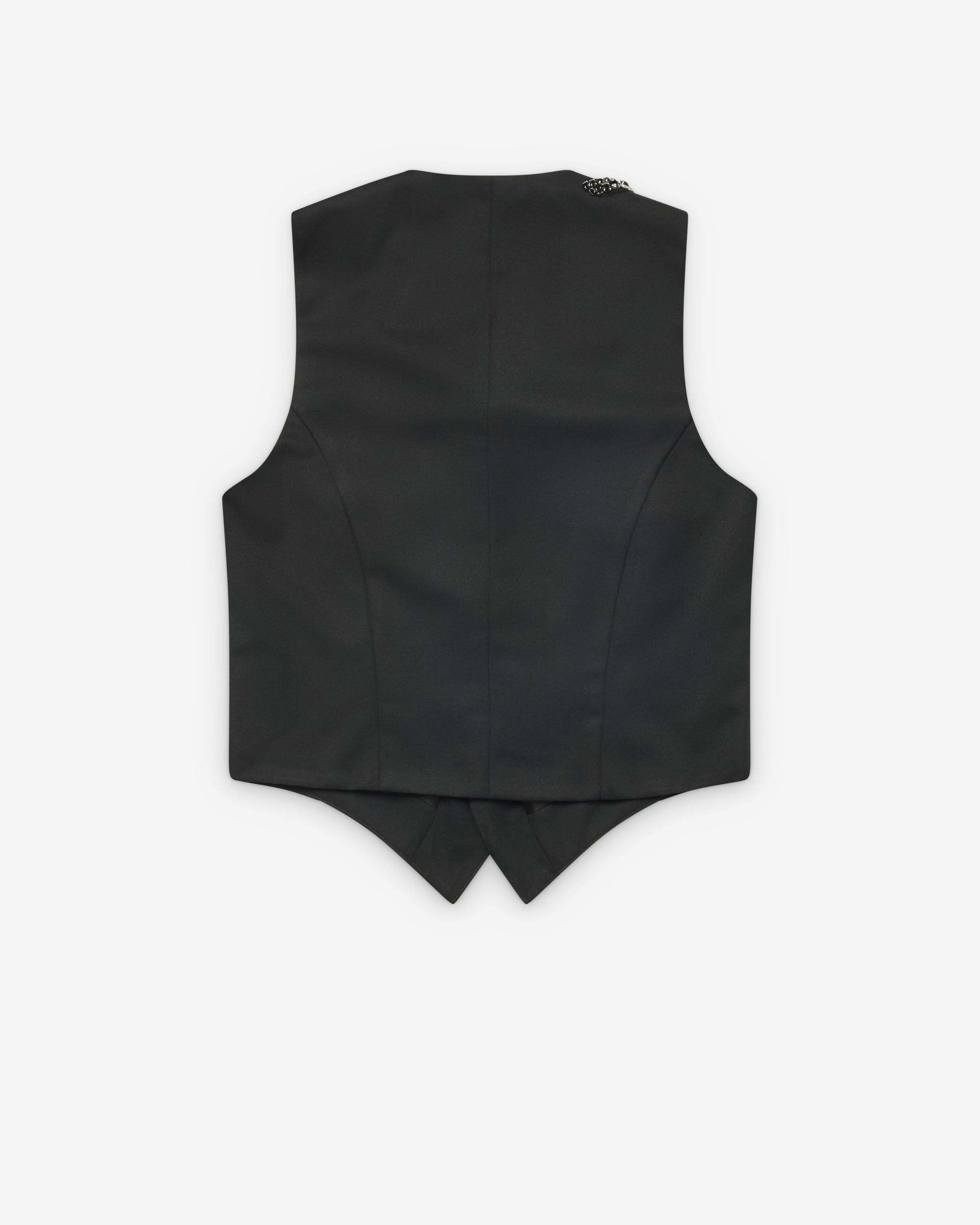Tailored cut waistcoatInternal satin liningBeaded embellishment Front button closureFront slip pockets