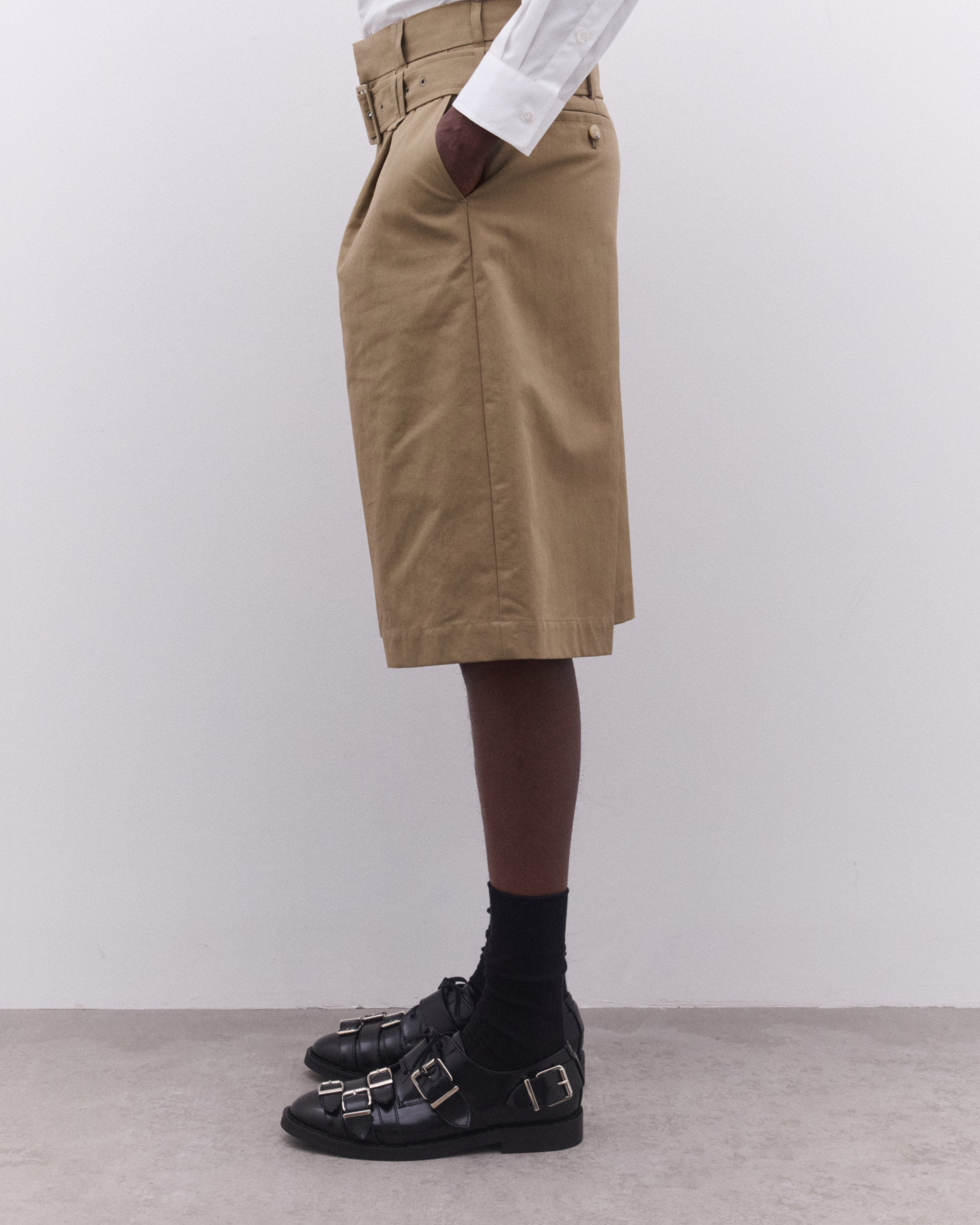 PleatedWide legDouble belt loopsRemovable beltSide seam pocketsRear button welt pockets