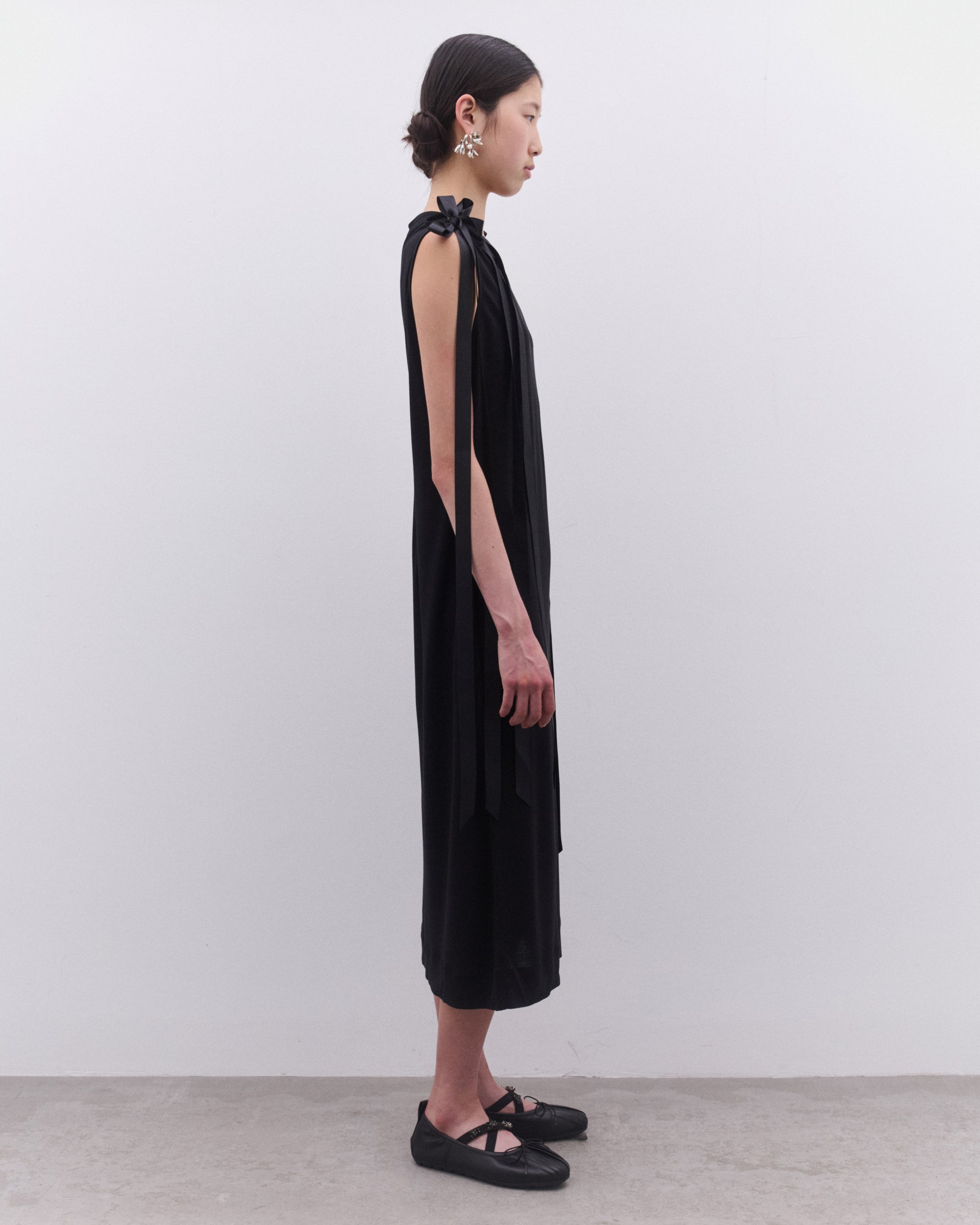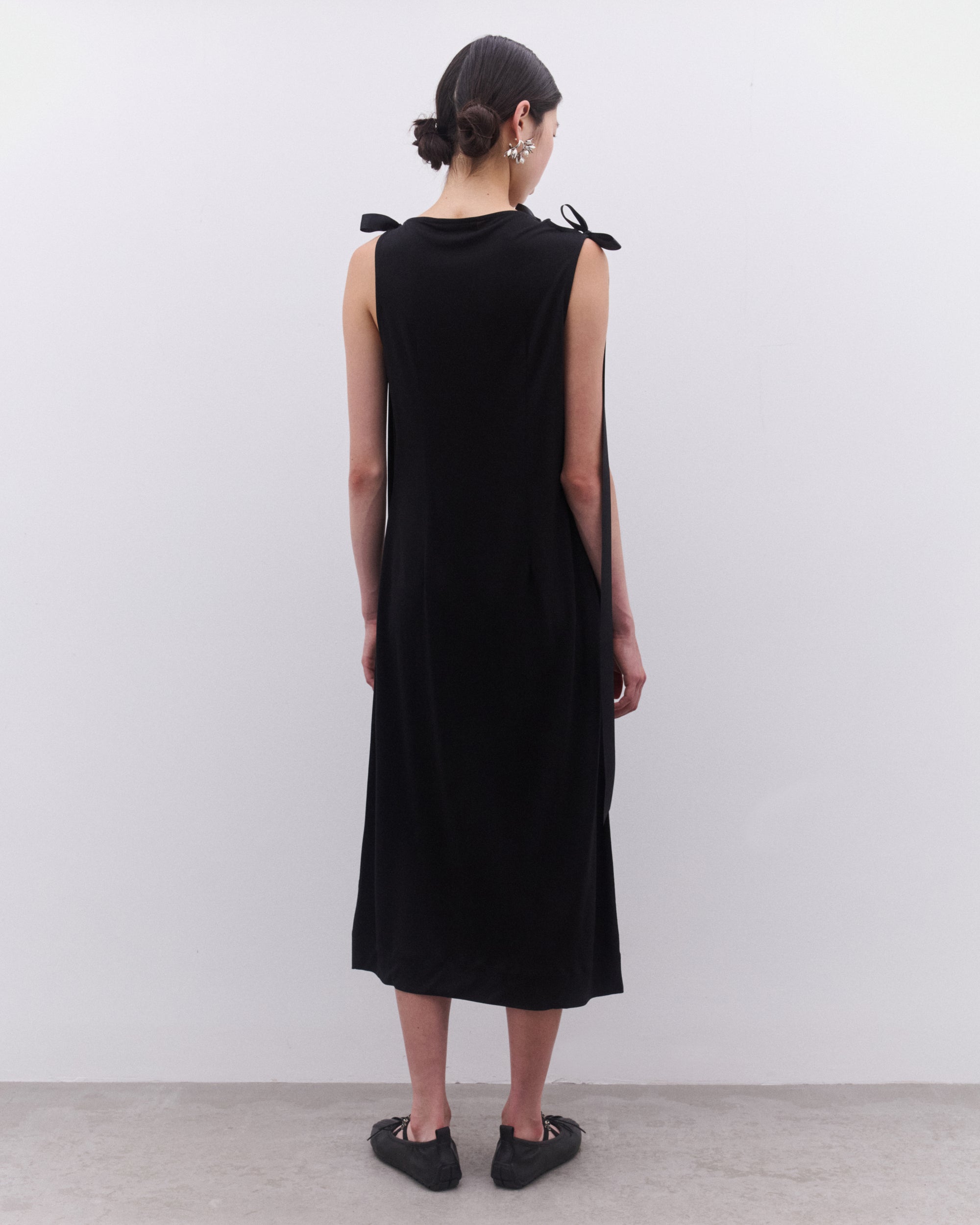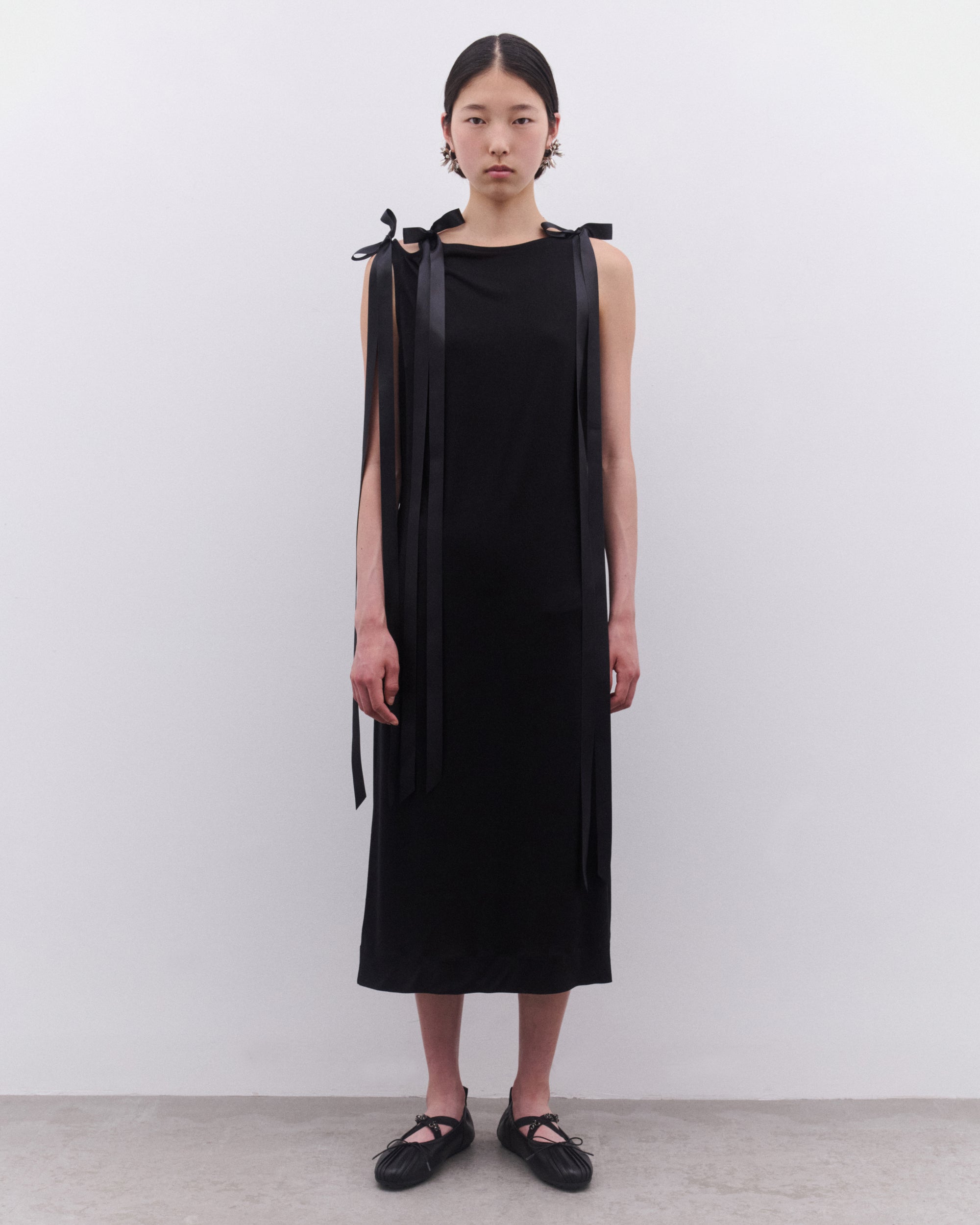 Bow tied ribbon strapsMid-lengthSlim fitSleevelessStraight hem