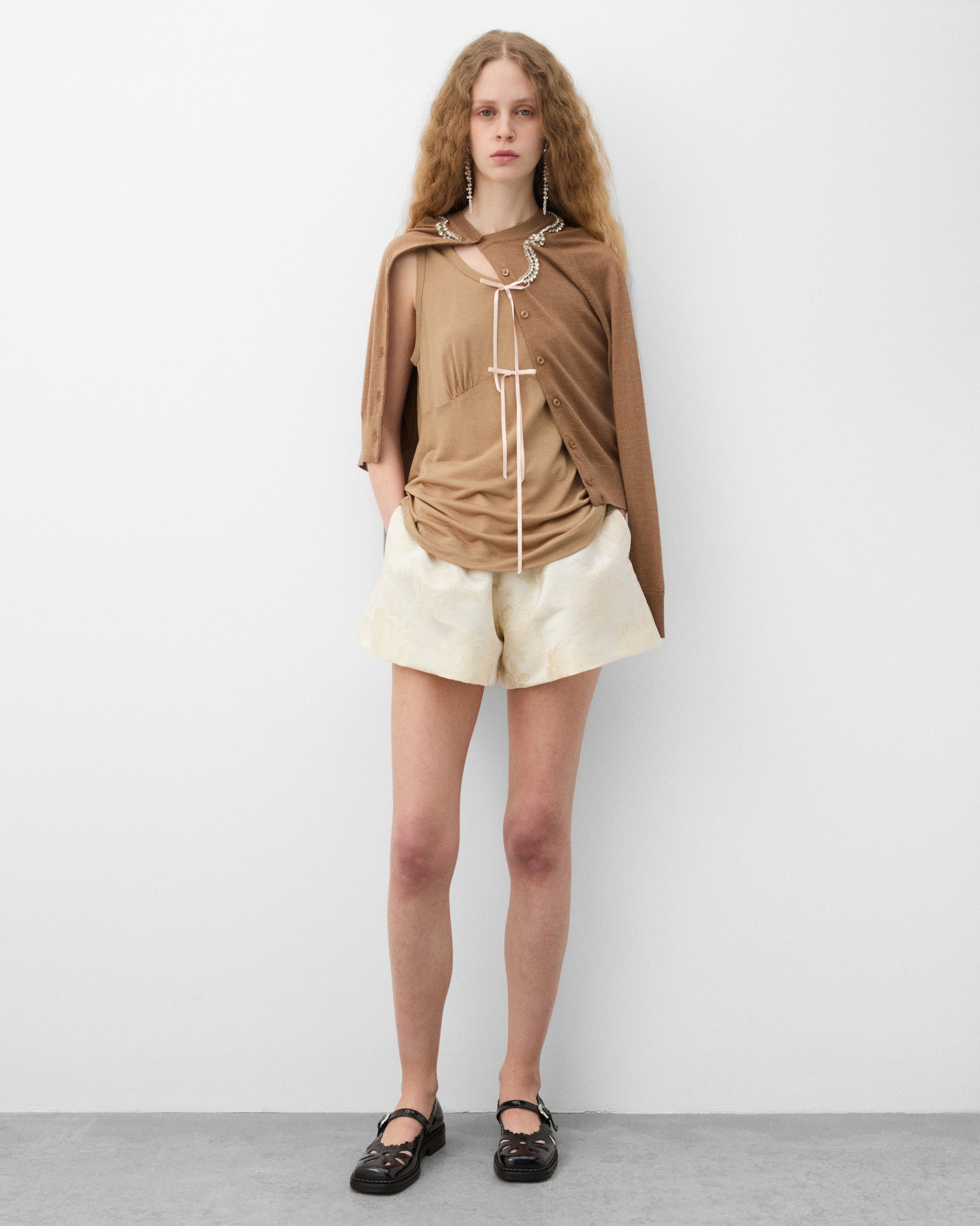 Scoop neckSleevelessGathered Empire lineApplique bow detailsMade in Portugal