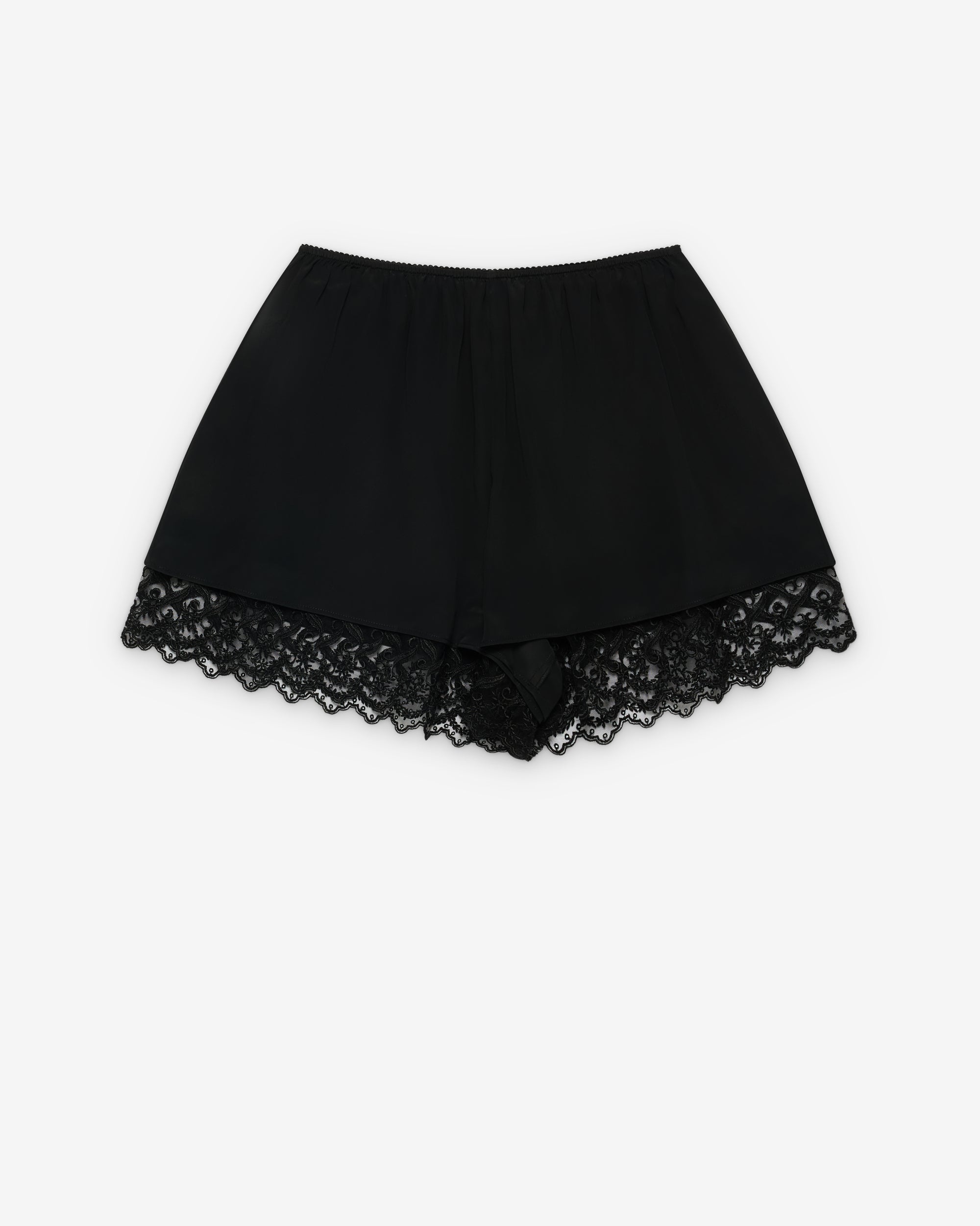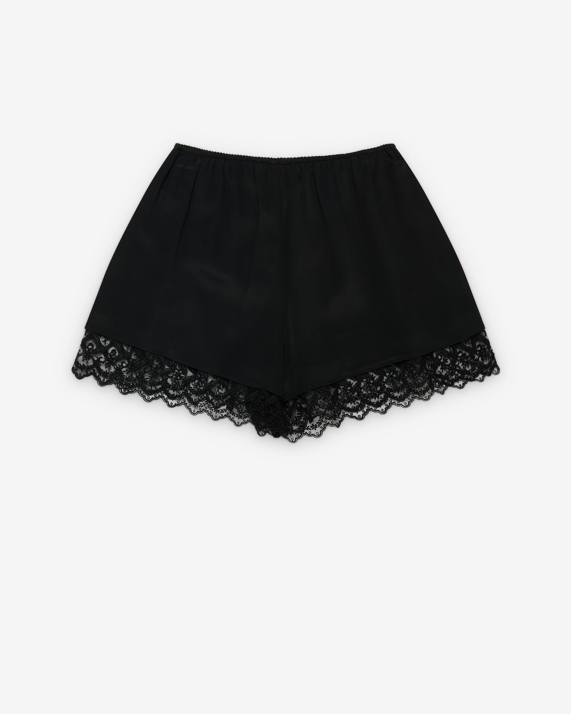 Lace trim waist bandThigh length shortLace details at hem