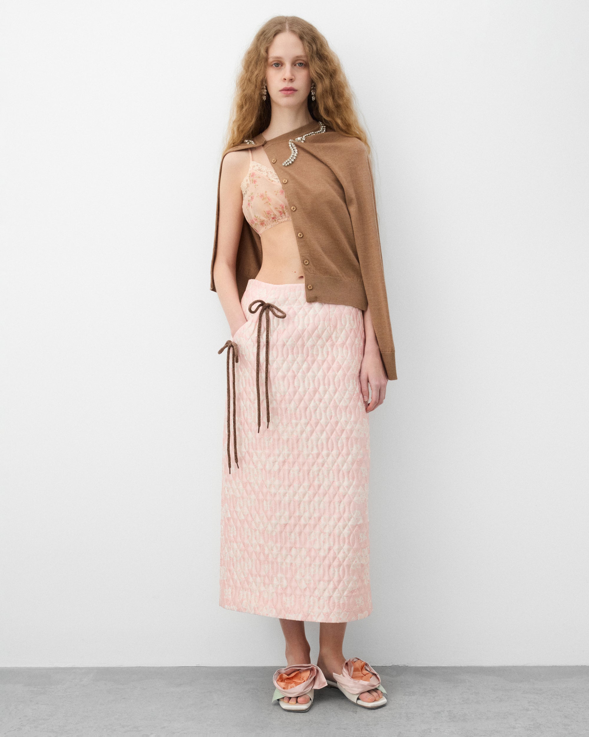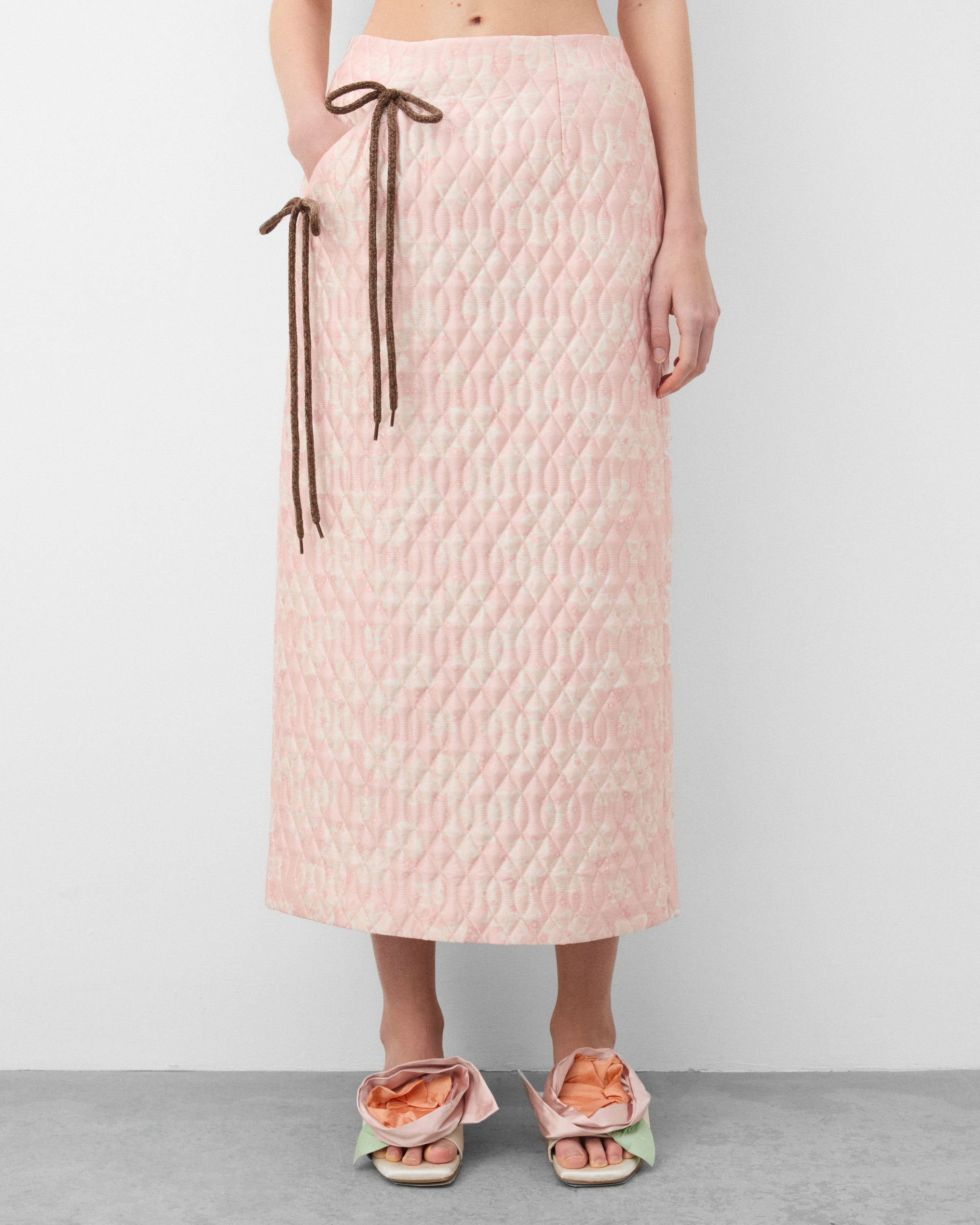 Dual bow detailPockets at side seamVent and zip closure at back hem