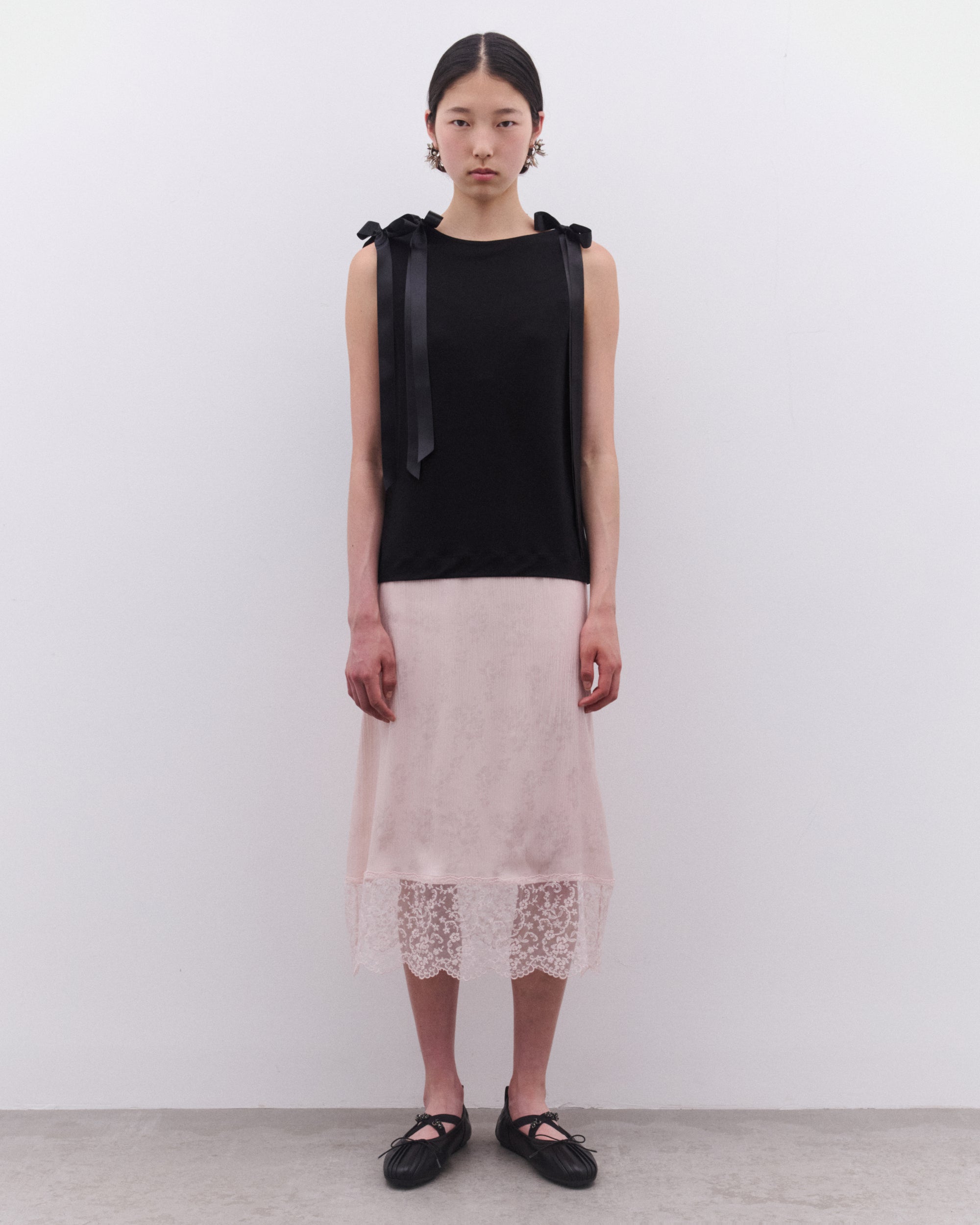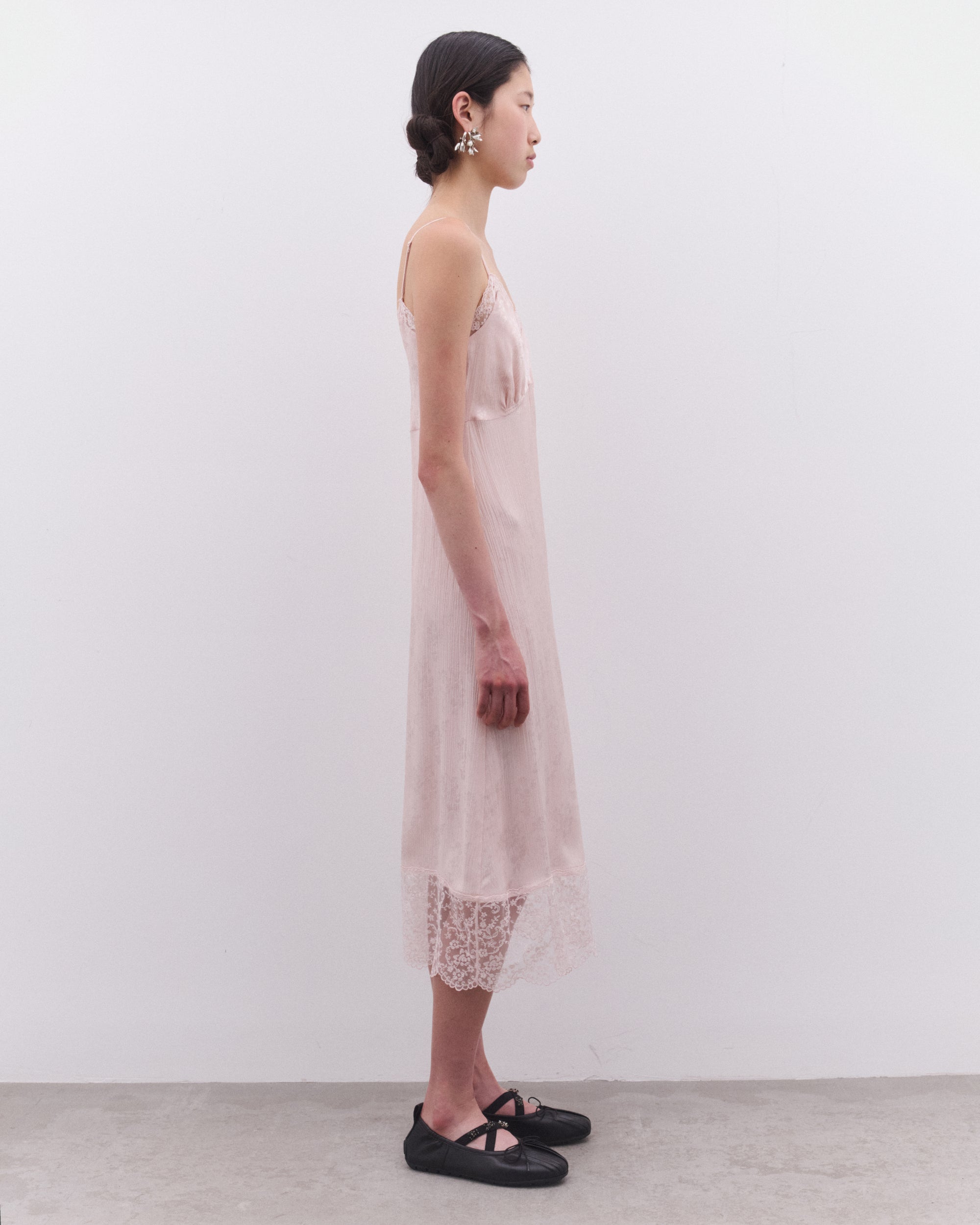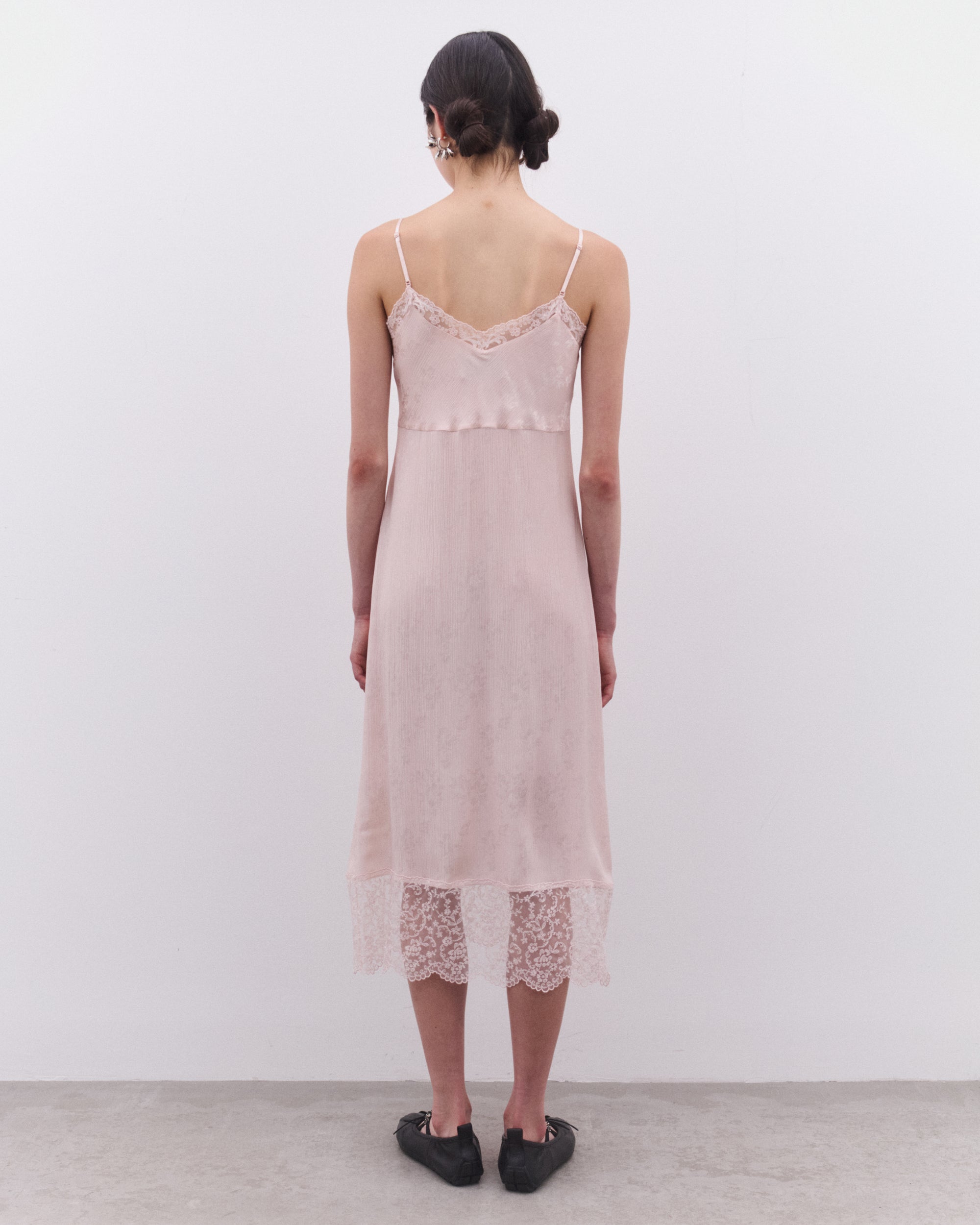 Slim strapsLace trim at neckline and hemEmpire waistline with gathering at bustA-line silhouetteMid-length