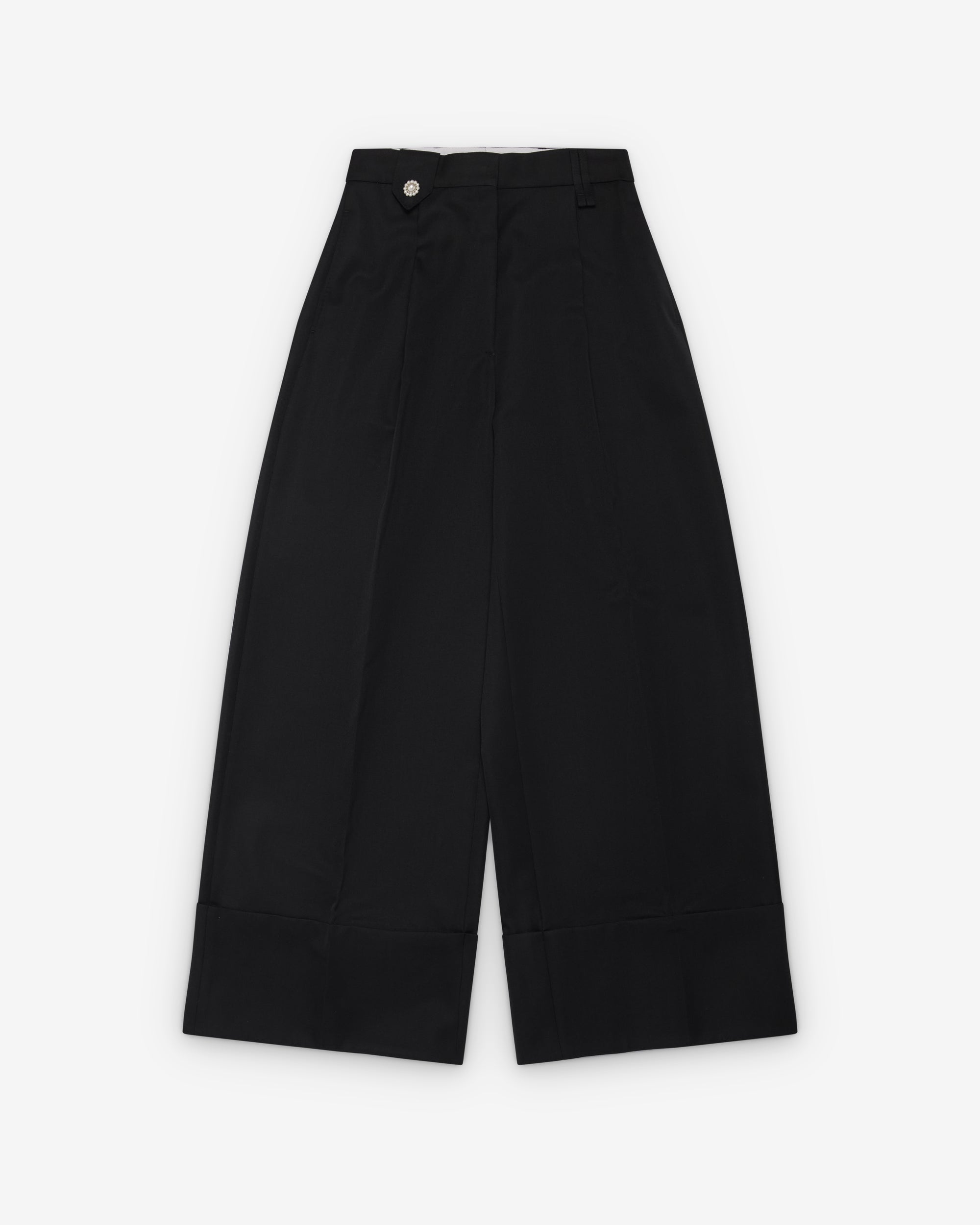 Faux pearl beading at frontPleats at frontCuffed turn up hemHigh-waist fit45% Wool, 55% PolyesterMade in Portugal
