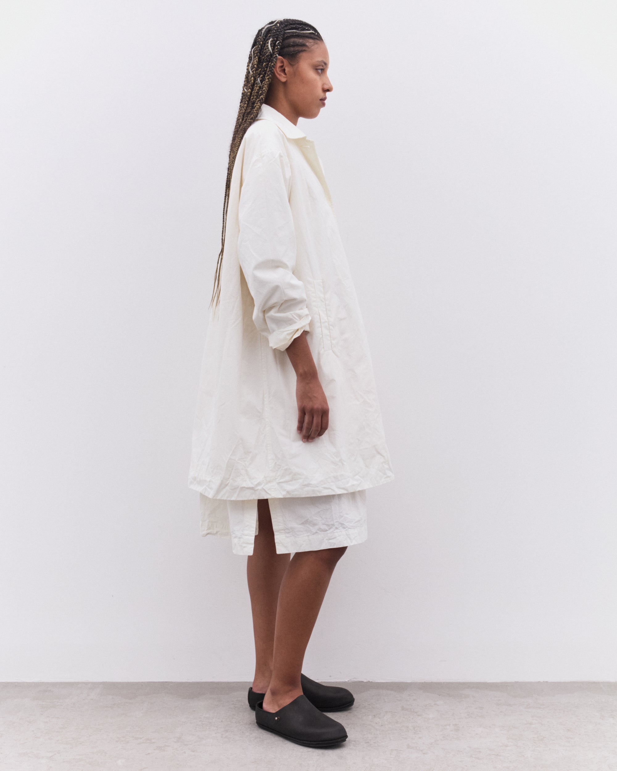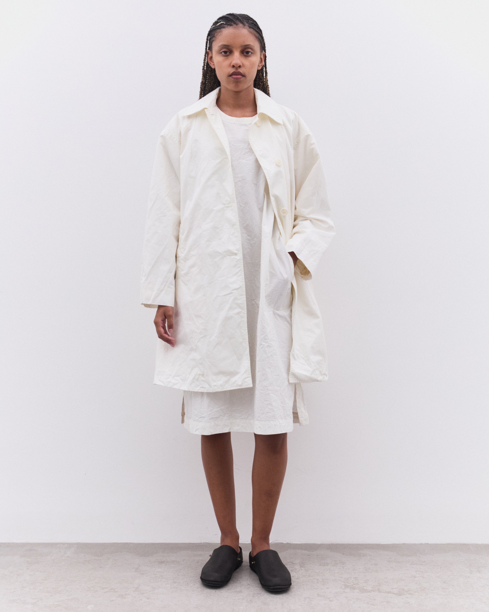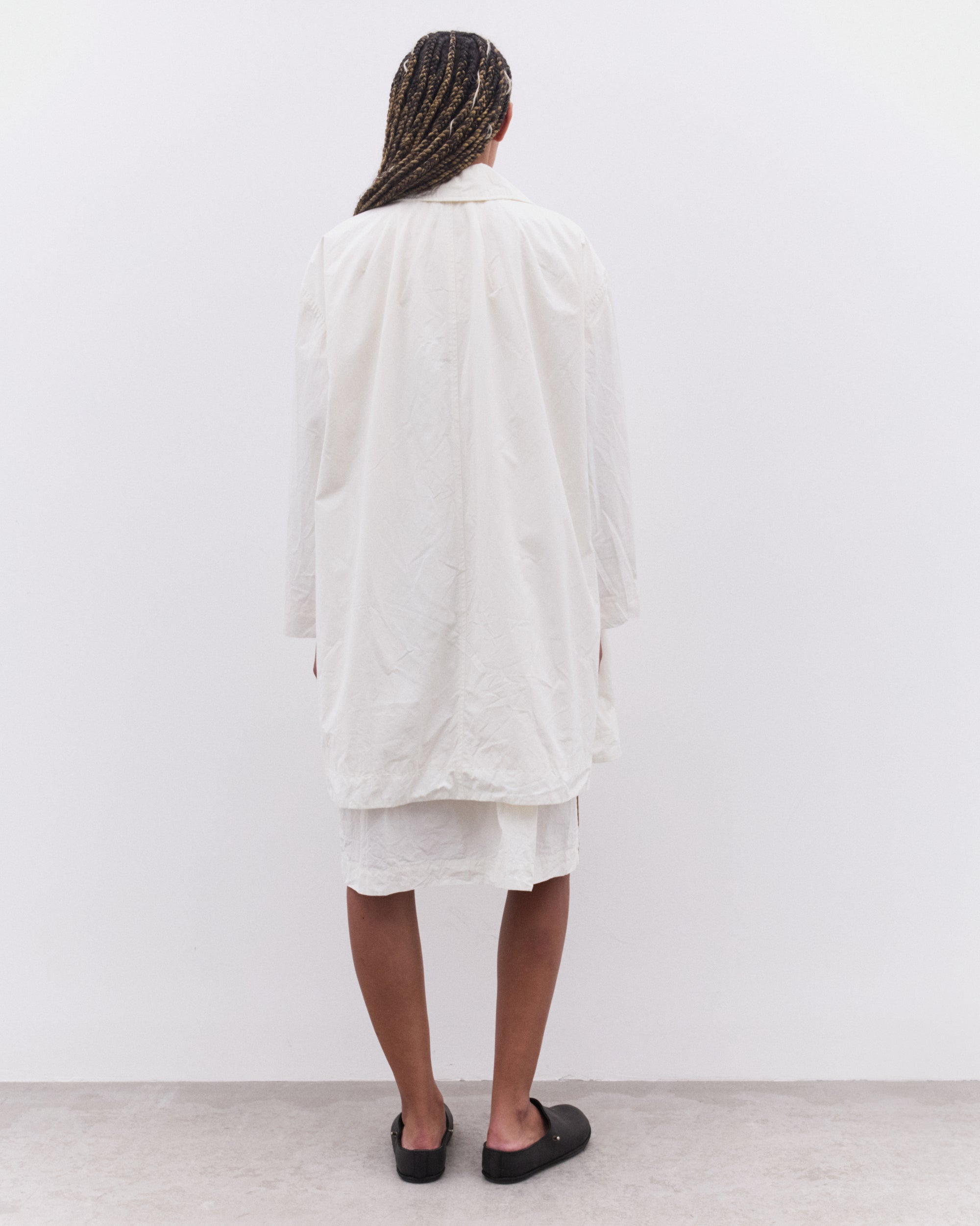 Point collarThree button fasteningRaglan sleevesFront welt pocketsA-line silhouette