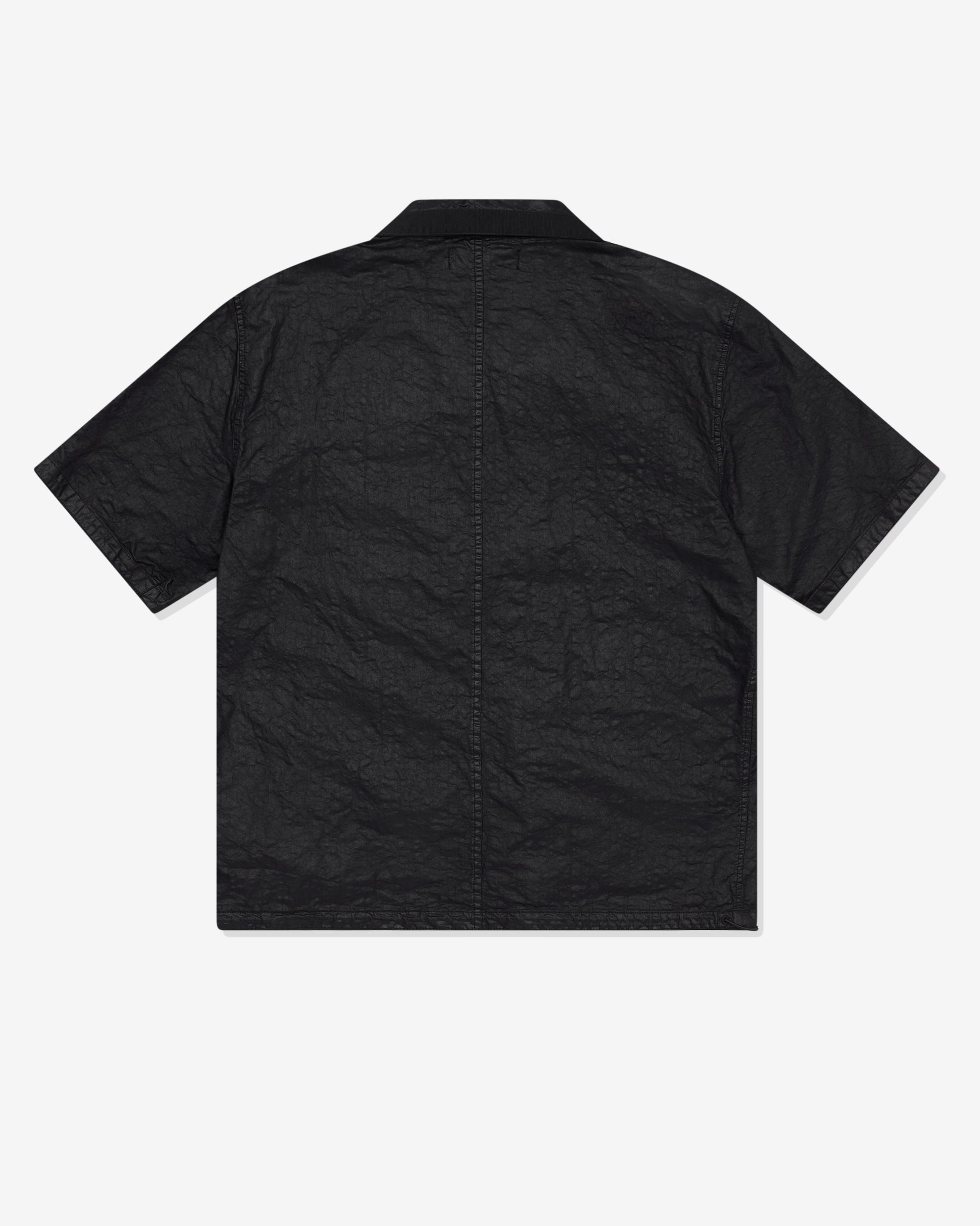 Short sleevesGarment dyed nylon fabricConcealed snap button fasteningSingle chest pocketStone Island badge at left chestFoldable funnel neck