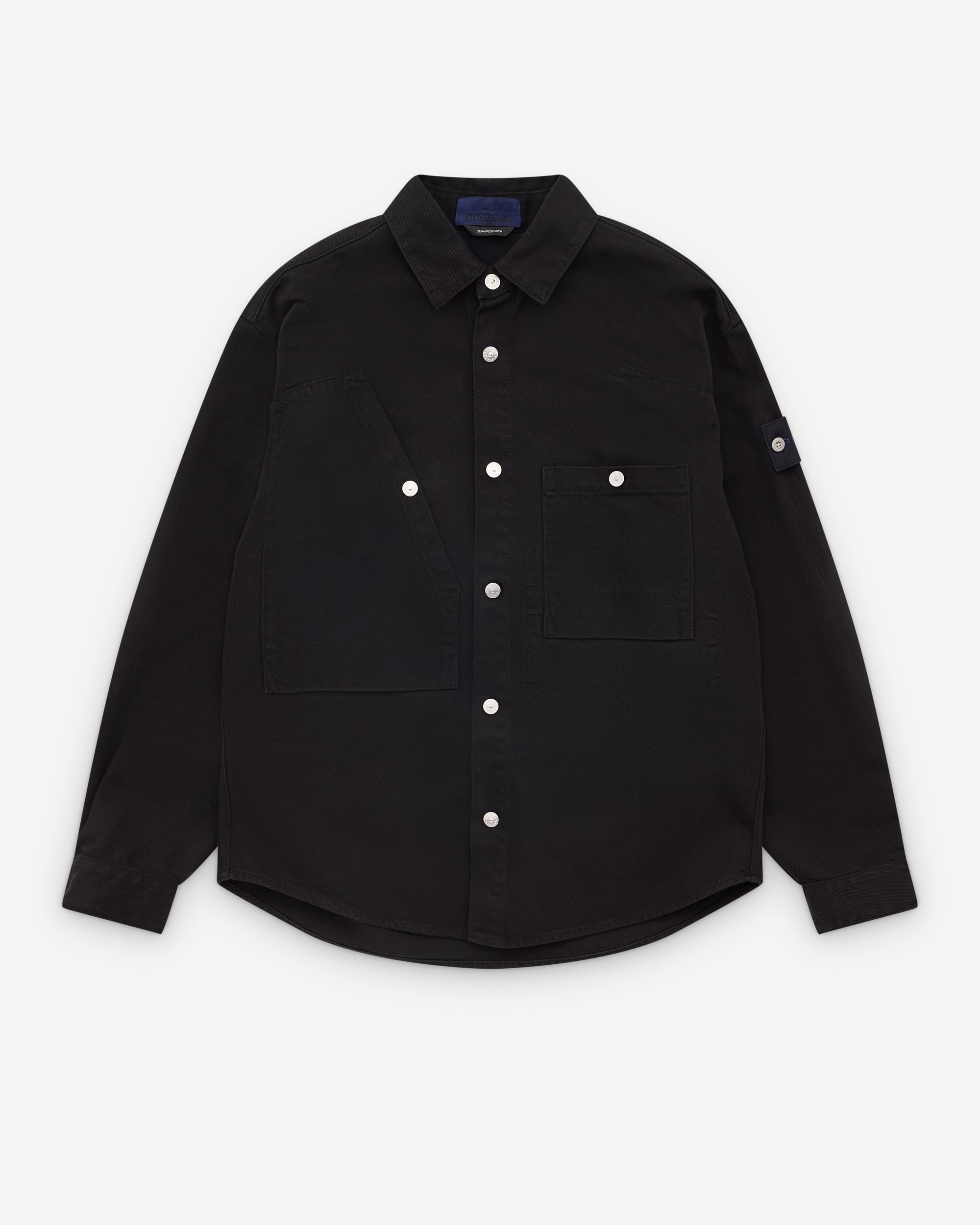 Classic collarFront press stud closureGarment dyed denim fabricDual chest pocketDenim research Stone Island badge at armCurved hemPress stud close cuffs