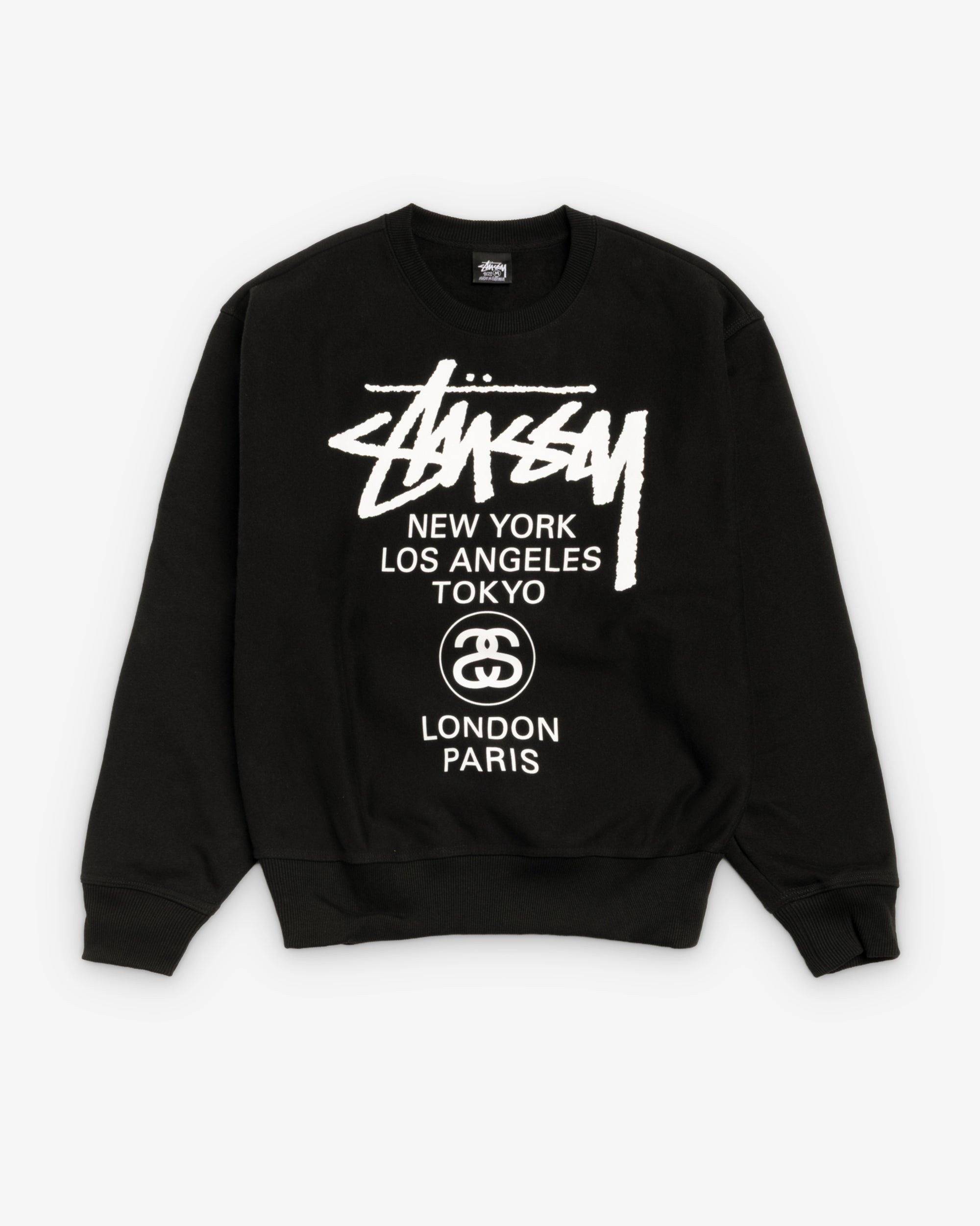 Heavyweight 495gsm cotton blendRibbed necklineScreen printed artworkSlim rib at cuffs and hemUnisex66% Cotton, 34% PolyesterImported