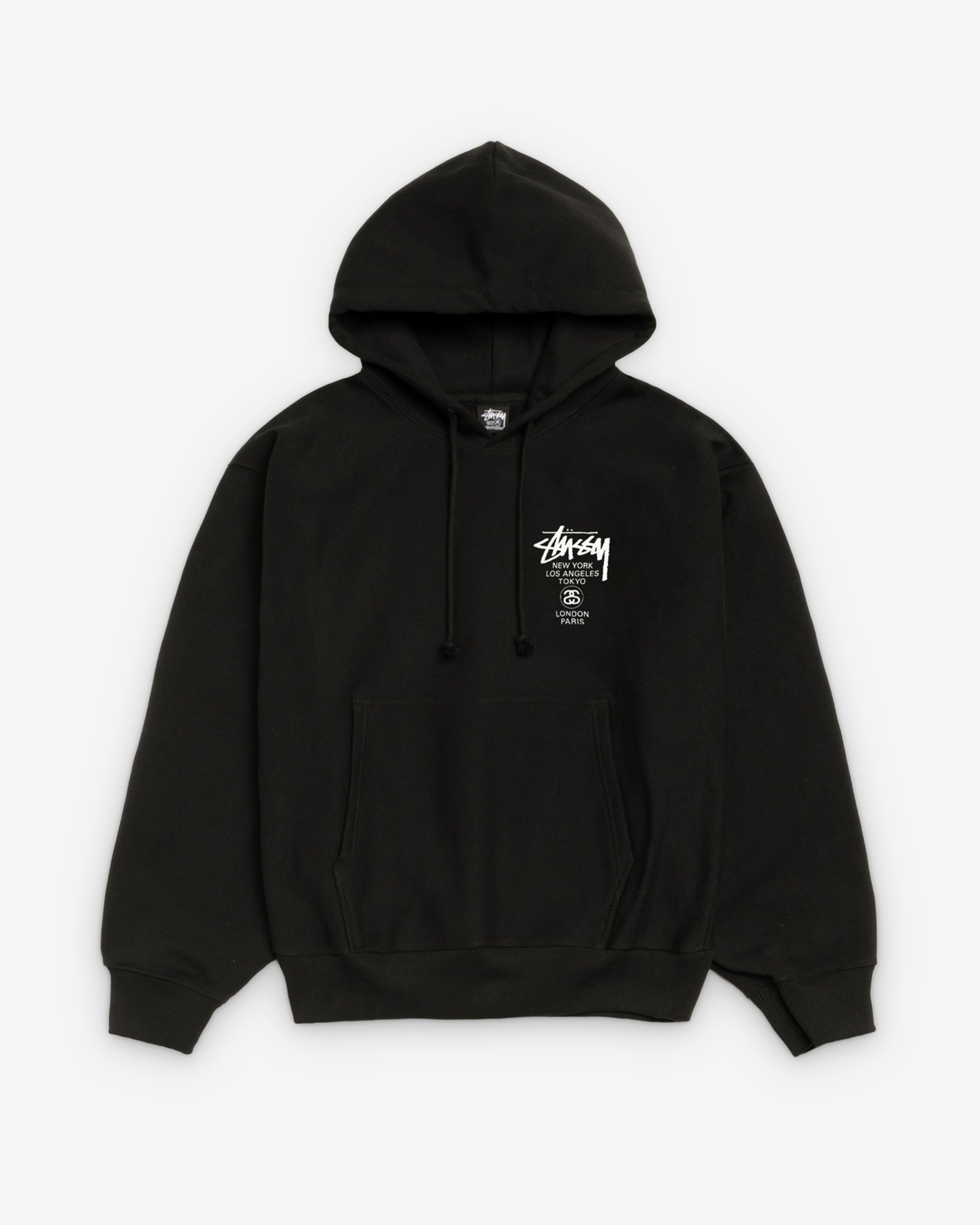 Relaxed fit hooded sweatshirtHeavyweight 430gsm cotton blend fleeceRound drawcord in hoodScreen printed graphics throughoutRibbed cuffs and hemKangaroo pocketUnisex75% Cotton, 25% PolyesterImported