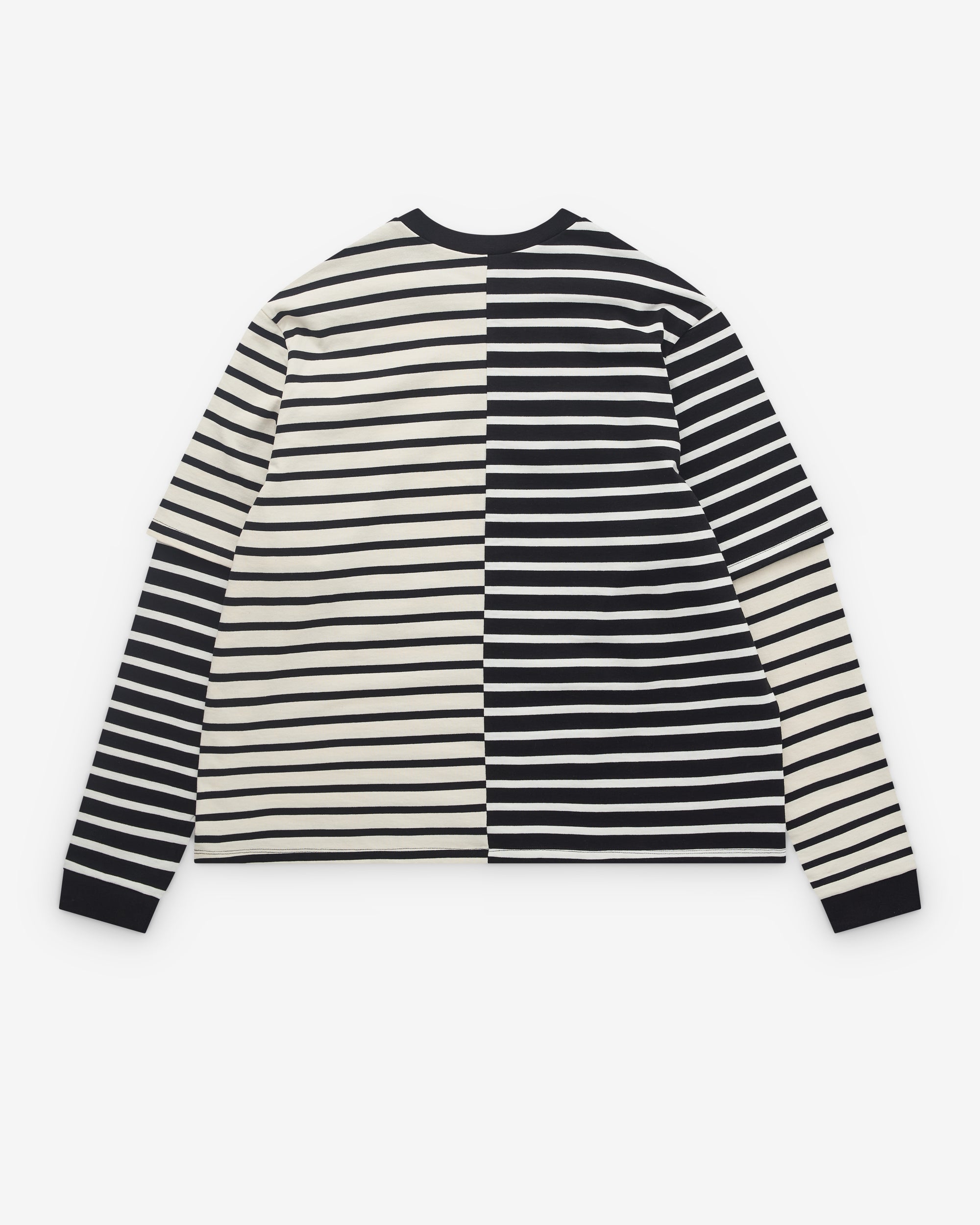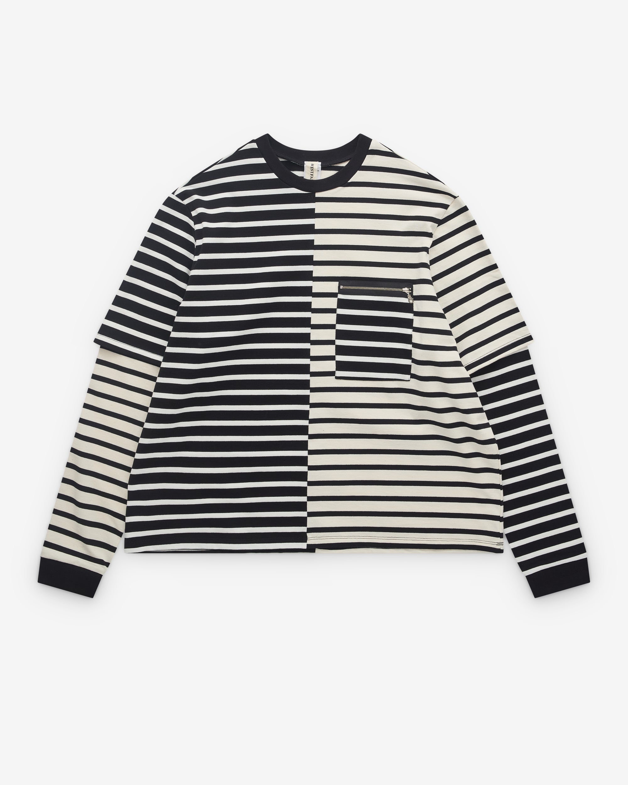 Contrast ribbed crew necklineLong sleevesZip chest pocketAttached multi stripe panels
