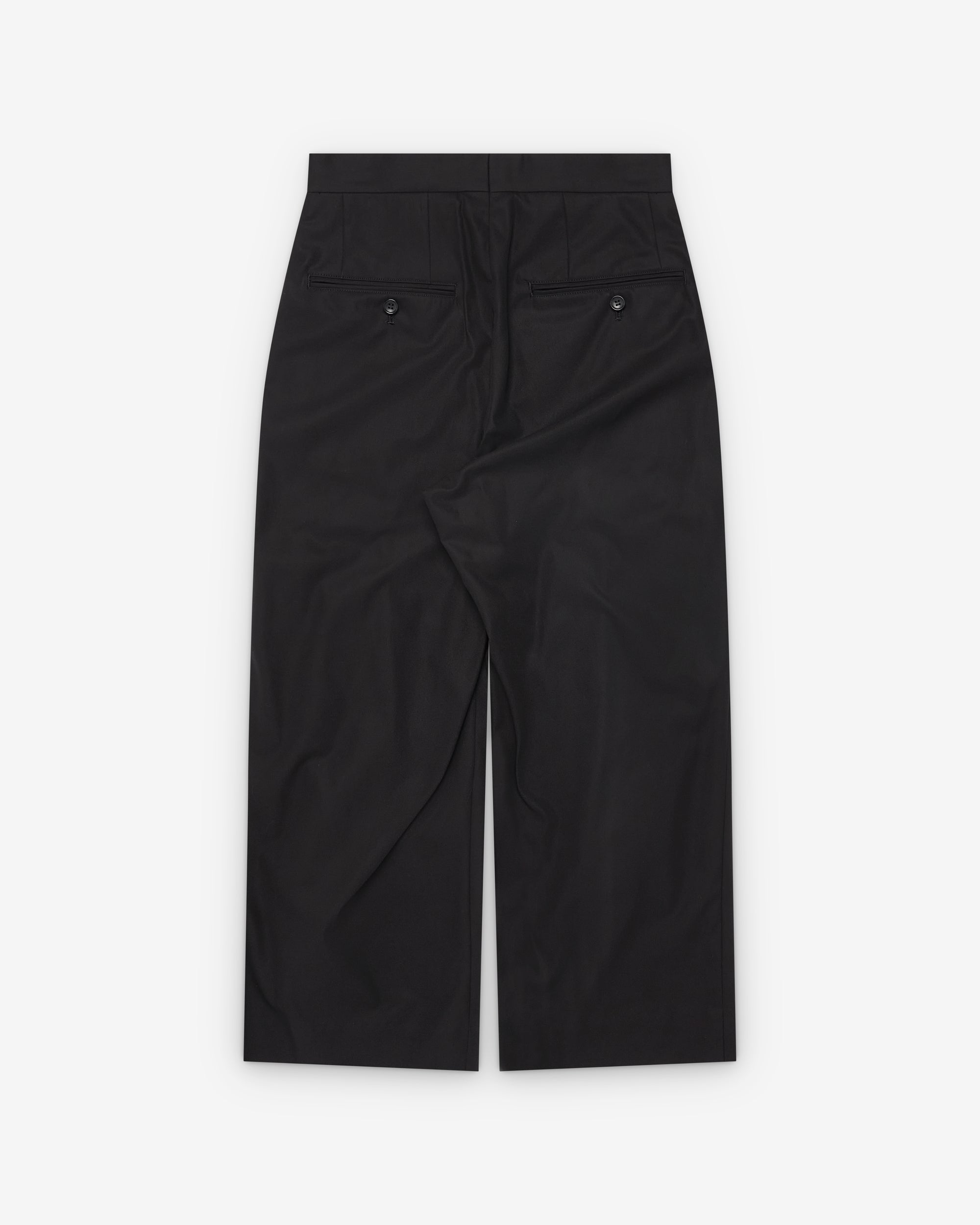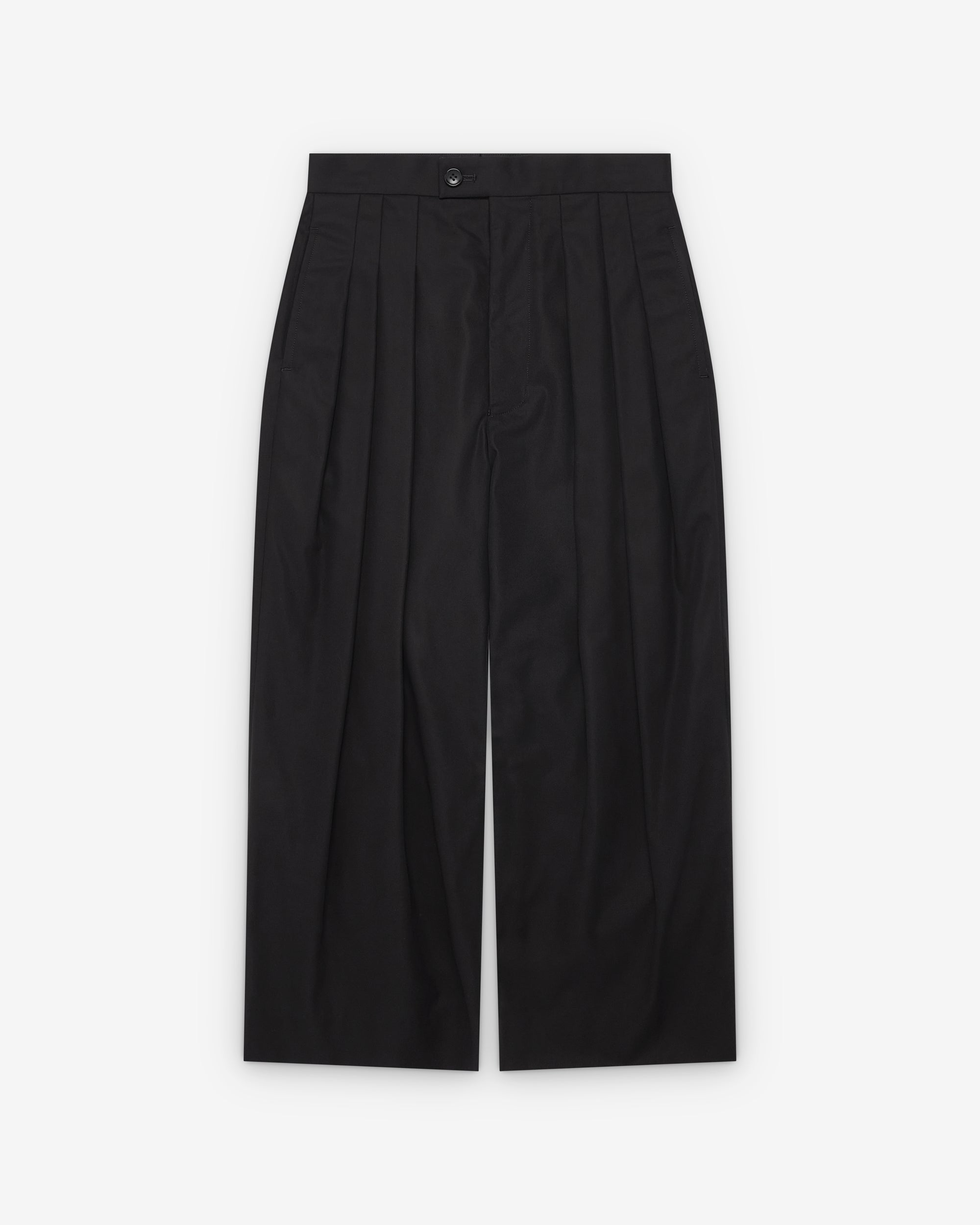 Triple pleatButton closureFour pocket designTwo button close pockets on backWide leg fit100% CottonMade in Japan