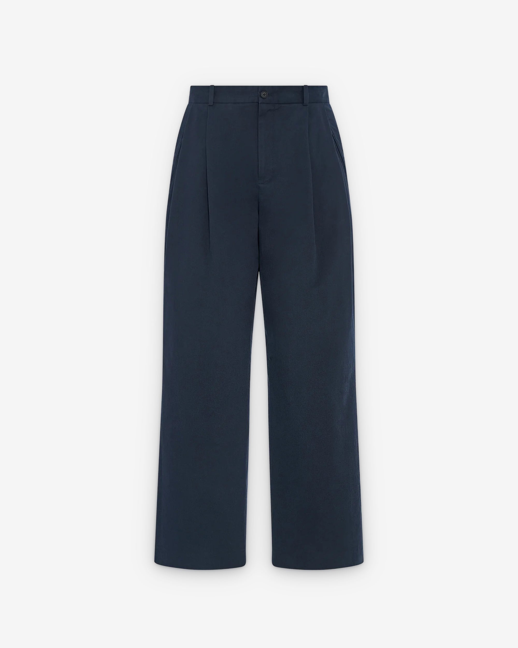 Mid-rise tailored trouser in refined cotton and cashmere gabardine with relaxed straight leg, pressed front and back pleats, and slanted side pockets.95% Cotton, 5% CashmereMade in Italy