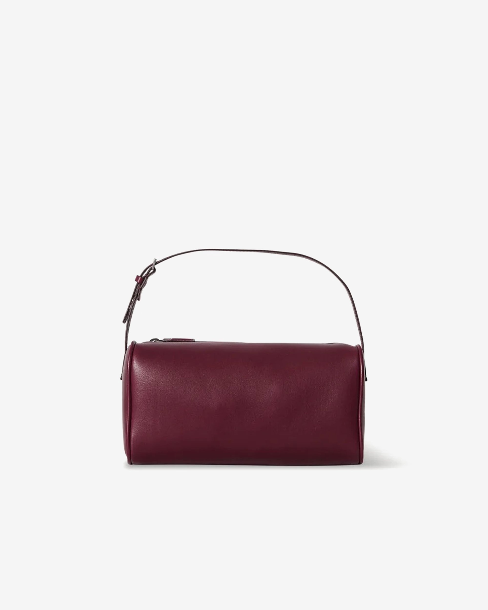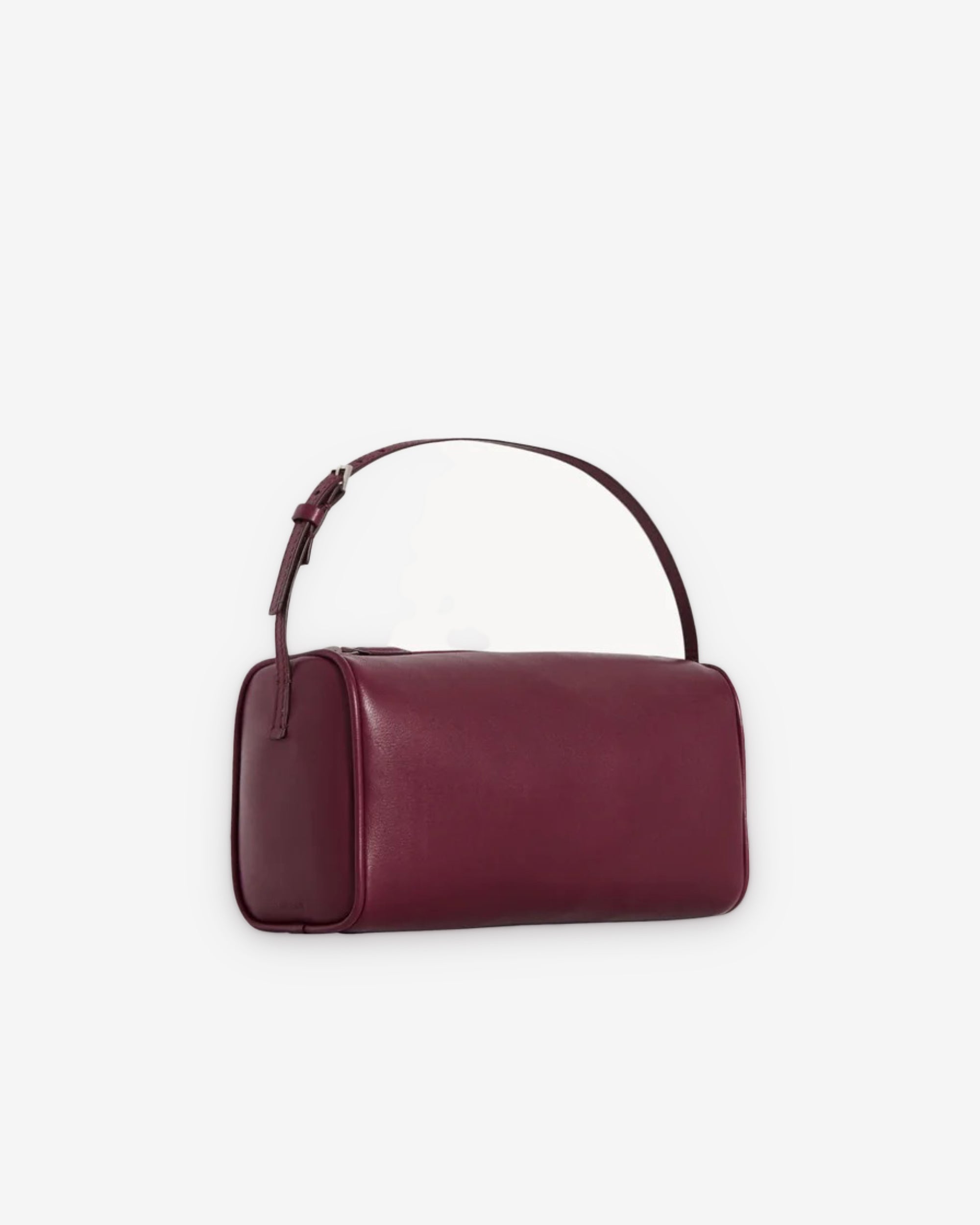 Top handle bag in smooth nappa leather with softly rounded edges, leather piping, and adjustable slim leather strap.