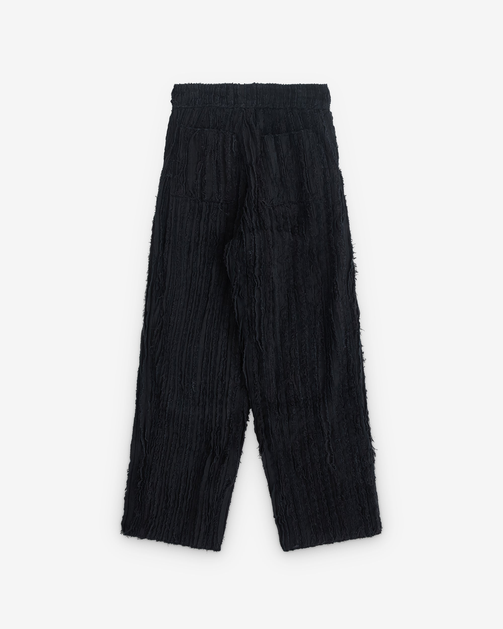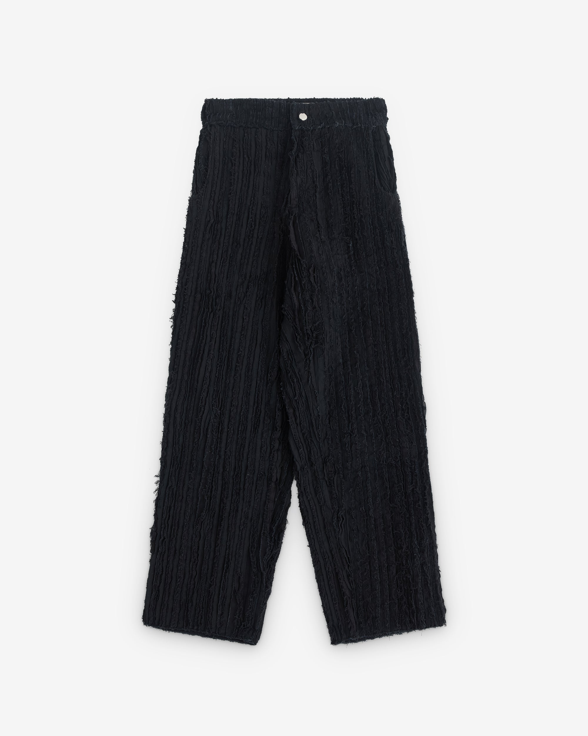Side seam pocketsFrayed fabric all over detailsButton waistLoose fitTwo back pockets