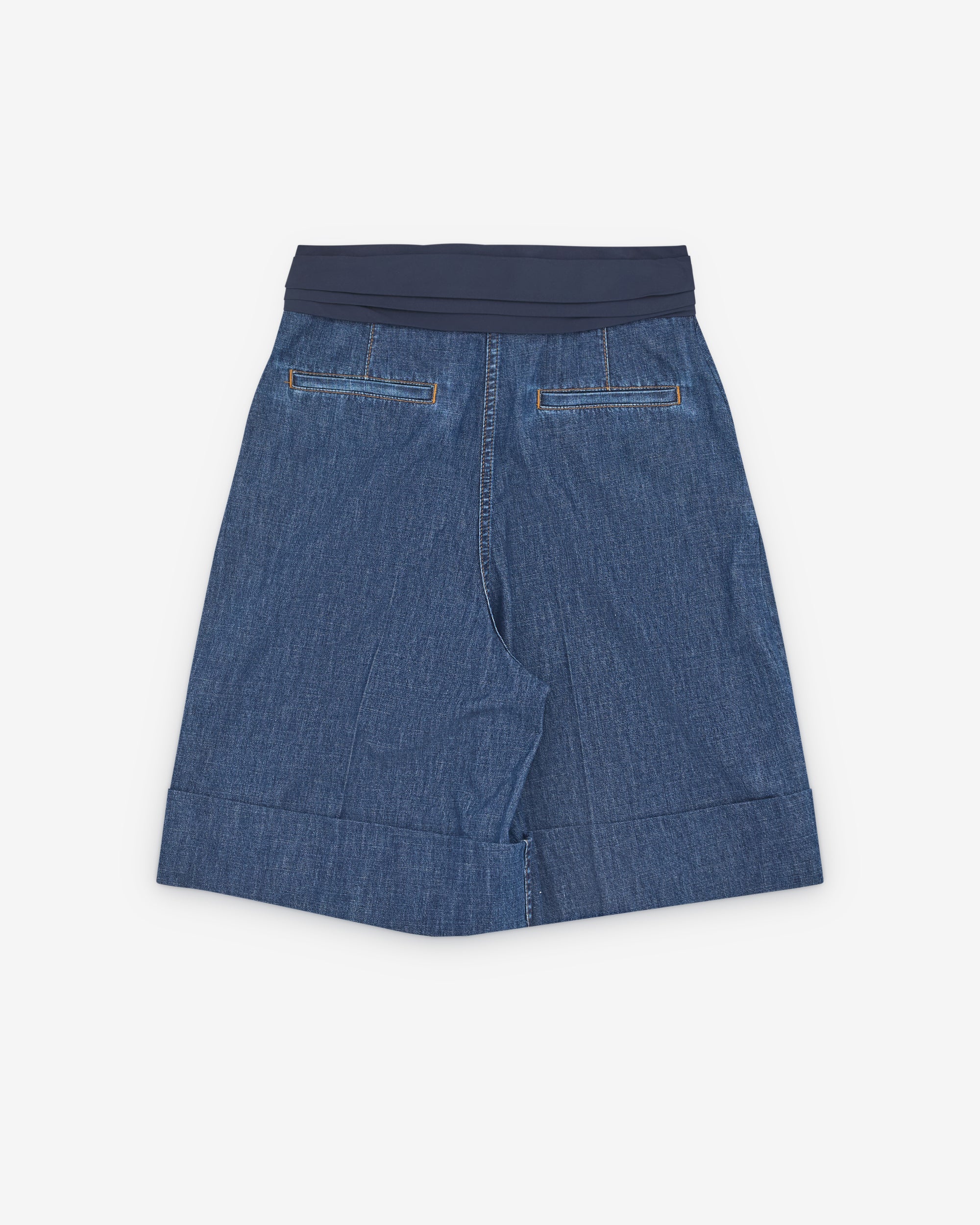 Bow detail at waistAbove knee lengthLoose fitPre cuffed hemsSide seam pockets