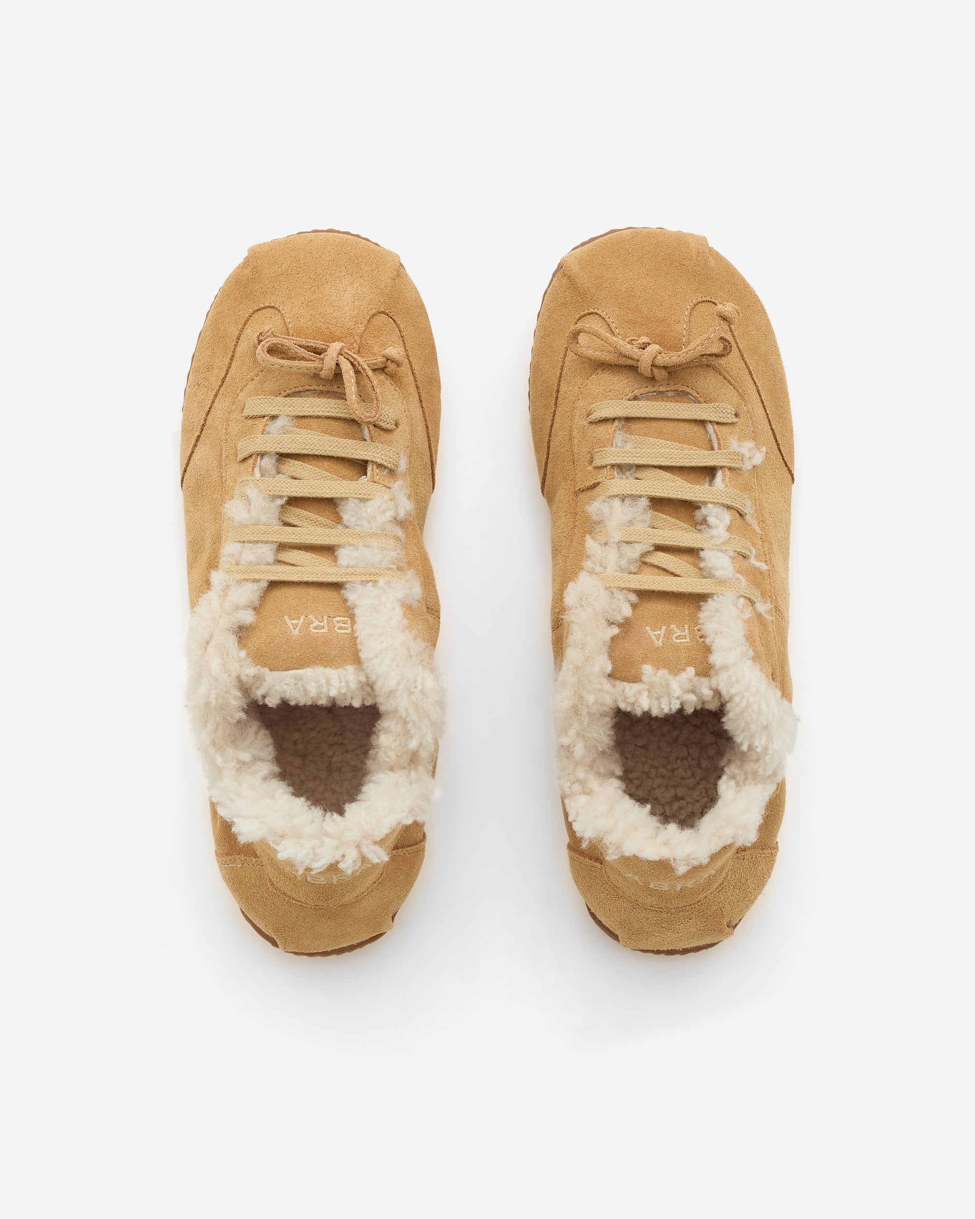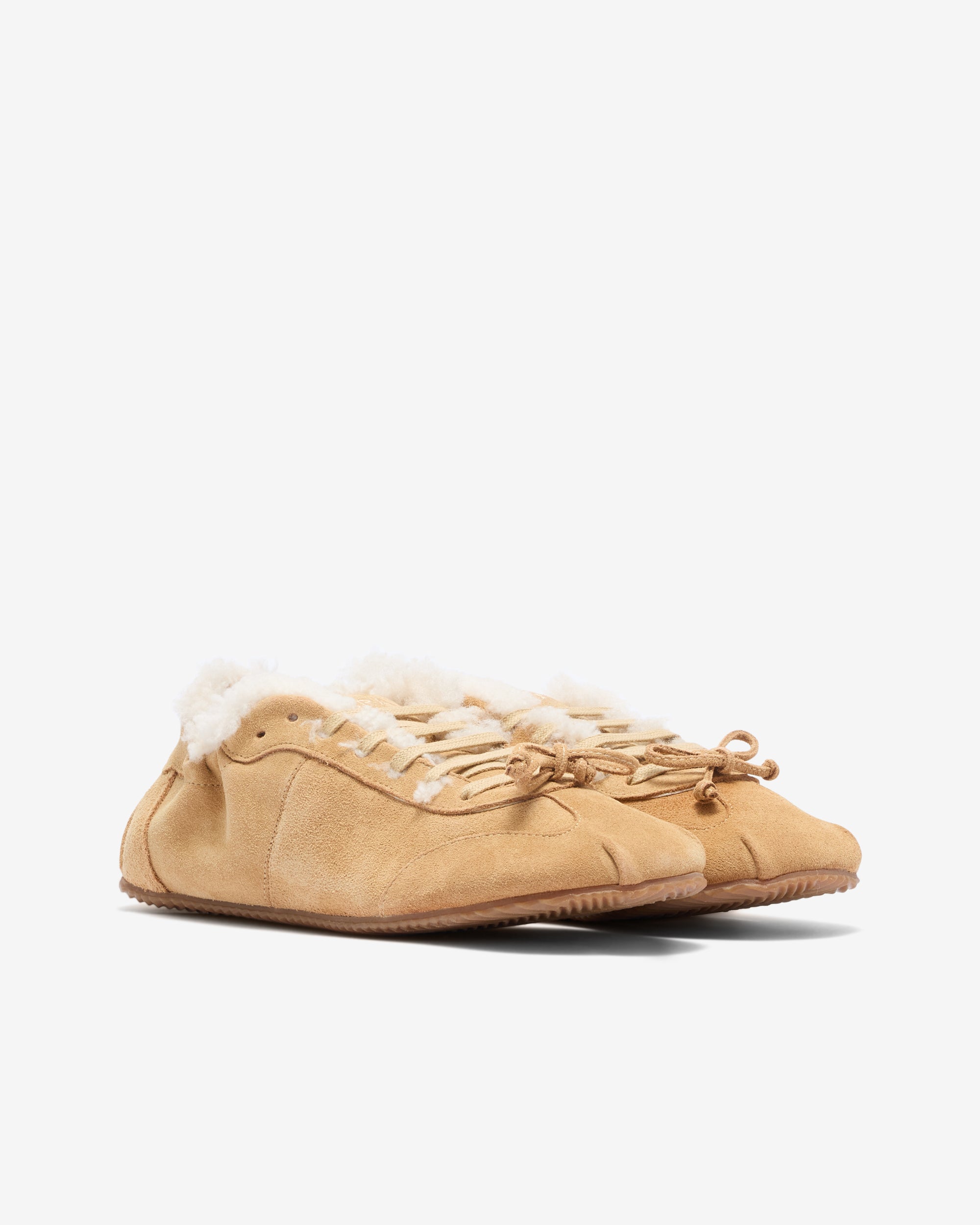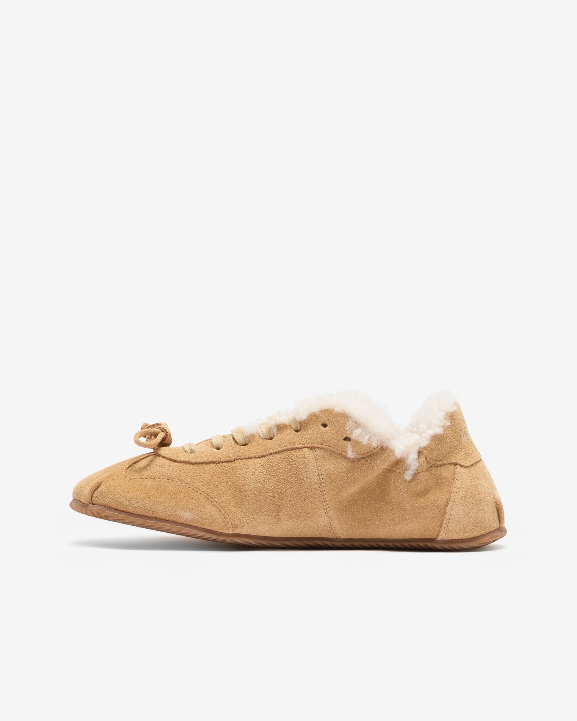 Lace up Branding at heelSuede upperRounded toeShearling liningBow detail at frontFlat soleLeather upper