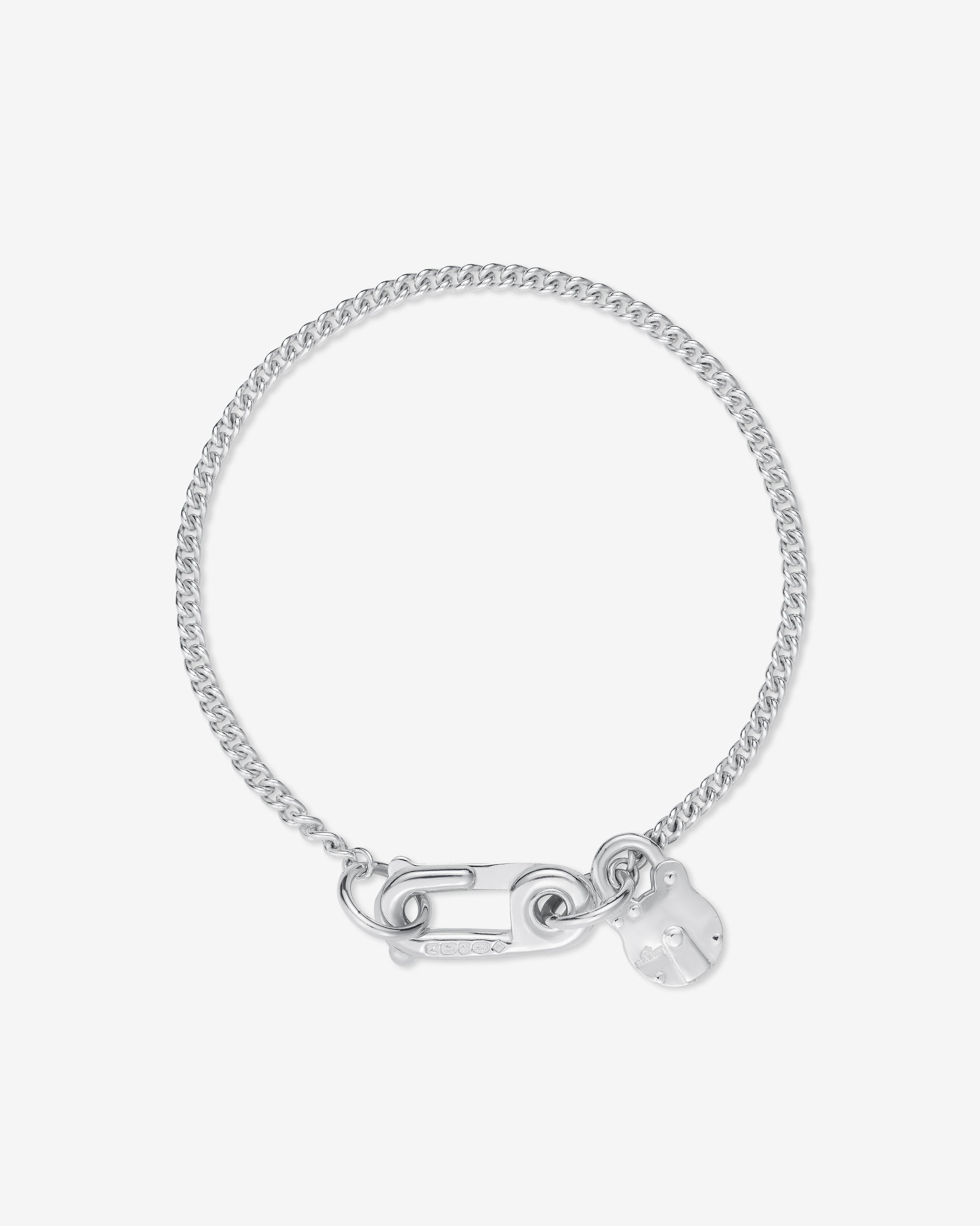 Light bracelet chain with medium hook clasp and padlock charm, logo and hallmark on clasp