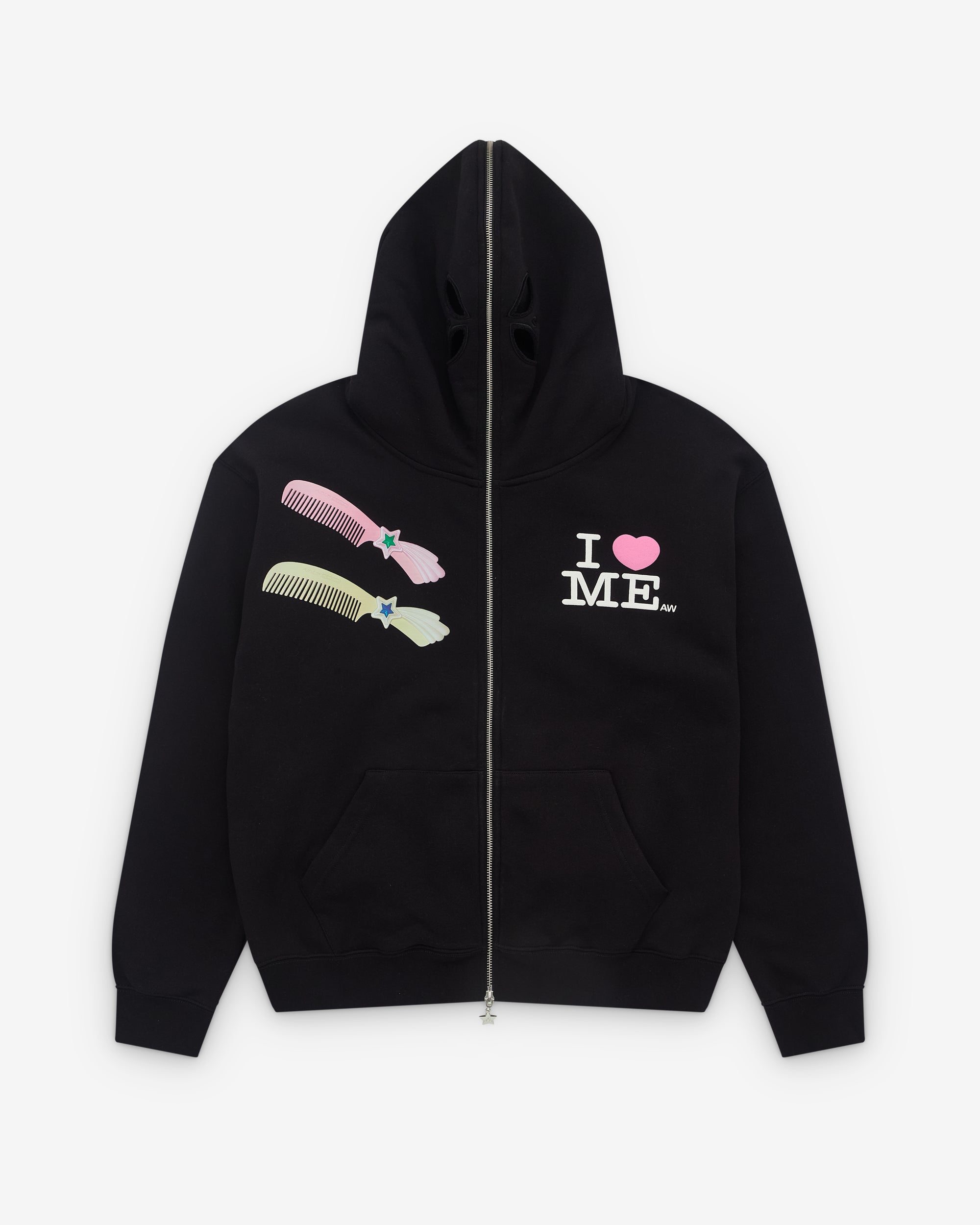 Zip through hoodPrinted front and rear graphicsRib knit trimsSplit kangaroo pocket