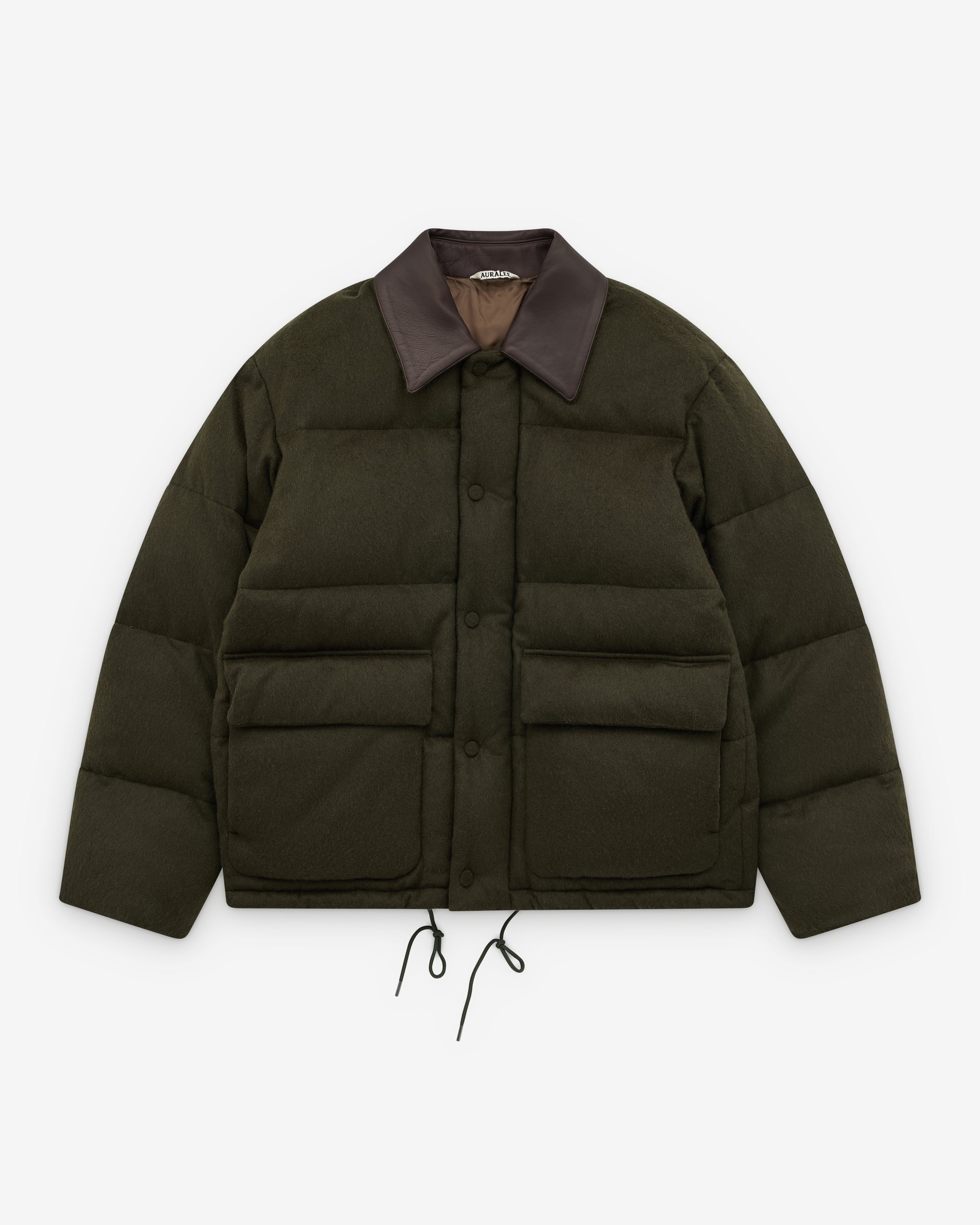 Contrast point collarZip and press stud fasteningDrawcord at hemFlap pocketsQuilted