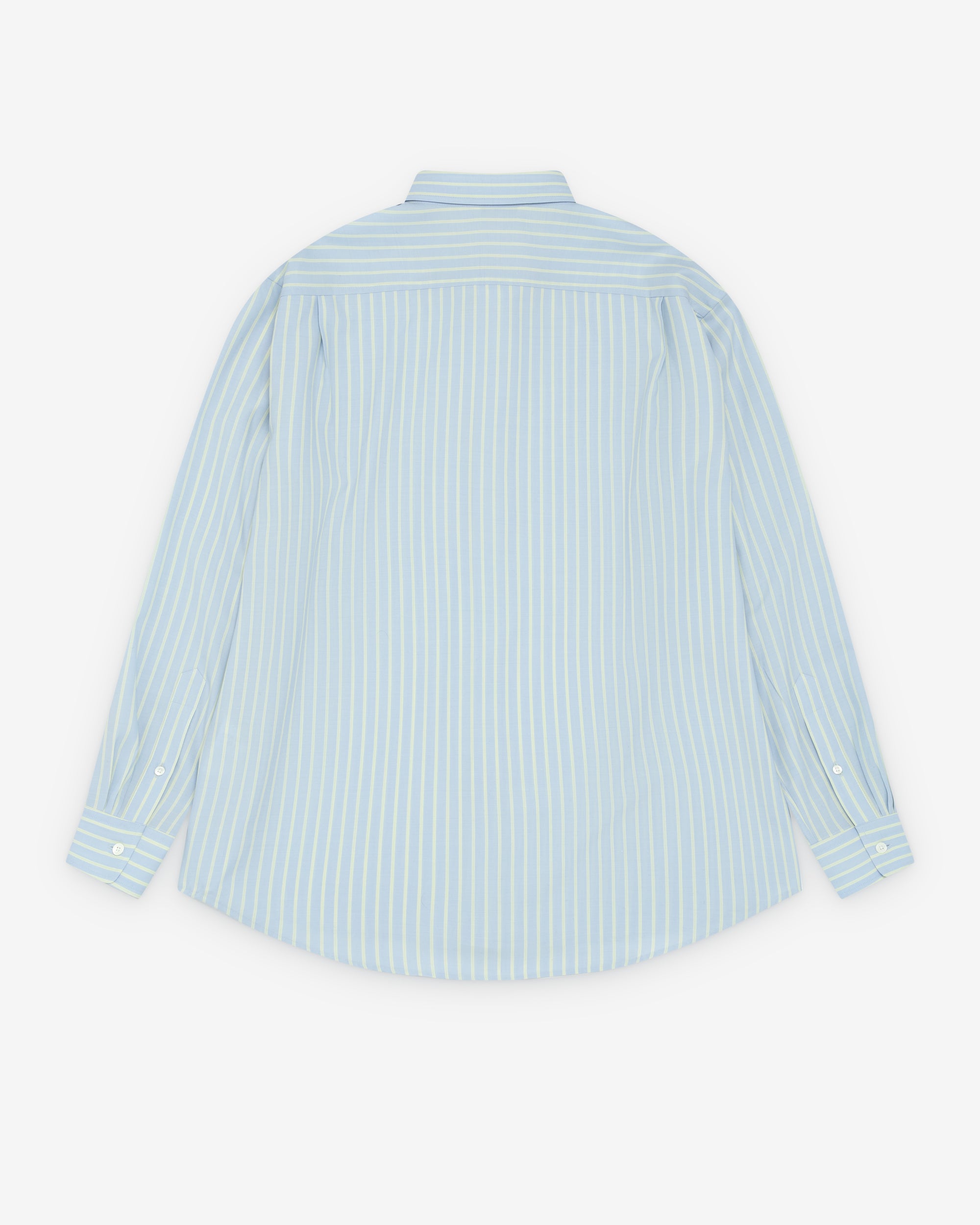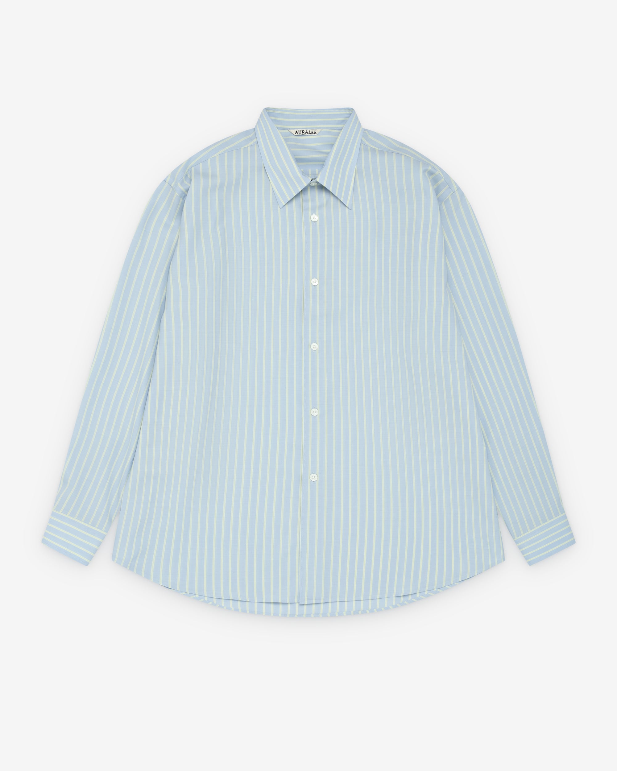 Point collarButton front closureButton cuffsCurved shirt hem