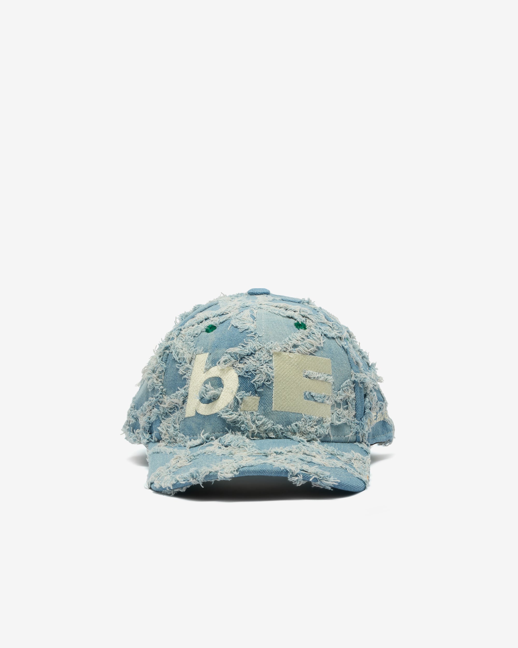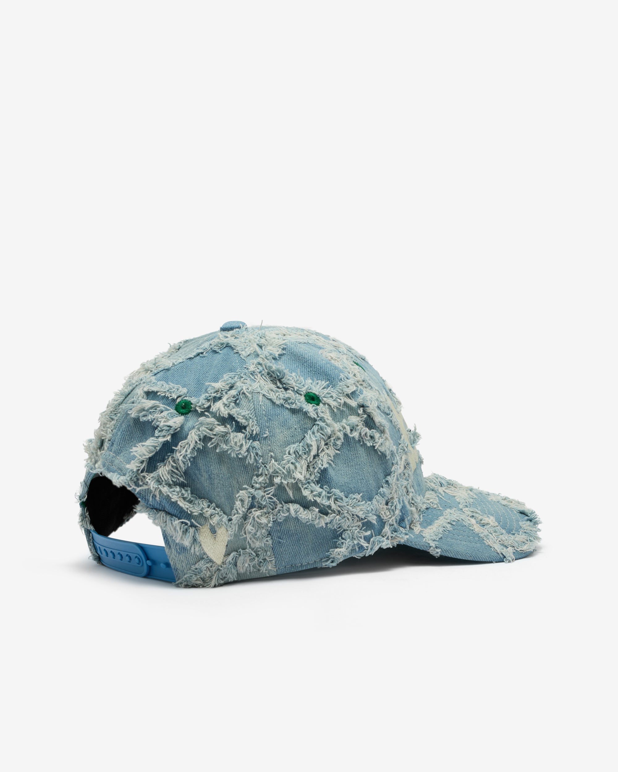 6-Panel constructionAdjustable snap at rearEmbroidered detailing Frayed fabric alloverMade in USA